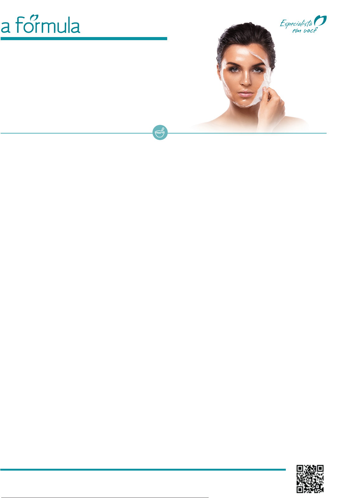 Formulações Magistrais Peeling OUTRAS FORMULAÇÕES http://aformulabr.com.br/qrcode/peelingafv01.pdf Sugestões de Fórmulas PRÉ – PEELING Ureia ...................................................................................... 5% Papaína .................................................................................. 1% PCA-Na .................................................................................. 1% Silicone volátil ....................................................................... 2% Gel base espuma qsp ........................................................... 30 g Modo de uso: diário. Hidroquinona .......................................................................... 5% Ácido retinoico .................................................................. 0,01% Drieline ................................................................................ 0,5% Gel oil free qsp ....................................................................... 30 g Modo de uso: três semanas antes, acompanhado de filtro solar FPS 15 a 25 diariamente-fototipo resistente. Biorusol ................................................................................. 2% Ácido fítico ............................................................................ 2% Palmitato de ascorbila ........................................................... 3% Melawhite ............................................................................. 3% Ácido hialurônico .................................................................. 4% Vitamina E ............................................................................ 1% Aloe vera pó ......................................................................... 1% Creme não-iônico qsp .......................................................... 30 g Modo de uso: diurno, acompanhado de FPS durante o dia-acima de 30 anos. + Lactobacillus johnsonii ............................................ 1 bilhão UFC Lactobacillus bulgaricus ................................... 500 milhões UFC Lactobacillus rhamnosus ................................. 500 milhões UFC Bifidobacterium longum ................................... 500 milhões UFC Streptococcus thermophillus ........................... 500 milhões UFC Inulina .............................................................................. 200 mg Modo de uso: 1 dose ao dia, mínimo 3 meses. Indicação: proteção contra aos raios UV. Ácido glicólico ....................................................................... 5 % Ácido glicirrízico ................................................................. 0,5% Tapioca pure ........................................................................... 1 % Creme hidratante oil free qsp ................................................. 30 g + Nutricolin® ...................................................................... 200 mg Vitamina C ....................................................................... 100 mg Betacaroteno ..................................................................... 25 mg Modo de uso: uma dose ao dia. Indicação: rejuvenescedor; fotoprotetor-pele fototipo I a III. Ácido glicólico ...................................................................... 15% DMAE ...................................................................................... 5% Ácido lático ........................................................................... 10% Creme não iônico qsp ............................................................ 30 g Modo de uso: noturno. + BioBlanc (Olea europea fruit ext. hidroxitirosol 6,5%) ........ 150 mg Cerasomosides ................................................................. 60 mg DNA Ecopur ....................................................................... 10 mg Modo de uso: 1 dose, 2 vezes ao dia após as principais refeições. Indicação: reduz os danos ocasionados pelos radicais livres e si- nais do envelhecimento cutâneo-acima de 40 anos. Ceramidas ........................................................................... 0,8% Ácido mandélico .................................................................... 5% Ácido glicólico ...................................................................... 12% Ácido kójico ............................................................................ 3% Creme olivem qsp .................................................................. 30 g Modo de uso: aplicar diariamente a noite, duas semanas antes da realização do peeling. Indicação: preparação cutânea para peeling com ácido glicólico. PRINCIPAIS REFERÊNCIAS URKOV, JC. Superficial defects skin: treatment by controlled exfoliation. 1989. YOKOMIZO, V.M.F. BENEMOND, T.M.H. CHISAKI, C. BENEMOND, P.H. Peelings químicos: revisão e aplicação prática. Surg Cosmet Dermatol 2013;5(1):58¬68. 5-fluororouacil ....................................................................... 5% Creme qsp ............................................................................. 30g Indicação: lesões actínicas múltiplas. Hyaxel® ................................................................................. 5% Álpha arbutin ........................................................................... 2% Niacinamide PC ...................................................................... 4% Creme olivem qsp .................................................................. 30 g Modo de uso: aplicar diariamente, 15 a 21 dias antes da realiza- ção do peeling. Indicação: preparação cutânea para peeling-pele acneica. Ácido tranexâmico .................................................................. 3% Metimazol .............................................................................. 5% Melawhite .............................................................................. 3% Base hydra fresh® qsp .........................................................