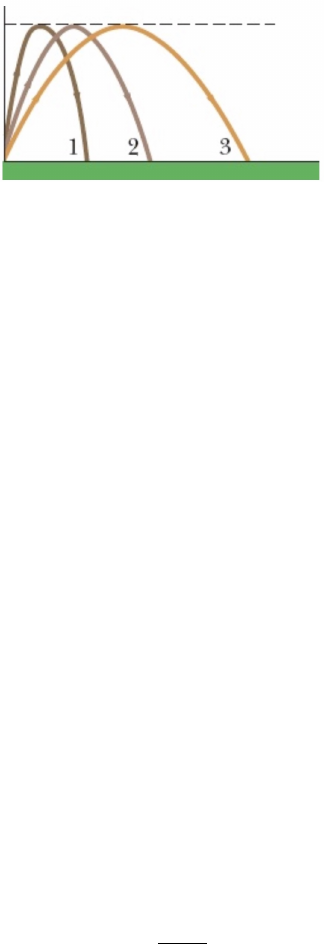 Universidade Federal do Pará Instituto de Tecnologia Faculdade de Engenharia Elétrica e Biomédica Disciplina: Física I Turma: Engenharia Elétrica 2024.4 Profa. Suzana Cescon & Prof. Sérgio Lima Revisão e Lista de Exercícios Questão 01 A Figura abaixo mostra três trajetórias de uma bola de futebol chutada a partir do chão. Ignorando os efeitos do ar, ordene as trajetórias de acordo com: (a) O tempo de percurso; (b) A componente vertical da velocidade inicial; (c) A componente horizontal da velocidade inicial; (d) A velocidade escalar inicial, em ordem decrescente. Resolução O movimento da bola segue as equações do movimento balístico, onde a trajetória segue uma parábola. A decomposição da velocidade inicial em componentes horizontal e vertical influencia diretamente no tempo de voo, na altura atingida e no alcance da bola. Os dados que influenciam a trajetória são: v0x = v0 cos θ0, (1) v0y = v0 sin θ0. (2) (a) Tempo de percurso O tempo total de voo é dado por: t = 2v0y g . (3) Como o tempo de voo depende da componente vertical da velocidade inicial, a trajetória com maior v0y terá o maior tempo de percurso. Ordem decrescente do tempo de percurso: 2 > 1 > 3. 1 (b) Componente vertical da velocidade inicial A componente vertical da velocidade inicial é: v0y = v0 sin θ0. (4) A trajetória que alcança a maior altura possui maior componente vertical da velocidade inicial. Ordem decrescente da componente vertical: 2 > 1 > 3. (c) Componente horizontal da velocidade inicial A componente horizontal da velocidade inicial é: v0x = v0 cos θ0. (5) O alcance horizontal é maior para trajetórias com maior v0x. Como a trajetória 3 cobre a maior distância horizontal, então ela tem o maior v0x. Ordem decrescente da componente horizontal: 3 > 1 > 2. (d) Velocidade escalar inicial A velocidade inicial total é: v0 = √ v20x + v20y. (6) A trajetória com maior velocidade inicial cobre a maior distância e atinge maior altura. Observando as trajetórias, a bola 2 atinge a maior altura, a bola 3 o maior alcance e a bola 1 um equilíbrio intermediário. Ordem decrescente da velocidade escalar inicial: 2 > 3 > 1. Conclusão A análise das trajetórias leva às seguintes classificações: (a) Tempo de percurso: 2 > 1 > 3. (b) Componente vertical da velocidade inicial: 2 > 1 > 3. (c) Componente horizontal da velocidade inicial: 3 > 1 > 2. (d) Velocidade escalar inicial: 2 > 3 > 1. Esses resultados confirmam que a trajetória mais alta tem maior tempo de voo e maior velocidade vertical, enquanto a trajetória com maior alcance tem maior velocidade horizon- tal. 2 Questão 02 Uma bola é chutada a partir do chão, em um terreno plano, com uma dada velocidade inicial. A Figura mostra o alcance R da bola em função do ângulo de lançamento θ0. Ordene os três pontos identificados por letras no gráfico: (a) De acordo com o tempo que a bola permanece no ar; (b) De acordo com a velocidade da bola na altura máxima, em ordem decrescente. Resolução O movimento segue as equações do movimento balístico, onde a trajetória é uma pará- bola. A decomposição da velocidade inicial influencia diretamente no tempo de voo e na velocidade na altura máxima. (a) Tempo de voo O tempo total que a bola permanece no ar é dado por: t = 2v0 sin θ0 g . (7) Como o tempo de voo depende de sin θ0, ele é máximo quando θ0 = 90◦ e se reduz para ângulos menores e maiores que esse. No gráfico, o ponto b está mais próximo do máximo alcance, o que sugere um ângulo intermediário próximo a 45◦. Ordem decrescente do tempo de voo: b > a > c. (b) Velocidade na altura máxima Na altura máxima, a velocidade da bola corresponde apenas à sua componente horizontal: vmax = v0 cos θ0. (8) A velocidade horizontal é máxima para ângulos pequenos e mínima para ângulos próxi- mos de 90◦. Assim, a ordem decrescente da velocidade na altura máxima será: Ordem decrescente da velocidade na altura máxima: c > a > b. 3 Conclusão A partir das equações do movimento balístico, podemos classificar os pontos da seguinte forma: (a) Tempo de voo: b > a > c. (b) Velocidade na altura máxima: c > a > b. Esses resultados confirmam que a trajetória com maior ângulo tem maior tempo de voo, enquanto a trajetória com menor ângulo tem maior velocidade na altura máxima. Questão 03 No Campeonato Mundial de Atletismo de 1991, em Tóquio, Mike Powell saltou 8, 95 m, batendo por 5 cm um recorde de 23 anos estabelecido por Bob Beamon para o salto em distância. Suponha que Powell iniciou o salto com uma velocidade de 9, 5 m/s (aproxima- damente igual à de um velocista) e que g = 9, 8 m/s2 em Tóquio. Calcule a diferença entre o alcance de Powell e o máximo alcance possível para uma partícula lançada com a mesma velocidade. Resolução O alcance máximo de um projétil em lançamento oblíquo ocorre quando o ângulo de lan- çamento é 45◦ e pode ser determinado pela equação: Rmax = v20 g . (9) Substituindo os valores: Rmax = (9, 5)2 9, 8 (10) = 90, 25 9, 8 (11) ≈ 9, 21 m. (12) A diferença entre o alcance máximo teórico e o salto de Powell é: ∆R = Rmax −RPowell (13) Substituindo os valores: ∆R = 9, 21− 8, 95 (14) = 0, 26 m. (15) Conclusão A diferença entre o alcance máximo teórico para a mesma velocidade e o salto de Mike Powell é aproximadamente 0, 26 m. Isso sugere que o salto de Powell foi realizado em um ângulo um pouco diferente de 45◦, o que afetou seu alcance. 4 Questão 04 Uma pedra é lançada por uma catapulta no instante t = 0, com uma velocidade inicial de módulo 20, 0 m/s e ângulo de 40, 0◦ acima da horizontal. Quais são os módulos das componentes: (a) Horizontal e (b) vertical do deslocamento da pedra em relação à catapulta em t = 1, 10 s? (c) Horizontal e (d) vertical em t = 1, 80 s? (e) Horizontal e (f) vertical em t = 5, 00 s? Resolução O deslocamento da pedra segue as equações do movimento balístico, onde: x = v0xt, (deslocamento horizontal) 