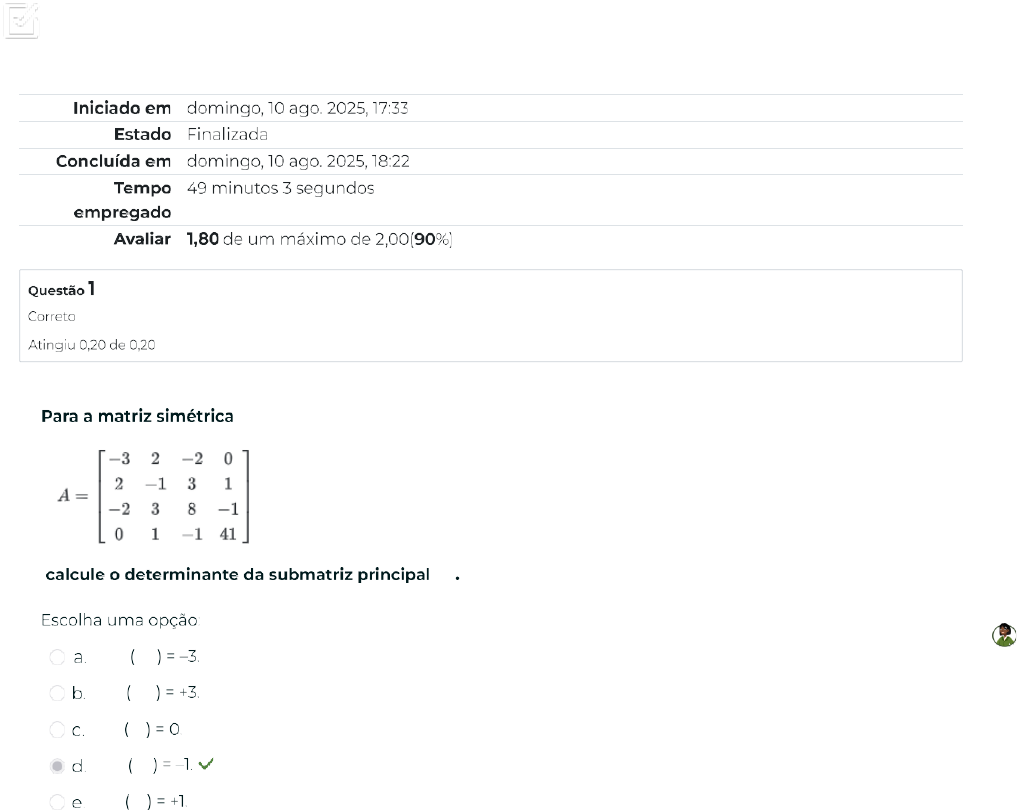 1 of 12 10/08/2025, 18:24 A3 1 det A3 det A3 det A3 det A3 det A3 2 of 12 10/08/2025, 18:24 P3 Y = {v1 = 3x³ + 2x + 1, v2 = x² – 3x} Y ∪ {v3,v4} P3 v3 = 0, v4 = 5x³ – 1. v3 = 2v1, v4 = v2 + v1. v3 = –(2/3)x³ + 3x² + x, v4 = –(1/3)x³ + 1 v3 = –2x³ + 3x² + x, v4 = –x³ + x. v3 = –2x³ + 3x² + x + 3, v4 = –x³ + x + 3. 1 3 of 12 10/08/2025, 18:24 R2 G(x, y ) = (–x, –y) e H(x, y) = (2x, 2y) G°F 1 4 of 12 10/08/2025, 18:24 1 5 of 12 10/08/2025, 18:24 1 6 of 12 10/08/2025, 18:24 E dim(E) = 6 E 1 W ⊂ E ger(W) ≠ E Y ⊂ E Y V ⊂ E V X ⊂ E X E Z E ∈ Z 7 of 12 10/08/2025, 18:24 P3 X = {v1 = –2x³ + x, v2 = 2x³ – x, v3 = 2x³ + x² – x + 3, v4 = x² + 3} ger(X) 1 8 of 12 10/08/2025, 18:24 45º R2 1 9 of 12 10/08/2025, 18:24 1 10 of 12 10/08/2025, 18:24 C C A B 1 11 of 12 10/08/2025, 18:24 1 12 of 12 10/08/2025, 18:24 1