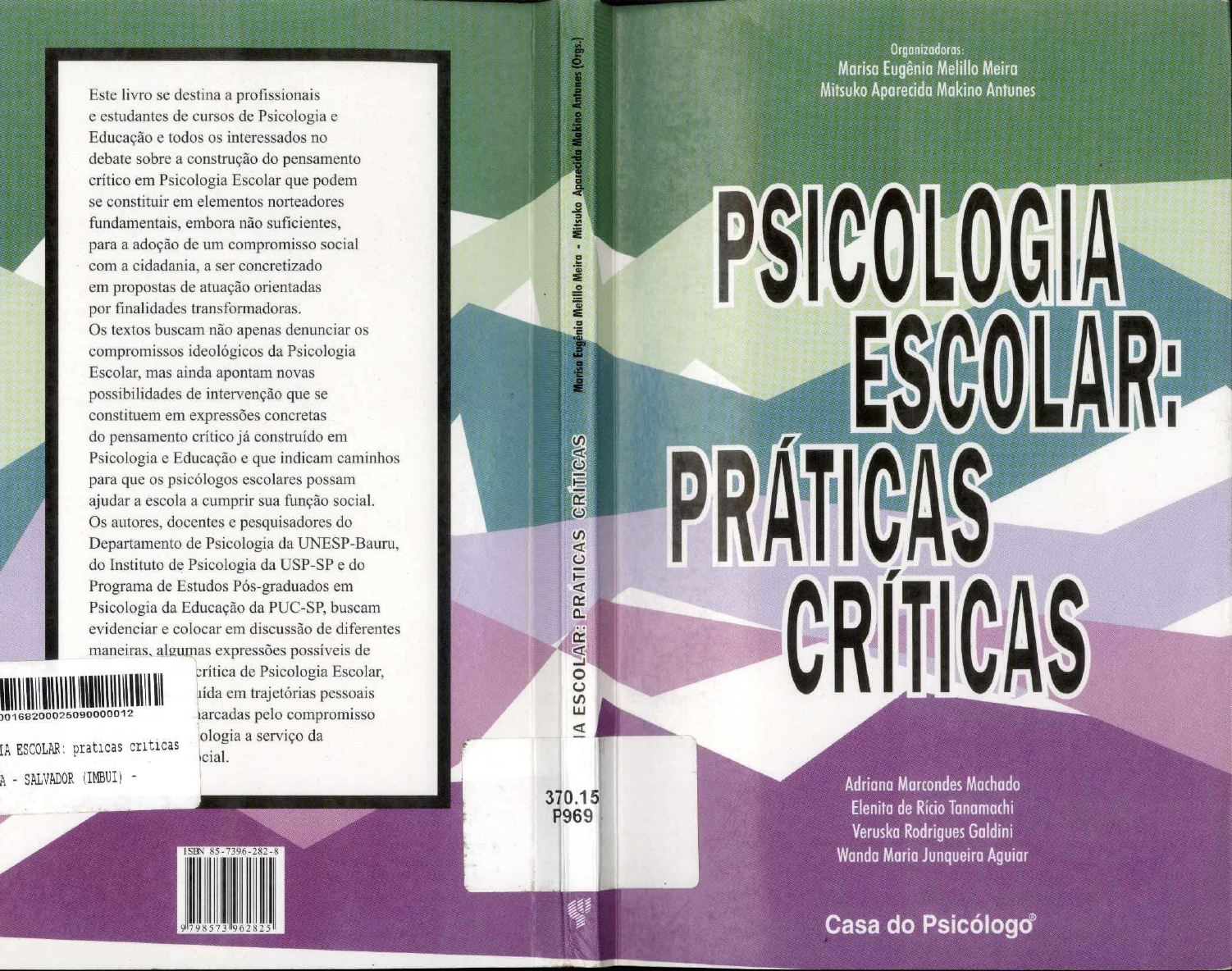 Organizadoras: Marisa Eugênia Melillo Meira Este livro se destina a profissionais Mitsuko Aparecida Makino Antunes e estudantes de cursos de Psicologia e Educação e todos os interessados no debate sobre a construção do pensamento crítico em Psicologia Escolar que podem se constituir em elementos norteadores fundamentais, embora não suficientes, para a adoção de um compromisso social com a cidadania, a ser concretizado Marisa Eugênia Melillo Meira Mitsuko Aparecida Makino Antunes (Orgs.) PSICOLOGIA em propostas de atuação orientadas por finalidades transformadoras. Os textos buscam não apenas denunciar os compromissos ideológicos da Psicologia Escolar, mas ainda apontam novas possibilidades de intervenção que se ESCOLAR: constituem em expressões concretas do pensamento crítico já construído em Psicologia e Educação e que indicam caminhos para que os psicólogos escolares possam ajudar a escola a cumprir sua função social. Os autores, docentes e pesquisadores do do Instituto de Psicologia da USP-SP e do Programa de Estudos Pós-graduados em Psicologia da Educação da PUC-SP, buscam evidenciar e colocar em discussão de diferentes maneiras, algumas expressões possíveis de crítica de Psicologia Escolar, IA ESCOLAR: CRÍTICAS PRÁTICAS Departamento de Psicologia da UNESP-Bauru, CRÍTICAS em trajetórias pessoais arcadas pelo compromisso ologia a serviço da ESCOLAR: praticas criticas cial. SALVADOR (IMBUI) Adriana Marcondes Machado 370.15 P969 Elenita de Rício Tanamachi Veruska Rodrigues Galdini ISBN 85-7396-282-8 Wanda Maria Junqueira Aguiar Casa do Psicólogo®Psicologia Escolar: Marisa Eugênia Melillo Meira e Mitsuko Aparecida Makino Antunes Práticas Críticas Organizadoras apresenta um conjunto de textos produzidos por docentes e pesquisadores da PUC-SP, UNESP e USP-SP, resultado do trabalho de reflexão teórico-prática desenvolvido ao longo de trajetórias pessoais e profissionais marcadas pelo PSICOLOGIA ESCOLAR: compromisso de colocar a Psicologia a serviço da PRÁTICAS CRÍTICAS transformação social. Os textos apontam novas possibilidades de intervenção que se constituem em expressões concretas do pensamento crítico já construído AUTORAS em Psicologia e Educação e que indicam caminhos para Adriana Marcondes Machado que os psicólogos escolares Elenita de Rício Tanamachi possam ajudar a escola a Marisa Eugênia Melillo Meira cumprir sua função social. Mitsuko Aparecida Makino Antunes Este livro pode ser um instrumento Veruska Galdini instigante de debate para todos Wanda Maria Junqueira Aguiar aqueles interessados na construção de e propostas de de Educação finalidade EADICON A em educação a distância Biblioteca Casa do Psicólogo®© 2003 Casa do É proibida a reprodução total ou parcial desta publicação, para qualquer finalidade, SUMÁRIO sem autorização por escrito dos editores. edição 2003 edição 2008 Apresentação 7 Editores Marisa Eugênia Melillo Meira Ingo Bernd Güntert e Silésia Delphino Mitsuko Aparecida Makino Antunes Produção Gráfica Renata Vieira Nunes Capa Willian Eduardo Nahme A Atuação do Psicólogo como Expressão do Pensamento Crítico em Psicologia e Educação 11 Revisão Leila Marco Elenita de Rício Tanamachi Editoração Eletrônica Marisa Eugênia Melillo Meira Valquíria Kloss Dados Internacionais de Catalogação na Publicação (CIP) (Câmara Brasileira do Livro, SP, Brasil) Os psicólogos trabalhando com a escola: intervenção a serviço Psicologia escolar: Práticas críticas / Marisa Eugênia Melillo do quê? 63 Meira e Mitsuko Aparecida Makino Antunes, organizadoras. Adriana Marcondes Machado São Paulo: Casa do 2003. Vários autores. Bibliografia. Intervenção junto a professores da rede pública: potencializando ISBN 85-7396-282-8 a produção de novos sentidos 87 Veruska Galdini 1. Psicologia educacional I. Meira, Marisa Eugênia Melillo. II. Antunes, Mitsuko Aparecida Makino. Wanda Maria Junqueira Aguiar 03-6727 CDD-370.15 Índices para catálogo sistemático: A Psicologia Escolar na implementação do Projeto Político- Psicologia escolar 370.15 Pedagógico da Rede Municipal de Ensino de Guarulhos: construindo um trabalho coletivo 105 Impresso no Brasil Printed in Brazil Mitsuko Aparecida Makino Antunes e colaboradores Reservados todos os direitos de publicação em Língua Portuguesa à Sobre os autores 129 Casa do Psicólogo® Rua Simão Álvares, 1.020 Vila Madalena 05417-020 São Paulo/SP Brasil Tel.: (11) 3034-3600APRESENTAÇÃO A Psicologia da Educação constituiu-se, no início do século, como uma área de conhecimentos que se propunha a estudar questões importantes que interessavam à educação escolar, e, só na década de 1940, tornou-se uma prática profissional, o que propiciou o surgimento do psicólogo escolar, cuja função seria a de resolver pro- blemas escolares. Desde então, a educação tem se constituído no campo profis- sional para uma parcela considerável de psicólogos e, de acordo com pesquisa realizada pelo Conselho Federal de Psicologia em 1992, depois da clínica (37,2%) e organizacional (29,6%), ela já é a área de atuação no Brasil que mais absorve profissionais (24,4%). No entanto, isso não significa que já tenhamos reunido elemen- tos teórico-metodológicos suficientes e adequados à consolidação de práticas profissionais competentes. Ao contrário, a análise da litera- tura disponível indica que no Brasil a maneira como se conduziu o processo de atuação e produção de conhecimentos na área tem sido alvo de sérias críticas que, principalmente a partir da década de 1980, têm se tornado, cada vez mais, contundentes. Todo esse movimento de crítica, gerado pela reflexão sobre a insuficiência das práticas desenvolvidas em nossos meios, bem como dos quadros conceituais sobre os quais elas vêm se sustentando historicamente, tem oferecido importantes subsídios tanto no senti- do de desvelar os determinantes sociais e hist