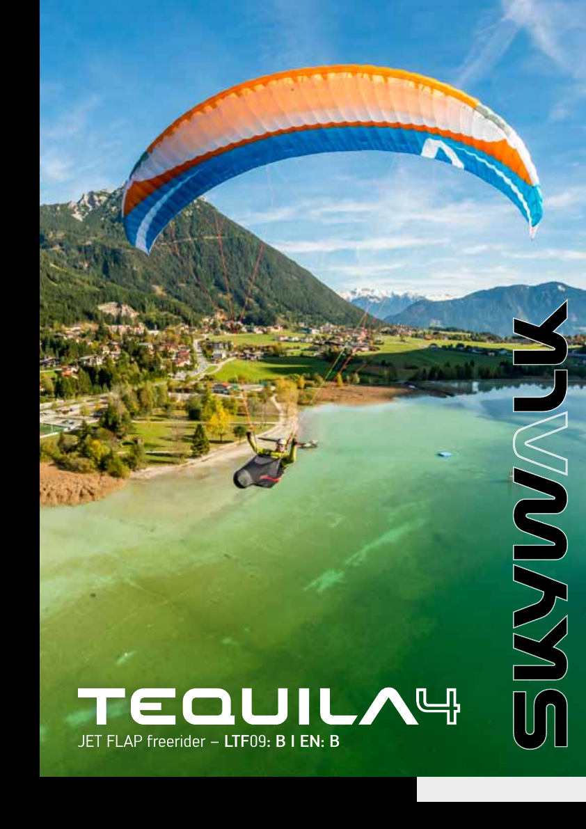 HANDBUCH/SERVICEHEFT 02/2014 SERIENNR.: JET FLAP freerider – LTF09: B I EN: B INHAlTSVERzEICHNIS Einleitung 3 Beschreibung, Technische Daten, Aufhängesystem 4-6 Beschleunigungssystem 8 Gurtzeug 8 Flugpraxis und Flugeigenschaften 9 Abstiegshilfen 16 Extrem-Flugmanöver 18 Materialien 21 Wartung 22 Entsorgung 24 2-Jahres-Check 24 Musterprüfung 25 Natur- und landschaftsverträgliches Verhalten 26 Schlussworte 26 leinenplan 27 Tragegurt 28 Übersicht Schirm 29 Nachprüfprotokoll 30 EINlEITUNG Wir danken dir für Dein Vertrauen in unsere skywalk Produkte und gratulieren Dir herzlich zu Deinem neuen TEQUILA4. In diesem Handbuch findest Du alle relevanten Informationen zur Charakteristik, Sicherheit, Wartung und Pflege Deines neuen Begleiters in der Luft. Wir empfehlen Dir daher, das Handbuch vor Deinem ersten Flug sorgfältig zu studieren und Dich bei Fragen an den Händler Deines Vertrauens oder direkt an uns zu wenden. Du erhältst viele Tipps zum sicheren Fliegen sowie Informationen, die speziell Deinen TEQUILA4 betreffen. Egal ob talentierter Einsteiger oder gelegentlicher Streckenpilot: Der TEQUILA war und ist für viele Piloten eine exzellente Wahl. Darüber hinaus ist er ein echter Intermediate, denn er vereint Sicherheit und Leistung auf hohem Niveau und garantiert somit lange und relaxte Flüge. Daher ist es wichtig, sich auf seine Ausrüstung verlassen zu können. Mit Deinem TEQUILA4 hast Du die perfekte Entscheidung getroffen, Flugspaß und Sicherheit zu vereinen. Dein skywalk Team aus Leidenschaft am Fliegen 3 D E 4 5 BESCHREIBUNG Um einen optimalen Nachfolger für den TEQUILA3 zu entwickeln, wurde mit leidenschaftlicher Arbeit und Liebe zum Detail das Beste aus vielen Prototypen selektiert, um ein Maximum an Leistung, Sicherheit, Stabilität, Handling und Flugspaß für den TEQUILA zu erreichen. Gut zu wissen, dass es einen Flügel gibt, der alle Ansprüche erfüllt – egal ob Du einfach nur aus Spaß an der Freude fliegst, im Hausbart ganz oben dabei sein willst, herausfordernde Strecken angehen möchtest oder gerade erst mit der Ausbildung beginnst. Mit dem neuen TEQUILA4 bringt skywalk hochmoderne CHILI-Technologie in die Genussklasse! Schon immer steht die TEQUILA Baureihe für äußerst hohe passive Sicherheit kombiniert mit großem Leistungspotenzial und absolut unkomplizierter Handhabung. Deswegen hat skywalk auch den TEQUILA4 nicht bis ans Ende der Fahnenstange ausgereizt. Neueste Technologie wie Mini Ribs, 3D-Shaping, Rigid Foils und wenig Leinenmeter machen aus dem reinrassigen 3-Leiner einen Hochstleister seiner Klasse, der Pilotenanspruch bleibt aber zu jeder Zeit absolut überschaubar. Der Allround-Schirm begeistert mit sehr direktem, leichtgängigen Handling und sehr guter Gleitleistung, die Top Speed ist für die Schirmklasse hoch. Dank dem niedrigen Kappengewicht und den Einsatz von Rigid Foils startet der TEQUILA4 kinderleicht. Flugspass pur! Egal, ob talentierter Einsteiger oder Streckenpilot: Der LTF-B und EN-B zertifizierte TEQUILA war und ist für viele Piloten eine exzellente Wahl. lIEFERUMFANG Der TEQUILA4 wird serienmäßig mit Innenpacksack, Kompressionsband, 2 Stickerbögen, Gleitschirmrucksack, Tragegurtschutzhülle und Handbuch ausgeliefert. ACHTUNG DAS TypENSCHIlD IST AUF DIE INNENSEITE DES STABIloS GEDRUCkT. HIER WIRD DATUM UND pIloT DES ERSTFlUGS EINGETRAGEN. DIE MUSTERpRÜFplAkETTE UND DAS DATUM DER STÜCkpRÜFUNG BEFINDEN SICH IN DER MITTElzEllE DES SCHIRMS. SollTE DIESER AUFDRUCk FEHlEN, IST DAVoN AUSzUGEHEN, DASS ES SICH UM EINEN NICHT GEpRÜFTEN pRoToTypEN HANDElT. TECHNISCHE DATEN Größe XS S M l Zellen 45 45 45 45 Fläche ausg. 22,17 25,54 28,30 30,32 Spannw. Ausg. 10,74 11,52 12,13 12,56 Streckung ausg. 5,20 5,20 5,20 5,20 Fläche proj. 18,85 21,72 24,06 25,78 Spannw. proj. 8,50 9,12 9,61 9,94 Streck. proj. 3,84 3,84 3,84 3,84 min. Profiltiefe in cm 61 65 68 71 max. Profiltiefe in cm 249 267 281 291 Mittl. Leinenlänge ohne Tragegurt in cm 629 675 710 735 Leinenverbrauch in m 214 230 242 250 Kappengewicht kg 4,7 5,3 5,6 5,9 Startgewicht von - bis in kg 55-75 70-95 85-110 100-130 Windenzulassung ja ja ja ja JET FLAP Technologie ja ja ja ja Motorzulassung mit speziellen Tragegurten nein nein nein nein JET FlAp Jeder unserer Schirme ist mit der von skywalk patentierten JET FLAP Technologie ausge- stattet. Hierbei wird die Luft vom Untersegel (Druckbereich) aufs Obersegel (Sogbereich) geleitet und dort ausgeblasen. Die Verbindung wird dabei durch düsenförmige Strömungs- kanäle hergestellt, die im hinteren Bereich der Fläche sitzen. Die am Obersegel austre- tende, zusätzliche Luftmasse verzögert die Strömungsablösung, der Stall tritt später ein, der fliegbare Minimumspeed wird geringer und der Pilot hat mehr Anstellwinkelreserve. Gerade in den Phasen, wie Start und Landung, ist dies von erheblicher Bedeutung. Die JET FLAPS verhelfen zudem zu überragender Steigleistung, da auch gefahrlos sehr langsam gekreist werden kann. Das allgemeine Handling des Gleitschirms bleibt erhalten, es bedarf also keiner speziellen Kontrolle des JET FLAP Systems. D E 76 AUFHäNGESySTEM Die Aufhängepunkte wurden auf optimale Lastverteilung und lange Lebensdauer ausgelegt. Bei allen Überlegungen und Berechnungen stand jedoch immer die Sicherheit im Vordergrund. Der Materialmix, der bei den Leinen des TEQUILA4 zum Einsatz kommt, ist eine ideale Kombination aus Haltbarkeit, geringer Dehnung und geringem Luftwiderstand. Die Stammleinen des TEQUILA4 sind aus hochfestem Dyneema mit Polyestermantel gefertigt. Jede dieser Stammleinen verkraftet im Extremfall mehr als 160kg. Für die Topleinen wurde das äußerst alterungsbeständige New Dyneema verbaut. Damit ist auch nach Jahren des intensiven Gebrauchs immer noch eine beruhigende Sicherheit in allen Bereichen vorhanden. Der skywalk TEQUILA4 verfügt über 3 A-, 3 B-, 3 C- und 1 Stabiloleine. Die mit der Haupt- stabiloleine zusammgefassten Topleinen führen direkt zum B-Gurt. Die Bremsleinen sind nicht trage