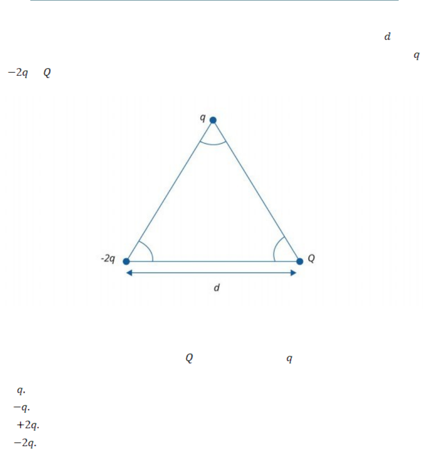 FÍSICA - ONDAS, ELETRICIDADE E MAGNETISMO (A2) Questão 1: Na natureza, há grandezas que podem ser divididas indefinidamente em partes ... Questão objetiva 1/1 Na natureza, há grandezas que podem ser divididas indefinidamente em partes menores, por exemplo, um intervalo de tempo. Elas são denominadas grandezas contínuas, pois suas medidas podem corresponder a qualquer número real. Há, também, grandezas que possuem um limite para a sua divisão em partes menores. Essas, por sua vez, são denominadas grandezas quantizadas. É o caso da carga elétrica de um corpo. MÓDULO 1. Eletrostática. Disponível em: https://docente.ifrn.edu.br/andrebrito/disciplinas/eletrostatica. Acesso em: 10 dez. 2019. Considere um triângulo equilátero, com aresta de comprimento . Suponha que, em seus vértices, há partículas (pontuais) com cargas , e , conforme mostra a figura a seguir: Fonte: Elaborada pelo autor. Acerca do exposto, qual, dentre as alternativas a seguir, fornece corretamente o valor da carga , em função de , para que a energia eletrostática armazenada em tal sistema seja nula? A B C D Resposta correta E Questão 2: Leia o excerto a seguir: “Campo elétrico é uma grandeza física vetorial que ... Questão objetiva 1/1 Leia o excerto a seguir: “Campo elétrico é uma grandeza física vetorial que mede o módulo da força elétrica exercida sobre cada unidade de carga elétrica colocada em uma região do espaço sobre a influência de uma carga geradora de campo elétrico. Em outras palavras, o campo elétrico mede a influência que uma certa carga produz em seus arredores. Quanto mais próximas estiverem duas cargas, maior será a força elétrica entre elas por causa do módulo do campo elétrico naquela região”. CAMPO Elétrico. Mundo Educação, 2019. Disponível em: https://mundoeducacao.bol.uol.com.br/fisica/campo-eletrico.htm. Acesso em: 10 dez. 2019. A respeito do campo elétrico, analise as afirmativas a seguir: I. As linhas de campo elétrico nunca se iniciam em um ponto demarcado no espaço. II. As linhas de campo elétrico nunca irão se cruzar em um ponto do espaço. III. As linhas de campo elétrico nunca serão fechadas. IV. As linhas de um campo elétrico sempre se iniciam em dois pontos demarcados no espaço. Está correto o que se afirma em: A I e IV, apenas. B II, apenas. Resposta correta C III, apenas. D I, II e IV, apenas. E I, II e III, apenas. Questão 3: Duas cargas elétricas puntiformes e estão colocadas a uma distância e a ... Questão objetiva 1/1 Duas cargas elétricas puntiformes e estão colocadas a uma distância e a força de interação eletrostática entre elas tem intensidade . Logo, se for substituída a carga por outra igual a , aumenta-se a distância entre elas para . Diante do exposto, qual é a intensidade na nova força de interação eletrostática entre elas? A 0,55F. Resposta correta B 1,66F. C 2,55F. D 5,0F. E 2,45F. Questão 4: Leia o excerto a seguir: “Ernesto atritou um canudo de refresco com um pedaço... Questão objetiva 1/1 Leia o excerto a seguir: “Ernesto atritou um canudo de refresco com um pedaço de papel higiênico. Depois, colocou o canudo contra uma parede, enquanto Roberto observava. - Olha como ele fica grudado! - É a força eletrostática. As cargas do canudo fazem aparecer, na parede, cargas contrárias. É o fenômeno da indução - diz Roberto. - Ainda não estou entendendo. Roberto faz um desenho enquanto fala: - As cargas negativas do canudo empurram as cargas negativas da parede. Então, na parede, perto do canudo, vão ficar cargas positivas. Essas cargas positivas da parede atraem as cargas negativas do canudo. Então, o canudo é atraído pela parede e fica grudado nela”. AULA 37. Atração Fatal. Disponível em: http://aulasdefisica.com/download/fisicamedio/37-Atracao-fatal.pdf. Acesso em: 5 dez. 2019. Suponha a existência de duas cargas, em forma de esferas metálicas, eletricamente carregadas com cargas e , ambas separadas por uma distância , de forma que se se atraem eletrostaticamente. Se forem colocadas em contato e, logo em seguida, afastadas para uma nova distância , qual é a alternativa que apresenta corretamente a razão entre a intensidade das forças na interação, em especial nas situações inicial e final? A 1/16. B 1/32. Resposta correta C 1/12. D 1/6. E 1/8. Questão 5: Três cargas elétricas puntiformes e idênticas, , e , são mantidas fixas em ... Questão objetiva 0/1 Três cargas elétricas puntiformes e idênticas, , e , são mantidas fixas em suas posições sobre uma linha reta, conforme se verifica na figura a seguir: Fonte: Elaborada pelo autor. O módulo da força elétrica exercida por sobre é de . Nesse sentido, qual é o módulo da força elétrica resultante sobre ? A B Resposta correta C Resposta do aluno D E Questão 6: O trabalho sobre uma partícula faz com que ela se mova devido à força ... Questão objetiva 1/1 O trabalho sobre uma partícula faz com que ela se mova devido à força aplicada. Assim, considerando a figura a seguir, se um sistema é formado por três partículas de carga , qual será o trabalho necessário para formar a configuração de todas as partículas com a mesma carga , em formato de um triângulo equilátero, supondo que elas estão, de início, infinitamente afastadas? Fonte: Elaborada pelo autor. A . B . C . D . E . Resposta correta Questão 7: Cargas de mesmo sinal se repelem, enquanto cargas de sinal oposto se atraem. ... Questão objetiva 1/1 Cargas de mesmo sinal se repelem, enquanto cargas de sinal oposto se atraem. A força entre cargas puntiformes é proporcional ao produto de suas cargas e inversamente proporcional ao quadrado da distância entre elas. ELETRICIDADE e Magnetismo I. Carga elétrica. Disponível em: https://edisciplinas.usp.br› mod_folder›content. Acesso em: 5 dez. 2019. Suponha que duas cargas puntiformes e estão separadas por uma distância e possuem uma força de atração . Em seguida, elas