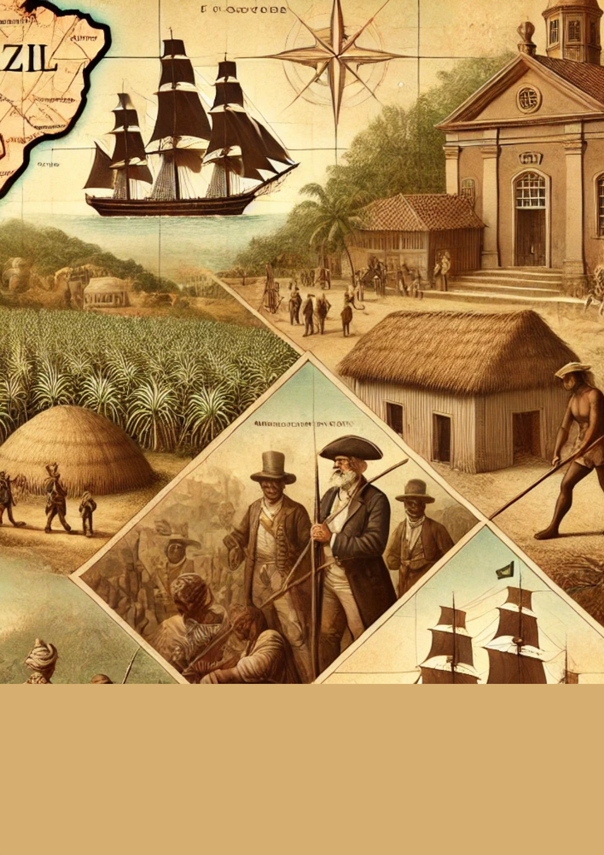 Volume 1 - História do Brasil Colônia: Exploração do período colonial, ciclos econômicos e estrutura social. Volume 1 - História do Brasil Colônia: Exploração do período colonial, ciclos econômicos e estrutura social. 2024 Sumário Introdução..............................................................................................................................4 1. Conteúdo Programático.......................................................................................................4 2. História do Brasil Colônia...................................................................................................5 2.1 Introdução à colonização portuguesa..................................................................................6 2.2 Ciclo do Pau-Brasil...........................................................................................................7 2.3 Ciclo do Açúcar.................................................................................................................8 2.4 Ciclo do Ouro....................................................................................................................9 3. Economia Colonial............................................................................................................11 3.1 Sistema de capitanias hereditárias....................................................................................12 3.2 Engenhos de açúcar e sua importância..............................................................................13 3.3 Mineração e seus efeitos na economia..............................................................................14 4 Sociedade Colonial.............................................................................................................16 4.1Estrutura social: senhores de engenho, escravos e trabalhadores livres......................................................................................................................................17 4.2 Escravidão indígena e africana.........................................................................................18 5 Cultura e Religião..............................................................................................................20 5.1 Catequese e a ação dos jesuítas........................................................................................21 5.2 A influência religiosa na organização da sociedade...........................................................22 6. Questões comentadas.........................................................................................................24 7. Exercícios..........................................................................................................................58 Lista 1 de exercícios..............................................................................................................58 Lista 2 de exercícios..............................................................................................................61 Referências Bibliográficas.....................................................................................................64 Anexos..................................................................................................................................65 Introdução A história do Brasil Colônia é definida por três grandes ciclos econômicos: pau-brasil, açúcar e ouro. O ciclo do pau-brasil foi explorado no litoral com escambo indígena, mas sem gerar uma estrutura estável. O ciclo do açúcar, centrado no Nordeste, criou uma elite rural e consolidou o uso de mão de obra escrava africana. O ciclo do ouro deslocou o eixo econômico para o Sudeste e promoveu o desenvolvimento de vilas no interior. A sociedade colonial era hierarquizada, com forte presença da escravidão e influência da Igreja Católica. 1. Conteúdo Programático História do Brasil Colônia · Introdução à colonização portuguesa. · Ciclo do Pau-Brasil. · Ciclo do Açúcar. · Ciclo do Ouro. Economia Colonial · Sistema de capitanias hereditárias. · Engenhos de açúcar e sua importância. · Mineração e seus efeitos na economia. Sociedade Colonial · Estrutura social: senhores de engenho, escravos e trabalhadores livres. · Escravidão indígena e africana. Cultura e Religião · Catequese e a ação dos jesuítas. · A influência religiosa na organização da sociedade. 4 2. História do Brasil Colônia 2.1 Introdução à colonização portuguesa A colonização portuguesa no Brasil começou oficialmente em 1500 com a chegada de Pedro Álvares Cabral. Nos primeiros anos, a ocupação foi limitada, focada principalmente na exploração do pau-brasil, uma madeira valiosa para a produção de corantes. A extração dessa madeira se deu por meio de um sistema de escambo com os indígenas, que trocavam sua mão de obra por produtos europeus. Como essa atividade não exigia infraestrutura permanente, a ocupação territorial foi bastante superficial e não consolidou uma presença estável. Em 1534, a Coroa portuguesa, buscando proteger o vasto território de invasões estrangeiras e fortalecer a economia, implementou o sistema de capitanias hereditárias. O Brasil foi dividido em capitanias, cada uma entregue a um donatário, que recebia o direito de explorar a terra, administrar seus recursos e escravizar indígenas. No entanto, o sistema enfrentou muitos desafios, incluindo a escassez de recursos, conflitos com as populações locais e a grande distância entre a colônia e Portugal, o que resultou no fracasso de várias capitanias. Algumas capitanias, como São Vicente e Pernambuco, prosperaram, impulsionadas pelo sucesso da produção de açúcar. A economia açucareira se tornou a base da colonização e criou uma elite de senhores de engenho. O sucesso dessas capitanias deveu-se, em parte, a uma relação mais estável com as populações indígenas e ao investimento 