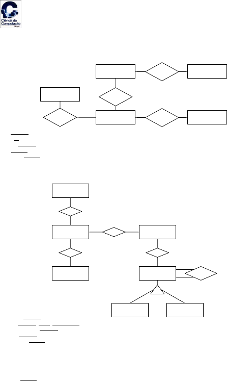 Faculdade de Ciências Aplicadas e Sociais de Petrolina Curso de Ciência da Computação Disciplina: Banco de Dados Profa. Rossana de Paula Junqueira Almeida Lista de Exercícios – Capítulos 4 e 5 1. Usando as regras de transformação de modelos ER para modelo lógico relacional, projete um BD relacional para o modelo ER da figura abaixo. Fita(Numero, Rolo) Filme(Id, Titulo) Cliente(Numero, Nome, Endereco, Telefone) Ator(Codigo, NomePopular, NomeArtistico, DataNascimento) Categoria(Codigo, Descrição) 2. Usando as regras de transformação de modelos ER para modelo lógico relacional, projete um BD relacional para o modelo ER da figura abaixo. Os atributos das entidades são listados abaixo. Os atributos identificadores estão sublinhados. Escritório(Numero, Local) Cliente(Numero, CNH, EstadoCNH, Nome, Endereco, Telefone) ContratoAluguel (Numero, Data, Duracao) Veículo(Numero, DataProxManut, Placa) TipoVeículo(Codigo, Nome, ArCondicionado) Automóvel(NumeroPortas, DirecaoHidraulica, CambioAutomatico, Radio) Ônibus(NumeroPassageiros, Leito, Sanitário) 3. Abaixo é apresentado um esquema lógico de um BD relacional. Usando as regras de engenharia reversa apresentadas, construa um diagrama ER para este BD. Pessoa (PessID, PessNome, NascLocID, DataNasc, FalecLocID, DataFalec, ProfID, FilhoCasamID, Sexo) Categoria Filme Fita (0,n) (0,1) Cliente (1,n) (1,1) (1,1) (0,n) (0,n) Ator (0,n) Escritório Veículo Contrato Aluguel Cliente Tipo Veículo Automóvel Ônibus similar (1,1) (0,n) (1,n) (1,1) (0,n) (1,1) (0,n) (1,1) (0,n) (0,n) NascLocID referencia Local FalecLocID referencia Local ProfID referencia Profiss FilhoCasamID referencia Casam Local (LocID, Cidade, País) Profiss (ProfID, ProfNome) Casam (CasamID, MaridoPessID, EsposaPessID, DataCasam, CasamLocID) MaridoPessID referencia Pessoa EsposaPessID referencia Pessoa CasamLocID referencia Local 4. Abaixo é apresentado um esquema lógico de um BD relacional. Usando as regras de engenharia reversa apresentadas, construa um diagrama ER para este BD. Jogador (NumJogador, Apelido, Salario, Posição, CodTime) CodTime referencia Time Time (CodTime, Nome, QtdeJodagadores) Juiz (CodJuiz, Mae, DataInicioApita) Campeonato (CodCampeonato, Nome, QtdeTimes, Descricao) Estadio (CodEstadio, Nome, Cidade, Capacidade) Jogo (CodJogo, CodCampeonato, Data, Hora, Resultado, Publico, Renda, CodJuiz, CodEstadio, CodTime1, CodTime2) CodCampeonato referencia Campeonato CodJuiz referencia Juiz CodEstadio referencia Estádio CodTime1, CodTime2 referencia Time JuizCampeonato(CodJuiz, CodCampeonato) CodJuiz referencia Juiz CodCampeonato referencia Campeonato ParticipaCampeonato(CodCampeonato, CodTime, Classificação) CodCampeonato referencia Campeonato CodTime referencia Time Escalação(NumJogador, CodJogo, CodCampeonato) NumJogador referencia Jogador CodJogo referencia Jogo CodCampeonato referencia Campeonato 5. Abaixo é apresentado um esquema lógico de um BD relacional. Usando as regras de engenharia reversa apresentadas, construa um diagrama ER para este BD. Empregado(CodEmp, Nome, Endereco, DtNasc, Salario, Sexo, NumDep, NumChefe) NumDep referencia Departamento NumChefe referencia Empregado Departamento(NumDep, Nome, NumChefe, DtInicioChefia, Local) NumChefe referencia Empregado Projeto(NumProj, Nome, Local, NumDep) NumDep referencia Departamento Dependente(CodEmp, CodDepend, DtNasc, Tipo, Sexo) CodEmp referencia Empregado Trabalha(CodEmp, NumProj, NHoras) CodEmp referencia Empregado NumProj referencia Projeto 6. Abaixo é apresentado um esquema lógico de um BD relacional. Usando as regras de engenharia reversa apresentadas, construa um diagrama ER para este BD. Banco(CodBanco, Nome) Agencia(NumAgencia, Endereco, CodBanco, NumConta, NumAplicacao) CodBanco referencia Banco NumConta referencia Conta NumAplicacao referencia Aplicacao Conta(NumConta, Tipo, Saldo) Aplicacao(NumAplicacao, Quantia, Tipo) Cliente(CPF, Nome, Endereco, Telefone) ContaCliente(NumCliente, CPF) NumCliente referencia Cliente CPF referencia CPF AplicacaoCliente(NumAplicacao, NumCliente) NumAplicacao referencia Aplicacao NumCliente referencia Cliente 7. Usando as regras de transformação de modelos ER para modelo lógico relacional, projete um BD relacional para o modelo ER da figura abaixo. Os atributos das entidades são listados abaixo. Os atributos identificadores estão sublinhados. Produto (Número, NomeComercial, TipoEmbalagem, Quantidade, PreçoUnitário) Fabricante (CGC,Nome,Endereço) Medicamento (Tarja,Fórmula) Perfumaria (Tipo) Venda (Data, NúmeroNota, NomeCliente, CidadeCliente) PerfumariaVenda (Quantidade, Imposto) MedicamentoReceitaVenda (Quantidade, Imposto) ReceitaMédica (CRM,Número,Data) 8. Usando as regras de transformação de modelos ER para modelo lógico relacional, projete um BD relacional para o modelo ER da figura abaixo. Fornecedores (Código, Nome da Empresa, Nome do Contato, Cargo do Contato, Endereço, Cidade, Região, CEP, País, Telefone) Categorias (Código, Nome, Descrição) Produtos (Código, Nome do Produto, Unidades em Estoque, Unidades Pedidas, Nível de Reposição) Detalhes do Produto (Quantidade, Preço Unitário) Pedidos (Número do Pedido, Data do Pedido, Data da Entrega, Data de Envio, Frete) Funcionários (Código, Sobrenome, Nome, Cargo) Clientes (Código, Nome, Endereço, Região, CEP, País, Telefone) Transportadora (Código, Nome da Empresa, Endereço, Região, CEP, País, Telefone) Fornecedores Transportadoras Clientes Pedidos Funcionários Categorias Produtos Detalhes do Produto 1 n n n 1 1 n 1 n n n 1 9. Abaixo é apresentado um esquema lógico de um BD relacional. Usando as regras de engenharia reversa apresentadas, construa um diagrama ER para este BD. Autores (AutorId, Nome) Editoras (EditoraId, Nome, Endereco, CodPostal, Localidade) PalavrasChave (PalavraId) Livros (ISBN, Titulo, Ano, Edicao, EditoraId, Quota) EditoraId referencia Editora LivrosAutores (ISBN, AutorId) ISBN referencia Livros AutorId referencia Autores Li
