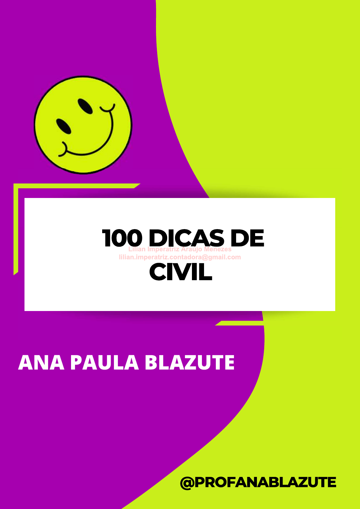 DICA 1 - DA PERSONALIDADE Art. 1º Toda pessoa é capaz de direitos e deveres na ordem civil. Art. 2º A personalidade civil da pessoa começa do nascimento com vida; mas a lei põe a salvo, desde a concepção, os direitos do nascituro. Capacidade de direito (ou de gozo): Consiste na capacidade de adquirir direitos e deveres na órbita civil. Todos possuem! Capacidade de fato (de exercício): É a capacidade para exercer sozinhoos atos da vida civil. Nem todos possuem! Informativo nº 7237 de fevereiro de 2022. REsp 1.961.581-MS, Rel. Min. Nancy Andrighi, Terceira Turma, por unanimidade, julgado em 07/12/2021, DJe 13/12/2021. DESTAQUE: O direito ao esquecimento não justifica a exclusão de matéria jornalística. DICA 2 - DA CAPACIDADE Art. 3º São absolutamente incapazes de exercer pessoalmente os atos da vida civil os menores de 16 (dezesseis) anos. (Redação dada pela Lei nº 13.146, de 2015) (Vigência) Absolutamente incapazes: São os menores de 16 anos (APENAS)! A capacidade dos indígenas será regulada por legislação especial. Informativo nº 694- 3 de maio de 2021. TERCEIRA TURMA REsp 1.927.423/SP, Rel. Min. Marco Aurélio Bellizze, Terceira Turma, por unanimidade, julgado em 27/04/2021. DESTAQUE: É inadmissível a declaração de incapacidade absoluta às pessoas com enfermidade ou deficiência mental. DICA 3 - DA EMANCIPAÇÃO Consiste na antecipação da capacidade plena. Voluntária -> Autorização de ambos os pais ou de um na falta do outro Legal-> Decorre da lei. Ocorre automaticamente quando se atinge uma das hipóteses do artigo 5º, CC/02. Judicial-> Concessão do Juiz seja porque é um menor tutelado ou há discordância dos pais no ato de emancipação. (ATENÇÃO: TUTOR NÃO EMANCIPA É PRECISO DE ORDEM JUDICIAL). DICA 4 - DA MORTE PRESUMIDA Morte é presumida quando NÃO há corpo! - Morte presumida com decretação de ausência: Sujeito está em local incerto ou não sabido, desaparecendo sem deixar notícias. A capacidade dos indígenas será regulada por legislação especialA capacidade dos indígenas será regulada por legislação especial -Morte presumida sem decretação de ausência: se for extremamente provável a morte, de quem estava em perigo de vida; ou alguém, desaparecido em campanha ou feito prisioneiro, não for encontrado até dois anos após o término da guerra. Saber o procedimento, fases e prazos; DICA 5 DOS DIREITOS DE PERSONALIDADE Os direitos da personalidade são exemplificativos! Integridade física Tutela do corpo vivo; corpo morto e autonomia da vontade. Integridade Psíquica Direito de imagem, direito ao nome privacidade e honra. Súmula 642 STJ - O direito à indenização por danos morais transmite-se com o falecimento do titular, possuindo os herdeiros da vítima legitimidade ativa para ajuizar ou prosseguir a ação indenizatória. DICA 6 - DA INTEGRIDADE FÍSICA Salvo por exigência médica, é defeso o ato de disposição do próprio corpo, quando importar diminuição permanente da integridade física, ou contrariar os bons costumes. Defeso = Proibido! O ato previsto neste artigo será admitido para fins de transplante, na forma estabelecida em lei especial. É válida, com objetivo científico, ou altruístico, a disposição gratuita do próprio corpo, no todo ou em parte, para depois da morte. O ato de disposição pode ser livremente revogado a qualquer tempo. DICA 7 DO NOME Toda pessoa tem direito ao nome, nele compreendidos o prenome e o sobrenome. O nome da pessoa não pode ser empregado por outrem em publicações ou representações que a exponham ao desprezo público, ainda quando não haja intenção difamatória. ATENÇÃO: Os transgêneros, que assim desejarem, independente da cirurgia de transgenitalização, ou da realização de tratamentos hormonais ou patologizantes, possuem o direito à alteração do prenome e do gênero (sexo) diretamente no registro civil! DICA 8 - DA AUSÊNCIA Se considera ausente àquele que desaparece de seu domicílio sem deixar notícias, nem indica representante ou procurador para administrar seus bens. Defeso = Proibido!Defeso = Proibido!Defeso = Proibido!Defeso = Proibido! DICA 9 - DA SUCESSÃO PROVISÓRIA Segunda fase do processo de sucessão de ausentes -> Regra geral, um ano após a arrecadação de bens do ausente e da correspondente nomeação de um curador, mediante pedido formulado pelos interessados (artigo 27 do Código Civil). Deixando o ausente um representante, o prazo é excepcional, aumentado para três anos. DICA 10 - DA SUCESSÃO DEFINITIVA A terceira fase no processo de sucessão de ausentes. Consiste na fase da ausência onde é declarada a morte da pessoa, após essa declaração os herdeiros entram na posse e na propriedade dos bens. DICA 11 DAS PESSOAS JURÍDICAS A existência legal das pessoas jurídicas de direito privado se inicia com a inscrição do ato constitutivo no respectivo registro. Precedida, quando necessário, de autorização ou aprovação do Poder Executivo. Prazo para anulação da formação da P.J = 3 anos! DICA 12 - DA DESCONSIDERAÇÃO DA PERSONALIDADE JURÍDICA A desconsideração da personalidade jurídica = Decisão judicial em que desconstitui os deveres da pessoa jurídica, pois estes passam a se confundir com os direitos ou responsabilidades de seus proprietários Informativo nº 733- 25 de abril de 2022. TERCEIRA TURMA REsp 1.965.982-SP, Rel. Min. Ricardo Villas Bôas Cueva, Terceira Turma, por unanimidade, julgado em 05/04/2022, DJe 08/04/2022. DESTAQUE: Fundo de investimento pode sofrer os efeitos da aplicação do instituto da desconsideração da personalidade jurídica. Desconsideração da personalidade juridica Teoria Maior deve demonstrar a fraude, abuso de personalidade Teoria Menor basta que se demonstre a insolvência da pessoa juridica DICA 13 DAS FUNDAÇÕES Fundação = Patrimônio afetado ao interesse público ou social que adquire personalidade jurídica. Exercem atividade social. São fiscalizadas pelo Mini