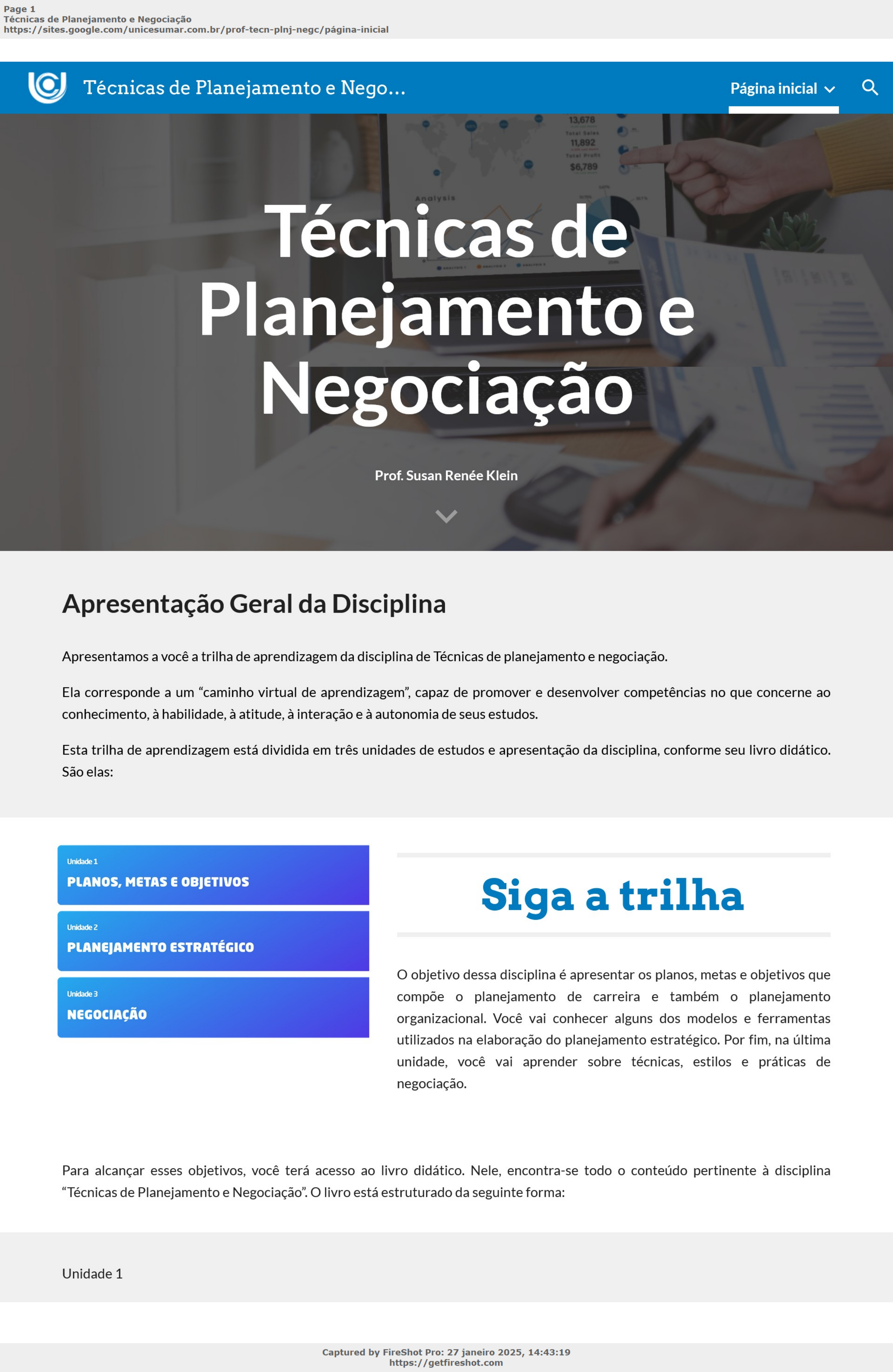 Técnicas de Planejamento e Negociação Página inicial Pular para o conteúdo principal Pular para a navegação Técnicas de Planejamento e Negociação Prof. Susan Renée Klein Apresentação Geral da Disciplina Apresentamos a você a trilha de aprendizagem da disciplina de Técnicas de planejamento e negociação. Ela corresponde a um “caminho virtual de aprendizagem”, capaz de promover e desenvolver competências no que concerne ao conhecimento, à habilidade, à atitude, à interação e à autonomia de seus estudos. Esta trilha de aprendizagem está dividida em três unidades de estudos e apresentação da disciplina, conforme seu livro didático. São elas: Siga a trilha O objetivo dessa disciplina é apresentar os planos, metas e objetivos que compõe o planejamento de carreira e também o planejamento organizacional. Você vai conhecer alguns dos modelos e ferramentas utilizados na elaboração do planejamento estratégico. Por fim, na última unidade, você vai aprender sobre técnicas, estilos e práticas de negociação. Para alcançar esses objetivos, você terá acesso ao livro didático. Nele, encontra-se todo o conteúdo pertinente à disciplina “Técnicas de Planejamento e Negociação”. O livro está estruturado da seguinte forma: Unidade 1 https://sites.google.com/unicesumar.com.br/prof-tecn-plnj-negc/página-inicial https://getfireshot.com https://sites.google.com/unicesumar.com.br/prof-tecn-plnj-negc/p%C3%A1gina-inicial https://sites.google.com/unicesumar.com.br/prof-tecn-plnj-negc/p%C3%A1gina-inicial PLANOS, METAS E OBJETIVOS • TÓPICO 1 - Plano • TÓPICO 2 - Objetivos e Metas Unidade 2 PLANEJAMENTO ESTRATÉGICO • TÓPICO 1 - O Que é Estratégia? Uma pequena viagem no tempo • TÓPICO 2 - O que é planejamento? • TÓPICO 3 - Principais modelos de Planejamento Estratégico Unidade 3 NEGOCIAÇÃO • TÓPICO 1 - O embrulho • TÓPICO 2 - Conceitos de Negociação • TÓPICO 3 - Tipos de Negociação • TÓPICO 4 - Estilos de Negociação • TÓPICO 5 - Negociação e o relacionamento com o cliente Lembre-se que estamos à disposição para lhe auxiliar. BONS ESTUDOS! Em pauta Para saber mais escute o podcast Disponível aqui Avançar UNICESUMAR | UNIVERSO EAD https://sites.google.com/unicesumar.com.br/prof-tecn-plnj-negc/página-inicial https://getfireshot.com https://www.google.com/url?q=https%3A%2F%2Fon.soundcloud.com%2Fwj5qR&sa=D&sntz=1&usg=AOvVaw0aD1w4SlLPC0T1VqgLaAWv https://sites.google.com/unicesumar.com.br/prof-tecn-plnj-negc/p%C3%A1gina-inicial/unidade-1 Técnicas de Planejamento e Negociação Página inicial Pular para o conteúdo principal Pular para a navegação PLANOS, METAS E OBJETIVOS A partir do estudo desta unidade, você deverá ser capaz de: • Analisar o meio ambiente e identificar a posição competitiva da empresa ou corporação em que atua; • Extrair o essencial para o desenvolvimento de estratégias competitivas; • Entender e fazer uso de técnicas de planejamento estratégico em todas as variações apresentadas; • Aptidão em manter-se alinhado com objetivos gerais e específicos e moldá-los de acordo com modificações necessárias ponderáveis ou imponderáveis; • Flexibilidade em alcançar objetivos bem como em elaborar metas adequadas; • Analisar e definir o posicionamento da empresa no mercado. PLANO DE ESTUDOS Esta unidade está dividida em dois tópicos. No decorrer da unidade você encontrará autoatividades com o objetivo de reforçar o conteúdo apresentado. https://sites.google.com/unicesumar.com.br/prof-tecn-plnj-negc/página-inicial/unidade-1 https://getfireshot.com https://sites.google.com/unicesumar.com.br/prof-tecn-plnj-negc/p%C3%A1gina-inicial https://sites.google.com/unicesumar.com.br/prof-tecn-plnj-negc/p%C3%A1gina-inicial Este vídeo apresenta o resumo do conteúdo abordado nesta unidade, clique e confira! Unidade 1 O Planejamento é a base de toda atividade. Sem planejamento, dificilmente conseguiremos executar tarefas com excelência. Nesta disciplina, você vai conhecer técnicas e ferramentas utilizadas nas organizações que também podem ser utilizadas no planejamento pessoal. TÓPICO 1 Plano O ato de planejar é vital em nossas vidas e isso replica-se às organizações, mas, apesar do tema ser muito discutido, o planejamento ainda é um desafio para muitas empresas. Segundo estudo realizado pelo SEBRAE, a falta de planejamento aparece como um dos três principais motivos que conduz empresas à falência nos primeiros cinco anos de vida. O estudo apontou que ao abrir a empresa, parte dos empreendedores não levantou informações importantes sobre o mercado e sobre itens básicos necessários às atividades da empresa. Conecte-se O impacto da falta de planejamento estratégico nas MPE Disponível aqui TÓPICO 2 Objetivos e Metas No segundo tópico da primeira unidade, você vai perceber que os objetivos e metas caminham lado a lado, sendo temporais por terem prazos específicos para acontecer. https://sites.google.com/unicesumar.com.br/prof-tecn-plnj-negc/página-inicial/unidade-1 https://getfireshot.com https://www.google.com/url?q=https%3A%2F%2Fwww.sebrae.com.br%2Fsites%2FPortalSebrae%2Fconteudos%2Fposts%2Fo-impacto-da-falta-de-planejamento-estrategico-nas-mpe%2C51766531d1ac4810VgnVCM100000d701210aRCRD&sa=D&sntz=1&usg=AOvVaw0vT72Ls8EBURD6FcwRydNO Em pauta Para saber mais escute o podcast Disponível aqui Tópico 1 - Plano INTRODUÇÃO A forma como vivemos, crendo que ao final de cada ano tudo o que fez parte daquele ano não voltará e que o ano seguinte nos reserva uma folha em branco em que poderemos escrever tudo novo, parece ser mágica. Poderia ser real, não fosse a quantidade de repetições das mesmas promessas que nunca, ou quase nunca são cumpridas? Temos em mente vários sonhos, desejos e queremos alcançá-los, mas esses planos só acontecem se tivermos estipulado objetivos e traçado metas para fazê-lo. Mesmo parecendo que são a mesma coisa, os objetivos são 
