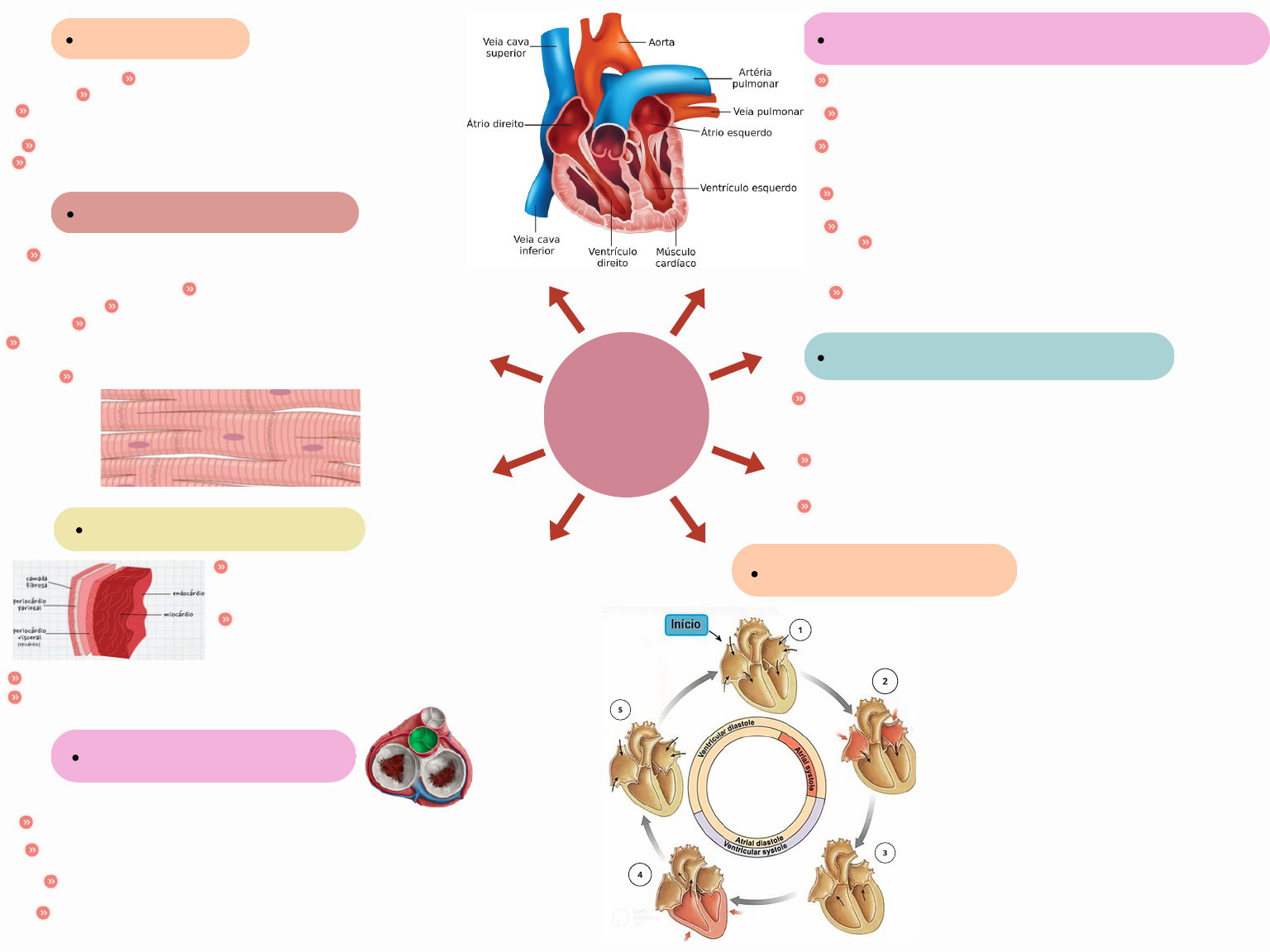 Formado por duas bombas distintas: Coração direito - bombeia o sangue para os pulmões Coração esquerdo - bombeia o sangue para os demais órgãos e tecidos do corpo Cada coração é uma bomba pulsátil de duas câmaras (átrio e ventrículo) Função principal: irrigar todo o corpo garantindo um suprimento adequado O coração possui 3 tipos principais de músculo: atrial, ventricular e fibras especializadas na excitação e condução Músculo estriado As fibras se dividem, recombinam e separam Caráter sincicial (movimentação simultânea e harmônica) Presença de discos intercalados, garantindo rápida comunicação e maior adesão entre as células Junções comunicantes / Gap junctions: rápida difusão de íons Pericárdio: camada mais externa do coração, reveste e protege todo o órgão, subdividida em pericárdio fibroso, parietal e visceral Cavidade pericárdica: localizada entre os pericárdios parietal e visceral, conduz o fluido pericárdico que auxilia no deslizamento muscular durante as contrações Valva atrioventricular direita (tricúspide): conecta o fluxo sanguíneo entre o átrio direito e ventrículo direito, possui 3 válvulas Valva atrioventricular esquerda (mitral): conecta o fluxo sanguíneo entre o átrio esquerdo e o ventrículo esquerdo, possui 2 válvulas Valva semilunar aórtica: conecta o fluxo sanguíneo de saída do ventrículo esquerdo em direção à artéria aorta, possui 3 válvulas Valva semilunar pulmonar: conecta o fluxo sanguíneo de saída do ventrículo direito em direção à artéria pulmonar, possui 3 válvulas ANATOMIA FUNCIONAL DO CORAÇÃO O CORAÇÃO O MÚSCULO CARDÍACO CAMADAS DO CORAÇÃO Miocárdio: camada mais espessa do coração, responsável pela capacidade de contração Endocárdio: camada mais interna do coração, reveste as cavidades, as válvulas e os músculos associados com as válvulas CARDIOPATIAS ASSOCIADAS Pericardite, Miocardite e Endocardite: Inflamação das respectivas camadas do coração, podendo causar morte dos tecidos. Normalmente oriundas de infecção ou distúrbios sistêmicos Isquemia: interrupção parcial do fluxo sanguíneo para determinada região do músculo cardíaco Infarto: interrupção total da irrigação sanguínea para uma região do coração causando morte do tecido CONTRAÇÃO DO MÚSCULO CARDÍACO Inicia com a chegada da estimulação elétrica das fibras especializadas do coração Canais de cálcio controlados por voltagem se abrem e o cálcio entra na célula O cálcio no interior da célula induz a liberação de mais cálcio acumulado no retículo sarcoplasmático por meio da ativação dos canais receptores de rianodina (RyR) Os íons cálcio abundantes no citoplasma se ligam na troponina e iniciam a contração O relaxamento muscular ocorre quando o cálcio se desliga da troponina Parte do cálcio é bombeada de volta para dentro do retículo sarcoplasmático e parte ganha o exterior da célula através do antiporte de sódio e cálcio O gradiente do antiporte é mantido por meio de uma bomba de sódio e potássio O CICLO CARDÍACO VALVAS DO CORAÇÃO 1) Final da diástole: ambos os conjuntos de câmaras estão relaxados e os ventrículos se enchem passivamente 2) Sístole atrial: a contração atrial força uma pequena quantidade de sangue adicional para dentro dos ventrículos 3) Contração ventricular isovolumétrica: a primeira fase da contração ventricular empurra as valvas atrioventriculares e elas fecham, mas não é criada pressão suficiente para abrir as valvas semilunares 4) Ejeção ventricular: conforme a pressão ventricular aumenta e excede a pressão nas artérias, as valvas semilunares se abrem e o sangue é ejetado 5) Relaxamento ventricular isovolumétrico: quando os ventrículos relaxam a pressão nos ventrículos cai, o sangue fui de volta para as cúspides vindo das valvas semilunares e elas se fecham
