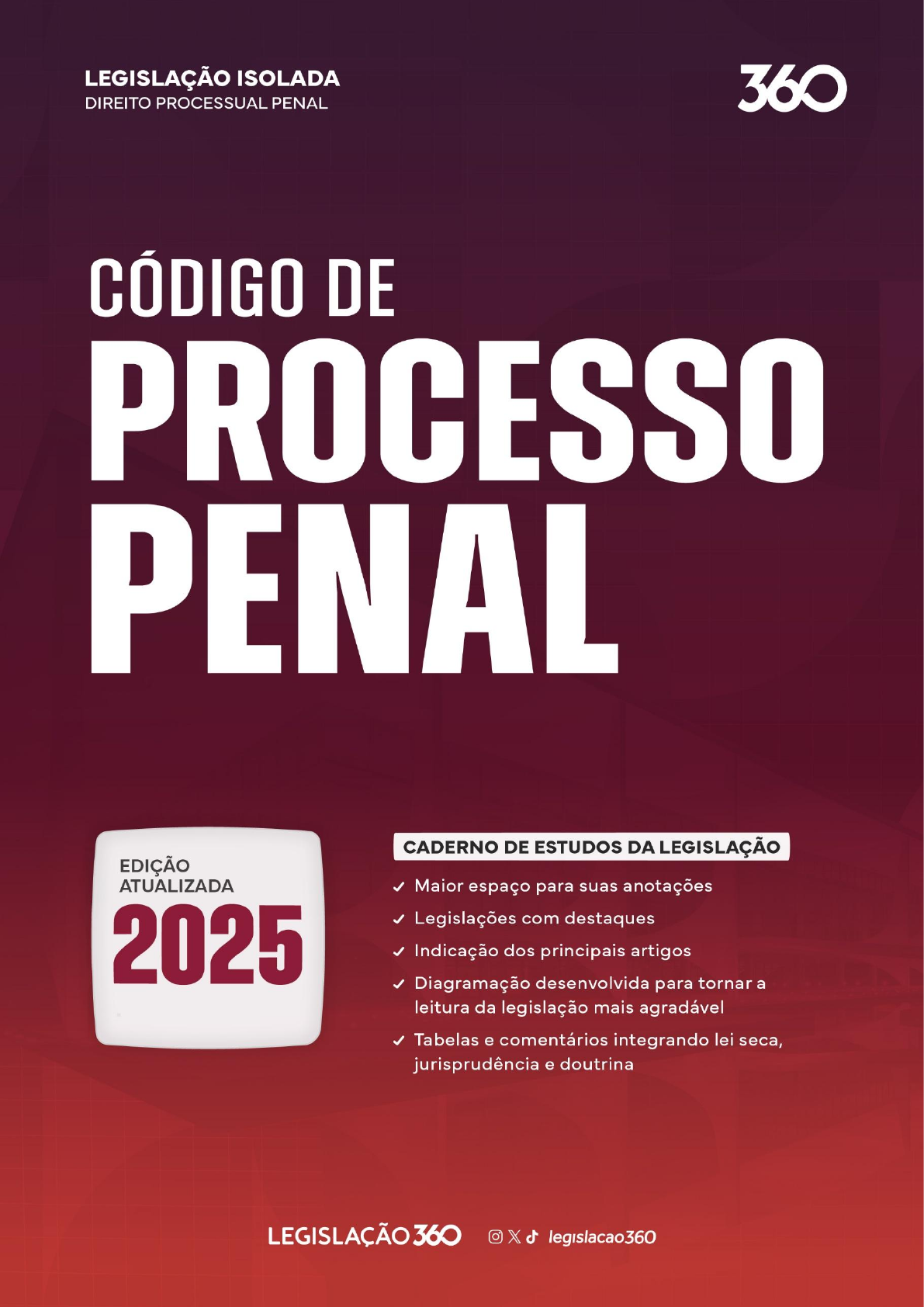 1 2025.2 2 2025.2, 18.03.2025 3 INDICAÇÃO DOS PRINCIPAIS ARTIGOS TABELAS E JURISPRUDÊNCIA REDAÇÃO SIMPLIFICADA LEGISLAÇÃO COM DESTAQUES NAVEGAÇÃO POR MARCADORES Avance no estudo das legislações e organize todas as suas anotações em um só lugar. Criamos este formato de CADERNO DE ESTUDOS em 2018, combinando a letra da lei, jurisprudência, tabelas e o espaço dedicado para anotações que se tornou marca da Legislação 360. Além de todas as demais marcações, destacamos com uma estrela os artigos com maior incidência em provas e que merecem atenção especial. Para aprofundar seus estudos, incluímos a jurisprudência relacionada aos dispositivos e tabelas esquematizando a doutrina. Desenvolvemos uma diagramação especial para as legislações, facilitando muito a sua leitura. Além disso, também simplificamos a redação dos dispositivos, especialmente nos números. NEGRITO › ROXO › LARANJA › CINZA SUBLINHADO › Utilizado para realçar termos importantes. Aplicado para destacar números, incluindo datas, prazos, percentuais e outros valores numéricos. Expressões que denotam negação, ressalva ou exceção. Indica vetos e revogações. Dispositivos cuja eficácia está prejudicada, mas não estão revogados expressamente. Uma ferramenta adicional para leitores digitais. Nossos materiais foram desenvolvidos para garantir uma leitura confortável quando impressos, mas se você prefere ler em dispositivos eletrônicos, conheça esta funcionalidade. Implementamos em todos os nossos conteúdos o recurso de navegação por marcadores, um componente interativo do leitor de PDF (cujo nome pode variar de acordo com o programa utilizado). Nesta ferramenta, títulos, capítulos, seções e artigos das legislações, assim como súmulas e outros textos relevantes de jurisprudência, são organizados na barra de marcadores do leitor de PDF. Isso permite que você localize cada item de forma mais rápida. Além disso, a funcionalidade VOLTAR, presente em alguns leitores de PDF, facilita o retorno ao ponto de leitura onde você parou, sem a necessidade de ficar rolando páginas. ESPAÇO PARA ANOTAÇÕES CINZA TACHADO › 4 GUIA DE ESTUDOS Se você está começando a se preparar para concursos ou busca uma melhor organização e planejamento, este guia será de grande ajuda em sua jornada. Disponibilizamos o conteúdo gratuitamente em nosso site: www.legislacao360.com.br CONTROLE DE LEITURA DAS LEGISLAÇÕES Incluído no Guia de Estudos, o PLANNER METAS DA LEGISLAÇÃO é uma planilha desenvolvida para ajudar você a organizar suas leituras e revisões. Este material é gratuito e está disponível para download em nosso site. No guia você encontrará também sugestões de como utilizar a planilha. Veja algumas das características principais: BIBLIOGRAFIA PARA CONCURSOS PÚBLICOS E OAB ORIENTAÇÕES PARA ESTUDAR JURISPRUDÊNCIA COMO OTIMIZAR A RESOLUÇÃO DE QUESTÕES MODELO DE CICLO DE ESTUDOS PLANNER PARA A LEITURA DE INFORMATIVOS (STF E STJ) PLANNER PARA O ESTUDO DAS LEGISLAÇÕES Desenvolvimento editorial e todos os direitos reservados a 360 EDITORA JURÍDICA LTDA. Material protegido por direitos autorais. É proibida a reprodução ou distribuição deste material, ainda que sem fins lucrativos, sem a expressa autorização da 360 Editora Jurídica Ltda. Lei 9.610/98 – Lei de Direitos Autorais. www.legislacao360.com.br – editora@360.ltda – CNPJ 51.278.476/0001-20 5 SUMÁRIO ÍNDICE DAS TABELAS ...................................................................................................................................................................................... 6 DL 3.689/41 - Código de Processo Penal ................................................................................................................................................. 9 LIVRO I - DO PROCESSO EM GERAL.......................................................................................................................................................... 10 Título I - Disposições Preliminares ................................................................................................................................................................... 10 Título II - Do Inquérito Policial .......................................................................................................................................................................... 16 Título III - Da Ação Penal ..................................................................................................................................................................................... 28 Título IV - Da Ação Civil ....................................................................................................................................................................................... 42 Título V - Da competência ................................................................................................................................................................................... 44 Título VI - Das questões e processos incidentes.......................................................................................................................................... 53 Título VII - Da prova .............................................................................................................................................................................................. 64 Título VIII - Do juiz, do Ministério Público, do acusado e defensor, dos assistentes e auxiliares da Justiça .......................... 91 Título IX - Da prisão, das medidas cautelares e da liberdade provisória ............................................................................................ 97 Título X - Das citações e intimações ......................................................................................................................................