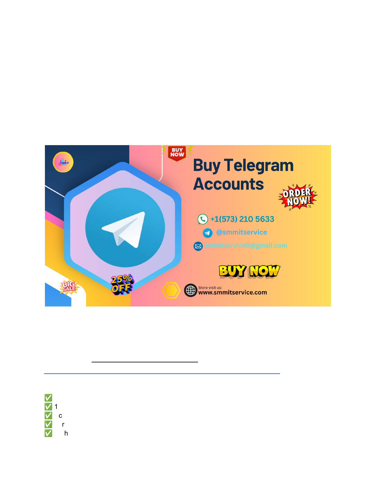 Top 40 Best sites to Buy Telegram Accounts (PVA & Aged) Los Angeles12 Buying Telegram accounts might be the game-changing strategy you’ve been searching for. Iigh-quality Telegram accounts to help you expand your network, promote your business, or enhance engagement. It’s not just about numbers; it’s about creating a thriving community that amplifies your voice. Intrigued? You should be. Discover how this simple step can transform your digital presence and help you achieve your goals faster than ever before. Keep reading to uncover the secrets behind buying Telegram accounts and why it could be the perfect move for you. More Services SMM iT Service More information visit us: https://smmitservice.com/product/buy-telegram-accounts/ Features of Our Telegram Accounts- ✅ 100% Customers Satisfaction Guaranteed. ✅ 100% Non-Drop Telegram Accounts ✅ Active Telegram Accounts ✅ Very Cheap Price. ✅ High-Quality Service. https://smmitservice.com/product/buy-telegram-accounts/ ✅ 24/7 Ready to Customer Support. ✅ Extra Bonuses for every service. If you want to more information just knock us:– 24 Hours Reply/Contact ➤ WhatsApp: +1 (573) 210-5633 ➤ Telegram: @smmitservice ➤ Email: smmitservice0@gmail.com Are you looking to boost your social media presence and expand your online reach? Buying Telegram accounts might just be the game-changing strategy you need. Imagine having access to a vast network of active users, ready to engage with your content and amplify your message. You're not alone in this quest for digital dominance—many individuals and businesses are turning to Telegram for its unique features and robust community. But why should you consider purchasing accounts, and how can it benefit you? Stick around, because we're about to dive into the compelling reasons that will have you rethinking your social media strategy. Discover how this investment can enhance your brand's visibility and credibility, making you stand out in the crowded digital landscape. Why Telegram Accounts Matter In today's digital age, Telegram has become a vital platform. It is not just for messaging but for building connections. With millions of users, Telegram offers vast opportunities. Businesses, influencers, and communities find it essential. But why do Telegram accounts matter so much? More information visit us: https://smmitservice.com/product/buy-telegram-accounts/ More information visit us: https://smmitservice.com/product/buy-telegram-accounts/ More information visit us: https://smmitservice.com/product/buy-telegram-accounts/ Expanding Your Reach Telegram accounts allow you to reach a global audience. You can connect with people from different countries easily. This helps in sharing your message far and wide. The platform https://smmitservice.com/product/buy-telegram-accounts/ https://smmitservice.com/product/buy-telegram-accounts/ https://smmitservice.com/product/buy-telegram-accounts/ supports media, text, and voice messages. It is a great tool to spread your ideas quickly. More people seeing your content means more engagement. New opportunities arise with each new connection. This is why many prefer Telegram over other platforms. Building Community Engagement Engaging with your community is crucial. Telegram makes it easy to interact with followers. You can create channels and groups for discussions. This helps in building a strong community. Regular updates keep your audience engaged. They feel connected and valued. Interactive polls, quizzes, and Q&As can boost participation. A lively community often leads to growth. Strong engagement is key to success on Telegram. If you want to more information just knock us:– 24 Hours Reply/Contact ➤ WhatsApp: +1 (573) 210-5633 ➤ Telegram: @smmitservice ➤ Email: smmitservice0@gmail.com Benefits Of Buying Telegram Accounts Buying Telegram accounts offers strategic benefits for businesses and influencers. It provides a quick way to establish a presence on this popular platform. With a larger audience base, your reach expands significantly. This can lead to more engagement and increased visibility. Let's explore the specific advantages of purchasing Telegram accounts. More information visit us: https://smmitservice.com/product/buy-telegram-accounts/ More information visit us: https://smmitservice.com/product/buy-telegram-accounts/ More information visit us: https://smmitservice.com/product/buy-telegram-accounts/ Instant Audience Growth One major benefit is instant audience growth. Buying accounts gives you a ready-made audience. This saves time and effort in building from scratch. A larger audience can boost your brand's visibility. It helps you connect with more potential customers. More followers can also lead to higher engagement rates. Engaging content will reach a broader audience. This can enhance your overall marketing strategy. https://smmitservice.com/product/buy-telegram-accounts/ https://smmitservice.com/product/buy-telegram-accounts/ https://smmitservice.com/product/buy-telegram-accounts/ If you want to more information just knock us:– 24 Hours Reply/Contact ➤ WhatsApp: +1 (573) 210-5633 ➤ Telegram: @smmitservice ➤ Email: smmitservice0@gmail.com More information visit us: https://smmitservice.com/product/buy-telegram-accounts/ More information visit us: https://smmitservice.com/product/buy-telegram-accounts/ More information visit us: https://smmitservice.com/product/buy-telegram-accounts/ Enhanced Credibility Another benefit is enhanced credibility. A higher follower count can make your brand seem more established. It can create a sense of trust among new users. People tend to trust accounts with more followers. This trust can lead to increased interactions and conversions. Establishing credibility is crucial in today's digital world. Buying Telegram accounts can give you a head start. It helps in building a strong online reputation. Types Of Telegram Accounts Available Exploring Telegram accounts reveals diverse option