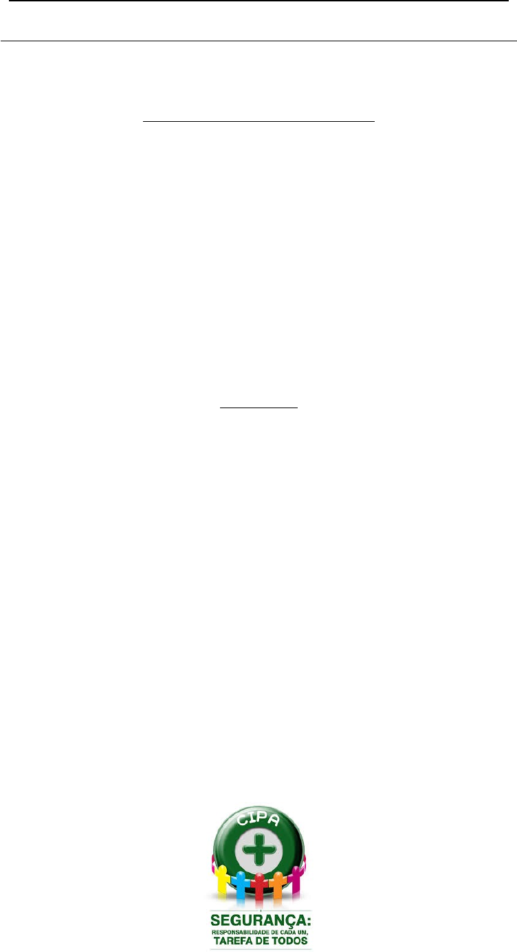 DEPARTAMENTO DE CIÊNCIA E TECNOLOGIA AEROESPACIAL COMISSÃO DE SEGURANÇA E MEDICINA DO TRABALHO - CSMT TREINAMENTO DA CIPA 2025 O Treinamento de Segurança da Comissão Interna de Prevenção de Acidentes e de Assédio – CIPA, tem como objetivo a prevenção de acidentes e doenças decorrentes do trabalho, de modo a tornar compatível permanentemente o trabalho com a preservação da vida e a promoção da saúde do trabalhador (Ref. NR-05). MÓDULO 1: O QUE É CIPA? MÓDULO 2: ACIDENTES DO TRABALHO SUMÁRIO 1.1 INTRODUÇÃO A SEGURANÇA DO TRABALHO-------------------------------------------02 1.2 O QUE É CIPA----------------------------------------------------------------------------------------03 1.3 SEGURANÇA DO TRABALHO NO COMAER (ICA 206-1)-------------------------------04 1.4 REUNIÃO DE CIPA----------------------------------------------------------------------------------16 2.1 SEGURANÇA DO TRABALHO NO COMAER (ICA 206-1)-------------------------------21 2.2 ACIDENTES DE TRABALHO---------------------------------------------------------------------22 2.3 CAUSAS DE ACIDENTES DE TRABALHO---------------------------------------------------24 2.4 INVESTIGAÇÃO DOS ACIDENTES DE TRABALHO--------------------------------------25 2.5 RELATÓRIO DE ANÁLISE DE ACIDENTE----------------------------------------------------31 2.6 EXEMPLO DE RELATÓRIO DE ANÁLISE DE ACIDENTE-------------------------------33 1 MÓDULO 1 OQUE É CIPA? 1.1 INTRODUÇÃO A SEGURANÇA DO TRABALHO A Segurança do Trabalho pode ser entendida como o conjunto de medidas adotadas, visando minimizar os acidentes de trabalho, doenças ocupacionais, bem como proteger a integridade e a capacidade de trabalho das pessoas envolvidas. A Segurança do Trabalho é praticada pela conscientização de empregadores e empregados em relação aos seus direitos e deveres e também praticada no trabalho, na rua, em casa, em todo lugar e em qualquer momento. O quadro de Segurança do Trabalho de uma organização, quando necessário, é formado de uma equipe multidisciplinar composta pelos seguintes profissionais: • Engenheiro de Segurança do Trabalho; • Médico do Trabalho; • Técnico de Segurança do Trabalho; • Enfermeiro do Trabalho; • Auxiliar em Enfermagem do Trabalho. Esses profissionais formam o SESMT - Serviço Especializado em Engenharia de Segurança e Medicina do Trabalho. A CIPA - Comissão Interna de Prevenção de Acidentes, que é composta por representantes do empregador e dos empregados, que tem a responsabilidade de auxiliar o SESMT nas atividades prevencionistas. 2 A Segurança do Trabalho é definida por normas e leis. No Brasil a Legislação de Segurança do Trabalho baseia-se nas: • Constituição Federal (CF); • Consolidação das Leis do Trabalho (CLT); • Normas Regulamentadoras (NR). Leis complementares como portarias, decretos e convenções internacionais como: • Organização Internacional do Trabalho (OIT); • Organização Mundial da Saúde (OMS). 1.2 O QUE É CIPA? Significa Comissão Interna de Prevenção de Acidentes, criada na década de 40, pelo Governo Federal, objetivando reduzir o grande número de acidentes de trabalho nas indústrias. É um grupo de pessoas, constituído por representantes dos empregados e do empregador especialmente treinados para colaborar na prevenção de acidentes. A participação efetiva dos trabalhadores nessa comissão é um dos pilares de qualquer programa voltado à prevenção de acidentes. A CIPA considera o fato de o acidente de trabalho ser fruto de causas que podem ser eliminadas ou atenuadas ora pelo empregador, ora pelo próprio empregado ou, ainda, pela ação conjugada de ambos. As organizações privadas e públicas e os órgãos governamentais que possuam empregados regidos pela CLT ficam obrigados a organizar e manter em funcionamento uma CIPA, que é normatizada pela Norma Regulamentadora – NR-05, da portaria do MTB nº3.214 de 08 de junho de 1978. 3 1.3 SEGURANÇA DO TRABALHO NO COMAER (ICA 206-1) FINALIDADE A presente Instrução tem por finalidade estabelecer as diretrizes e os requisitos para o gerenciamento de riscos ocupacionais, para a constituição, bem como o funcionamento e as atribuições da CIPA. CONCEITUAÇÕES a) AGENTE BIOLÓGICO: Microrganismos, parasitas ou materiais originados de organismos que, em função de sua natureza e do tipo de exposição, são capazes de acarretar lesão ou agravo à Saúde do trabalhador. Exemplos: parasitas, bactérias, protozoários, fungos, vírus e príons. b) AGENTE FÍSICO: Qualquer forma de energia que, em função de sua natureza, intensidade e exposição, seja capaz de causar lesão ou agravo à Saúde do trabalhador. Exemplos: ruído, vibrações, pressões anormais, temperaturas extremas, radiações ionizantes, radiações não ionizantes e umidade. c) AGENTE QUÍMICO: Substância química, que, por si só, ou em misturas, quer Seja em seu estado natural, quer Seja utilizada em processo de trabalho, quer Seja em função de sua natureza, de sua concentração e de sua exposição, Seja capaz de causar lesão ou agravo à Saúde do trabalhador. d) ANALISE DE RISCO: Processo de compreensão da natureza do risco, determinando-se o nível de risco. Inclui a apreciação das causas e das fontes de risco, assim como, as suas consequências positivas e negativas da ocorrência do risco em tela. 4 e) ATESTADO DE ORIGEM: Documento final, resultante de sindicância pericial, que visa a determinar a existência de um nexo causal ocupacional, com determinado agravo à Saúde, seja doença ou acidente, com previsão no Estatuto dos Militares (Lei 6.880/ 1980). A antiga denominação - ATESTADO SANITÁRIO DE ORIGEM - está sendo revista, alinhando-se às normas em vigor. f) COMISSÃO INTERNA DE PREVENÇÃO DE ACIDENTES (CIPA): Comissão, designada pelo Comandante, Chefe ou Diretor da OM, encarregada de observar e de avaliar as condições de risco, nos ambientes de trabalho, sugerind