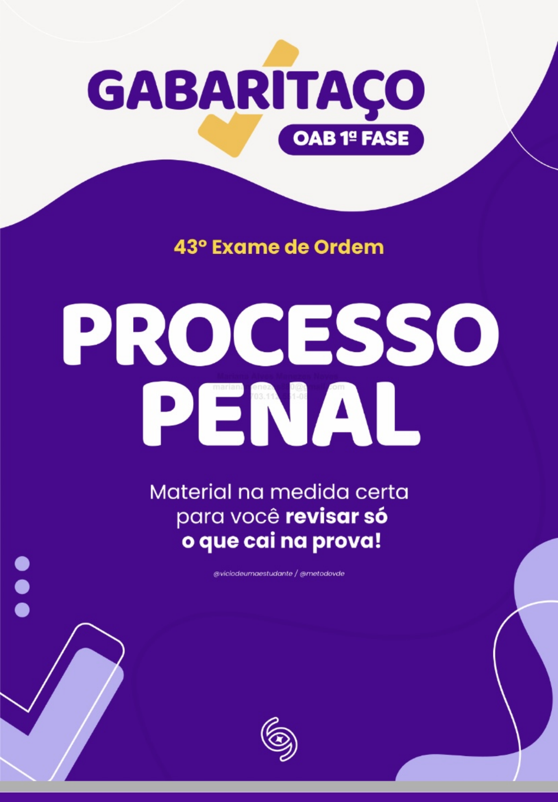 GABARITAÇO OAB FASE 43° Exame de Ordem PROCESSO PENAL Material na medida certa para você revisar só que cai na prova! @viciodeumaestudante / @metodovdeGABARITAÇO INQUÉRITO POLICIAL DICA 01 Oficiosidade: Em regra, inquérito policial será instaurado de ofício. Oficialidade: Somente poderá ser realizado por que é Inquérito Policial? órgãos oficiais. inquérito policial é um procedimento Autoritariedade: Existe a figura do delegado administrativo conduzido pela polícia judiciária como autoridade para conduzir Inquérito Policial. (Polícia Civil ou Polícia Federal) com o objetivo Indisponibilidade: Art. 17 do CPP A autoridade de investigar crimes e reunir provas sobre sua policial não poderá mandar arquivar autos de autoria e materialidade. inquérito. Ele serve para fornecer elementos que auxiliem Ministério Público na decisão de oferecer ou Dispensável (doutrina majoritária) ou indispensável sob aspecto da doutrina mais não a denúncia contra um suspeito. moderna. Art. 39, § 50 do CPP órgão do Ministério Público dispensará inquérito, se com Linha do tempo: a representação forem oferecidos elementos que habilitem a promover a ação penal, e, neste caso, oferecerá a denúncia no prazo de FATO quinze dias. Polícia Acionada CRIMINOSO DICA 03 Denúncia Anônima B.O LAVRADO Delegacia Menezes Neves Se a autoridade policial tem notícia de um crime baseado em denúncia anônima, NÃO poderá, de pronto, instaurar inquérito INQUÉRITO policial, MAS será possível realizar diligências Ação Penal prévias para se atestar a veracidade da INSTAURADO denúncia anônima. Feito isso, a autoridade policial, entendendo que OS elementos colhidos são relevantes, poderá instaurar IP ! DICA 02 Durante inquérito, advogado poderá acompanhar seu cliente nos atos em que este Características do Inquérito Policial tenha que comparecer. Sua ausência, quando requerida pelo investigado, pode gerar a Inquisitivo: Não admite contraditório e ampla invalidação do realizado, mas não do defesa (contraditório diferido ou postergado). inquérito. Procedimento Escrito: Art. 9 do CPP Todas as peças do inquérito policial serão, num só processado, reduzidas a escrito ou DICA 04 datilografadas e, neste caso, rubricadas pela autoridade. Sigiloso: Art. 20 do CPP A autoridade Formas de Instauração e Procedimento assegurará no inquérito sigilo necessário à Pode ocorrer de três formas: elucidação do fato ou exigido pelo interesse da sociedade. De ofício; Inexistência de nulidades: em regra, as Por requisição do Ministério Público; nulidades dos atos da investigação não irão Por requerimento do ofendido ou de seu contaminar processo judicial, salvo exceções. representante legal. @viciodeumaestudante / @metodovde GABARITAÇO OAB FASEGABARITAÇO COMO JÁ CAIU... Portanto, a denúncia anônima, por si só, não possui suficiente credibilidade para embasar a instauração Após receber denúncia anônima, por meio de imediata de um inquérito policial, sem a realização de disquedenúncia, de grave crime de estupro diligências preliminares para confirmar as informações com resultado morte que teria sido praticado fornecidas, nos termos do Art. § do Art. § CPP: Qualquer pessoa do povo que tiver por Lauro, 19 anos, na semana pretérita, a conhecimento da existência de infração penal em que autoridade policial, de imediato, instaura caiba ação pública poderá, verbalmente ou por escrito, inquérito policial para apurar a suposta prática comunicá-la à autoridade policial, e esta, verificada a delitiva. Lauro é chamado à Delegacia e procedência das informações, mandará instaurar apresenta sua identidade recém-obtida; em inquérito." seguida, é realizada sua identificação criminal, com colheita de digitais e fotografias. Em que b) Errada. É vedado constranger ou obrigar pese não ter sido encontrado o cadáver até investigado/réu a participar da reprodução simulada aquele momento das investigações, a dos fatos, em observância ao princípio da vedação à autoridade policial, para resguardar a prova, auto acusação (nemo tenetur se detegere), qual pretende colher material sanguíneo do estabelece que ninguém é obrigado a produzir prova indiciado Lauro para fins de futuro confronto, contra si mesmo. É importante destacar que, em alguns além de desejar realizar, com base nas casos, investigado/réu poderá ser obrigado a fornecer material exemplo é disposto no art. declarações de uma testemunha presencial parágrafo único, da Lei n° 12.037/2009. localizada, uma reprodução simulada dos "Art. Lei n° 12.037/2009: A identificação criminal incluirá fatos; no entanto, Lauro se recusa tanto a processo datiloscópico e fotográfico, que serão participar da reprodução simulada quanto a juntados aos autos da comunicação da prisão em permitir a colheita de seu material sanguíneo. É, flagrante, ou do inquérito policial ou outra forma de ainda, realizado o reconhecimento de Lauro por investigação. uma testemunha após ser-lhe mostrada a Parágrafo único. Na hipótese do inciso IV do art. a fotografia dele, sem que fossem colocadas identificação criminal poderá incluir a coleta de material imagens de outros indivíduos com biológico para a obtenção do perfil genético." características semelhantes. Ao ser informado sobre os fatos, na defesa do c) Em regra, vícios no inquérito policial não interesse de seu cliente, o(a) advogado(a) de contaminam a ação penal. Segundo o STF, o Lauro, sob o ponto de vista técnico, deverá procedimento investigatório é uma mera peça informativa, não incidindo os princípios da ampla defesa alegar que: e do contraditório. a) o inquérito policial não poderia ser d) Errada. Em regra, civilmente identificado não será instaurado, de imediato, com base em submetido à identificação criminal, salvo em casos denúncia anônima isoladamente, sendo específicos, segundo que dispõ