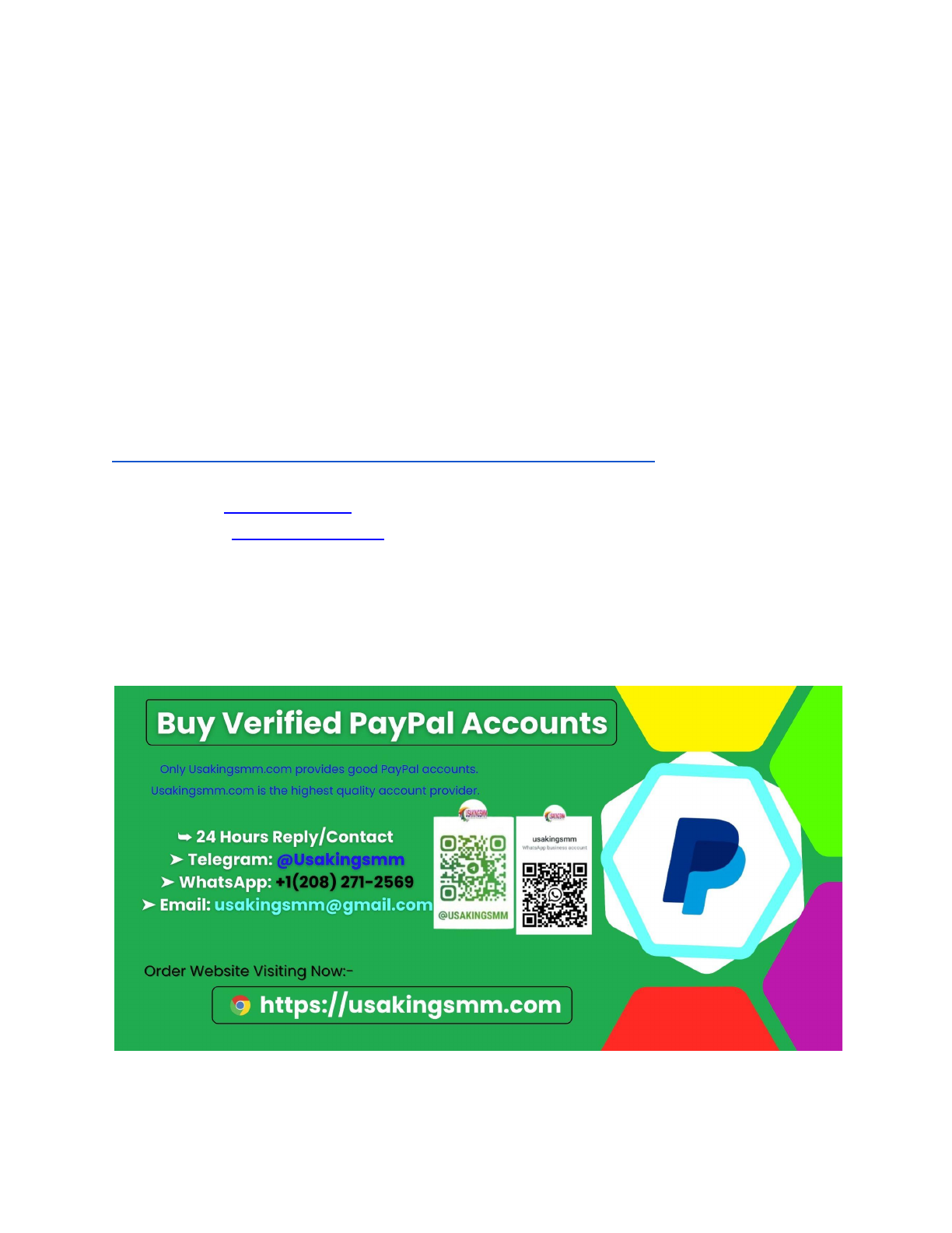 The Benefits of Buying Verified PayPal Accounts for Your Business Have you ever faced the frustration of a transaction getting stuck or delayed because of PayPal account issues? You're not alone. In the fast-paced world of online transactions, having a verified PayPal account is crucial. It not only ensures smooth transactions but also boosts your credibility in the digital marketplace. If you've been wondering how to obtain a verified PayPal account without the usual hassle, you've come to the right place. Order Website Visiting Now:-Click the link:- https://usakingsmm.com/product/buy-verified-paypal-accounts/ ➥ 24 Hours Reply/Contact ➤ Telegram: @Usakingsmm ➤ WhatsApp: +1(208) 271-2569 ➤ Email: usakingsmm@gmail.com This complete guide will walk you through everything you need to know about buying verified PayPal accounts. Discover how this move can simplify your online dealings and offer you peace of mind. Keep reading to unlock the secrets to seamless online transactions and elevate your digital experience. https://usakingsmm.com/product/buy-verified-paypal-accounts/ https://t.me/Usakingsmm https://wa.me/message/LTVXHCQXS7XGI1?src=qr Importance Of Verified Accounts Verified accounts help keep your money safe. They add an extra layer of security to your online activities. This can prevent many online threats. Using a verified account means people trust you more. It can make transactions smoother and faster. Sellers feel more confident when dealing with verified users. Sometimes, people with unverified accounts face transaction limits. A verified account can help remove these limits. This allows for larger transactions. You can buy more things without worry. How Verification Works Paypal uses verification to ensure accounts are safe and real. Verification checks if your email, bank, and identity are correct. This process helps protect your money from fraud. First, you provide your email and link it to Paypal. Then, you add a bank account or card. Paypal sends a small amount to your bank. You confirm this amount on your account. This step helps verify your bank link. Lastly, you may need to upload a photo ID. This step proves your identity. Verified accounts have more benefits. They allow higher transaction limits. You can also send and receive more money. Verification builds trust with other users. It shows you are a real person. A verified account is safer and more reliable. Order Website Visiting Now:-Click the link:- https://usakingsmm.com/product/buy-verified-paypal-accounts/ ➥ 24 Hours Reply/Contact ➤ Telegram: @Usakingsmm ➤ WhatsApp: +1(208) 271-2569 ➤ Email: usakingsmm@gmail.com Benefits Of Verified Paypal Verified PayPal accounts are safer. They help in smooth online transactions. These accounts have more trust. People like to do business with them. They show that you are a real person. It means you have given true information. This helps to stop fraud. Many sellers and buyers feel safe with verified accounts. You can send and receive more money. Limits are higher for verified users. This makes it easy to do business. Online shopping becomes simpler. You can buy things from any part of the world. Many websites accept PayPal. With a verified account, you get more options. Transactions become quick and easy. This saves a lot of time. Verified accounts give peace of mind. You can focus on your work without worry. https://usakingsmm.com/product/buy-verified-paypal-accounts/ https://t.me/Usakingsmm https://wa.me/message/LTVXHCQXS7XGI1?src=qr Risks Of Unverified Accounts Unverified PayPal accounts can be risky. They might not be safe. Hackers can access them easily. Your money could disappear. Personal information is not secure. Theft is possible. Your email might get spam. Transactions may fail. Payments can get stuck. You may face limits on spending. Some sellers do not accept them. Account suspensions are frequent. You may lose access. Trouble with refunds can happen. Support is limited. They might not help you. Finding Trusted Sellers It's important to find trusted sellersfor verified PayPal accounts. Many people sell these accounts online. But not all are safe. Look for sellers with good reviews. Check if they have been around for a while. A seller with a long historyis often more trustworthy. Some websites list verified sellers. These sites check if the seller is real. Always read what others say about the seller. Reviews can tell if the seller is honest. Avoid sellers with bad reviewsor no reviews. Sometimes, friends can suggest a seller. Ask people you trust. They might know a seller who is safe. Remember, it's better to be safe than sorry. Key Features To Look For Buying a verified PayPal accountcan be tricky. It's important to know what to check. First, make sure the account is fully verified. This means all details are checked. Look for accounts with linked bank accounts. This makes transactions easier and safer. Another point is the account's transaction history. It should be clean and without issues. Ensure the account has no past disputesor problems. Accounts with a good reputation are valuable. Also, check if the account has a verified email. This adds an extra layer of security. Finally, confirm there are no pending limitationson the account. These can cause trouble later. By checking these features, you can buy safely and securely. Price Considerations Verified Paypal accounts can be expensive. Prices vary based on several factors. Account age impacts cost. Older accounts are often pricier. The country of origin can affect the price. Accounts from certain regions may cost more. Reputation matters too. Highly rated sellers often charge higher prices. Payment methods can influence costs. Credit card payments might have extra fees. Discounts may apply for bulk purchases. Consider seller fees and transaction costs. Always check for hidden charges. Comparing different sellers can save money. Look for trusted sellers to avoid scams. Order Website Visiting No
