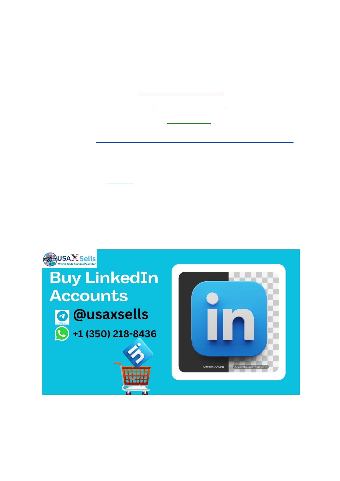 https://usaxsells.com/product/buy-linkedin-accounts/ If you want more information just contact me now. 24-hour Reply/Contact Email:usaxsells@gmail.com WhatsApp: +1 (350) 218-8436 Telegram:@usaxsells Our Website:https://usaxsells.com/product/buy-linkedin-accounts/ In the modern digital economy, LinkedIn is more than a networking platform—it is a gateway to professional influence, industry recognition, and business growth. For entrepreneurs, marketers, and ambitious professionals, acquiring verified LinkedIn accounts has become a strategic advantage. At usaxsells, we provide fully verified LinkedIn accounts that are ready for immediate use, giving you a head start in building credibility and influence. LinkedIn accounts with established activity history and strong profiles are highly valuable. They allow users to instantly engage with networks, publish content, and gain visibility. Industry experts on platforms like Medium and Quora highlight the importance of an established LinkedIn presence for business success, while discussions on Bal Investor and Lip emphasize the advantages of accounts with trusted histories. What Are Verified LinkedIn Accounts? https://api.whatsapp.com/send?phone=13502188436 http://t.me/usaxsells https://usaxsells.com/product/buy-linkedin-accounts/ https://usaxsells.com Verified LinkedIn accounts are profiles that have been fully authenticated and have a proven activity record. These accounts are recognized by LinkedIn as legitimate, reducing the chances of suspension and increasing trustworthiness in professional circles. Benefits of verified LinkedIn accounts include: ● Enhanced Professional Credibility: Older, verified accounts are seen as more authentic by peers, recruiters, and business partners. ● Seamless Networking: A verified account allows you to connect with industry leaders, potential clients, and influencers without restrictions. ● Content Authority: Posts and articles published from a verified account are more likely to reach wider audiences. For additional insights, readers often consult Wikipedia or blogs like Bikriya to understand the significance of account verification and its impact on professional visibility. If you want more information just contact me now. 24-hour Reply/Contact Email:usaxsells@gmail.com WhatsApp: +1 (350) 218-8436 Telegram:@usaxsells Our Website:https://usaxsells.com/product/buy-linkedin-accounts/ Why Buying LinkedIn Accounts is a Smart Move For many professionals and businesses, starting from scratch can be time-consuming and limiting. Purchasing verified LinkedIn accounts offers several strategic advantages: 1. Immediate Authority: Step into the professional world with accounts that already have activity history and connections. 2. Enhanced Marketing Opportunities: Use accounts to engage in targeted outreach, B2B marketing, and industry-specific campaigns. 3. Boost Trust and Visibility: Verified accounts signal authenticity, making it easier to establish connections and credibility. 4. Streamlined Recruitment: Companies can use verified accounts to engage candidates and explore talent networks efficiently. https://usaxsells.com/product/buy-linkedin-accounts/ https://api.whatsapp.com/send?phone=13502188436 http://t.me/usaxsells https://usaxsells.com/product/buy-linkedin-accounts/ Discussions on Medium, Quora, and Lip emphasize how verified LinkedIn accounts amplify networking, branding, and business impact in competitive industries. How to Buy LinkedIn Accounts Safely While acquiring LinkedIn accounts is highly beneficial, safety and authenticity are paramount. Follow these expert tips: ● Purchase from Trusted Sources: Choose reliable providers like usaxsells for verified accounts. ● Verify Account History: Ensure the account has legitimate activity and an established professional network. ● Secure Credentials Immediately: Change passwords, link recovery emails, and enable two-factor authentication. ● Check Seller Reviews: Look for testimonials and customer feedback to avoid compromised accounts. Resources like Quora and Medium provide detailed guidance on securing purchased accounts and maintaining professional credibility. If you want more information just contact me now. 24-hour Reply/Contact Email:usaxsells@gmail.com WhatsApp: +1 (350) 218-8436 Telegram:@usaxsells Our Website:https://usaxsells.com/product/buy-linkedin-accounts/ Choosing the Right LinkedIn Account Not all LinkedIn accounts are equal. Selecting the right account depends on your goals: ● Entrepreneurs & Startups: Accounts with established networks can accelerate partnerships and collaborations. ● Marketing Professionals: Older, verified accounts enhance content reach and campaign efficiency. https://usaxsells.com/product/buy-linkedin-accounts/ https://usaxsells.com https://api.whatsapp.com/send?phone=13502188436 http://t.me/usaxsells https://usaxsells.com/product/buy-linkedin-accounts/ ● Recruiters & HR Managers: Accounts with credibility facilitate talent sourcing and professional outreach. Providers such as usaxsells ensure each account meets high standards of verification, trustworthiness, and usability. Platforms like Bal Investor and Bikriya emphasize the importance of account history and activity for professional leverage. If you want more information just contact me now. 24-hour Reply/Contact Email:usaxsells@gmail.com WhatsApp: +1 (350) 218-8436 Telegram:@usaxsells Our Website:https://usaxsells.com/product/buy-linkedin-accounts/ Risks and How to Avoid Them Despite the benefits, buying LinkedIn accounts carries potential risks if done improperly: ● Account Suspension: LinkedIn may flag accounts with unusual activity or unverified credentials. ● Security Concerns: Accounts from unreliable sources may be compromised or hacked. ● Brand Reputation Risks: Using an untrustworthy account can damage professional credibility. To mitigate these risks: ● Always purchase from reputable sellers like usaxsells. ● Change all passwords 