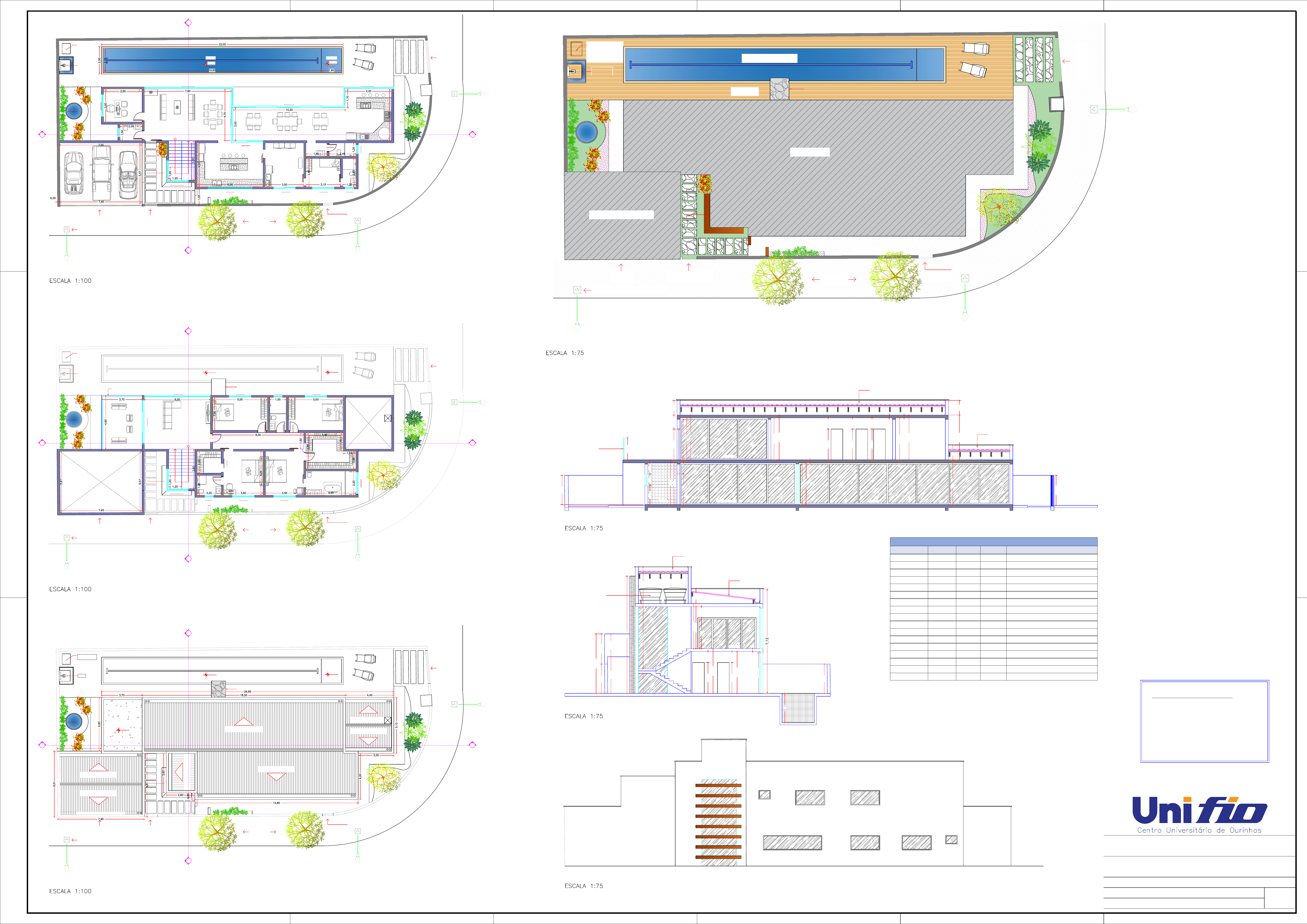 ESCRITORIO A=10,50m² LAVABO A=3,00m² HALL A=5,64m² SALA DE ESTAR/JANTAR A=31,49m² ESCADA A=8,64m² CHURRASQUEIRA A=19,74m² COZINHA A=24,00m² LAVANDERIA A=13,93m² VARANDA A=30,00m² GARAGEM A=42,05m² PISCINA -2,00m PRAINHA -0,30m ESTENDAL CASA DE MAQUINA ENTERRADA DUCHA C AL Ç AD A C AL Ç AD A C AL Ç AD A BHO. VAR. A=5,46m² BHO. DEP. A=3,13m² DEPENDENCIA A=8,18m² LIXERA DE MURO 01 02 03 04 05 06 07 08 09 10 11 12 13 14 15 16 17 18 SOBE PLANTA BAIXA - TÉRREO A A B B PAM80 PAM80 PCM100 JB V8 0 JC V2 00 MFV810x170 PCV290 PC V3 00 PCV1000 MFV460x170 JCV400 PCV200 JCV200 JBV80 PC M 80 PC M 70 PC M 70 PAM70 MFV200x200 JB V8 0 DETALHE EM MADEIRA ENTRADA VEICULAR ENTRADA PEDESTRE (SOCIAL) ENTRADA PEDESTRE (SERVIÇO) EN TR AD A SO C IA L (A R ÉA D E LA ZE R ) fonte VEGETAÇÃO EXISTENTE POSTE DE ILUMINAÇÃO EXISTENTE RUA DR SALIM FARIZ FREUA AV EN ID A H O R ÁC IO S O AR ES ESCADA A=8,64m² PISCINA -2,00m PRAINHA -0,30m ESTENDAL CASA DE MAQUINA ENTERRADA DUCHA C AL Ç AD A C AL Ç AD A C AL Ç AD A QUARTO 1 A=15,00m² QUARTO 2 A=15,00m² CLOSET 1 A=9,10m² SUÍTE 1 A=10,02m² SUITE 1 A=14,00m²SUITE 2 A=14,40m² CLOSET 2 A=4,40m² TERRAÇO A=18,13m² SALA DE TV A=29,61m² BHO. A=4,50m² CIRCULAÇÃO A=12,45m² SUÍTE 2 A=3,96m² CLOSET 1 A=13,06m² LIXERA DE MURO 01 02 03 04 05 06 07 08 09 10 11 12 13 14 15 16 17 18 DESCEA A B B CASCATA DE PISCINA JBV80 JCV200JCV200 JCV200 JC V2 00 MFV200x200 JCV200 JCV200JBV800MFV600 PC V4 00 PA M 80 PA M 80 PA M 80 PAM80 PCM80 PCM80 PAM80 PAM80 JC M 80 JC M 80 guarda corpo de vidro chaminé ENTRADA VEICULAR ENTRADA PEDESTRE (SOCIAL) ENTRADA PEDESTRE (SERVIÇO) EN TR AD A SO C IA L (A R ÉA D E LA ZE R ) VEGETAÇÃO EXISTENTE POSTE DE ILUMINAÇÃO EXISTENTE fonte DETALHE EM MADEIRA RUA DR SALIM FARIZ FREUA AV EN ID A H O R ÁC IO S O AR ES PISCINA -2,00m PRAINHA -0,30m ESTENDAL CASA DE MAQUINA ENTERRADA DUCHA C AL Ç AD A C AL Ç AD A C AL Ç AD A LIXERA DE MURO COBERTURA: ESTR. METÁLICA C/ TELHA SANDUICHE INCL. 12% COBERTURA: ESTR. METÁLICA C/ TELHA SANDUICHE INCL. 12% CALHA METÁLICA DE AÇO GALVANIZADO CALHA METÁLICA DE AÇO GALVANIZADO COBERTURA: ESTR. METÁLICA C/ TELHA SANDUICHE INCL. 12% COBERTURA: ESTR. METÁLICA C/ TELHA SANDUICHE INCL. 12% i= 12 % TE LH A TE R M O AC Ú ST IC A TP R -2 5 CALHA METÁLICA DE AÇO GALVANIZADO CALHA METÁLICA DE AÇO GALVANIZADO COBERTURA: ESTR. METÁLICA C/ TELHA SANDUICHE INCL. 12% COBERTURA: ESTR. METÁLICA C/ TELHA SANDUICHE INCL. 12% CALHA MET. DE AÇO GALV. CALHA MET. DE AÇO GALV. C AL H A M ET . D E AÇ O G AL V. LAJE IMPERMEABILIZADA A.= 16,45m² +3,06 EN TR AD A D E SE R VI Ç O A A B B ENTRADA VEICULAR ENTRADA PEDESTRE (SOCIAL) ENTRADA PEDESTRE (SERVIÇO) EN TR AD A SO C IA L (A R ÉA D E LA ZE R ) VEGETAÇÃO EXISTENTE POSTE DE ILUMINAÇÃO EXISTENTE fonte DETALHE EM MADEIRA RUA DR SALIM FARIZ FREUA AV EN ID A H O R ÁC IO S O AR ES CASCATA DE PISCINA PISCINA/PRAINHA ESTENDAL CASA DE MAQUINA ENTERRADA DUCHA C AL Ç AD A C AL Ç AD A C AL Ç AD A LIXERA DE MURO EDIFICAÇÃO GARAGEM COBERTA DEQUE ENTRADA VEICULAR ENTRADA PEDESTRE (SOCIAL) ENTRADA PEDESTRE (SERVIÇO) EN TR AD A SO C IA L (A R ÉA D E LA ZE R ) VEGETAÇÃO EXISTENTE POSTE DE ILUMINAÇÃO EXISTENTE fonte JARDIM JARDIM DETALHE EM MADEIRA RUA DR SALIM FARIZ FREUA AV EN ID A H O R ÁC IO S O AR ES CASCATA DE PISCINA CHURRASQUEIRAVARANDASALA DE ESTAR/JANTARLAVABO 1, 3 0, 8 0, 76 2, 86 SALA DE TVTERRAÇO CIRCULAÇÃO CLOSET 1 2, 76 2, 86 3, 06 3, 06 2, 1 0, 76 2, 76 2, 86 0, 2 2, 052 CALÇADA JARDIM ÁREA DA PISCINA CALÇADA JARDIM 2, 86 2, 86 2, 1 0, 76 2, 1 0, 76 2, 1 0, 76 0, 2 3, 06 1, 5 2, 1 0, 96 1 2, 86 0, 2 3, 06 1 1 3, 06 COBERT. ESTR. METÁLICA C/ TELHA SANDUICHE INCL. 12% COBERT. ESTR. METÁLICA C/ TELHA SANDUICHE INCL. 12% guarda corpo de vidro 01 02 03 04 05 06 07 08 09 10 11 12 13 14 15 16 17 18 2, 1 0, 76 2, 863, 06 2, 1 0, 76 3, 06 2, 1 0, 76 2, 86 2, 76 2 2 0, 2 SALA DE ESTAR/JANTAR SALA DE TV 4, 22 1, 36 2 4, 06 2, 5 2, 06 1, 56 2, 5 1 ÁREA DA PISCINA 8 5, 92 COBERT. ESTR. METÁLICA C/ TELHA SANDUICHE INCL. 12% COBERT. ESTR. METÁLICA C/ TELHA SANDUICHE INCL. 12% CAIXA D´ÁGUA QUADRO DE ÁREAS TERRENO............................................ 501,70 m² TÉRREO...............................................187,92 m² 1º PAVIMENTO.....................................177,28 m² GARAGEM............................................ 47,46 m² PISCINA................................................ 55,00 m² TOTAL À CONSTRUIR.........................467,66 m² PLANTA BAIXA DO TÉRREO - PROJETO RESIDENCIAL PLANTA BAIXA DO1º PAVIMENTO - PROJETO RESIDENCIAL PLANTA BAIXA DA COBERTURA - PROJETO RESIDENCIAL PLANTA BAIXA DA IMPLANTAÇÃO - PROJETO RESIDENCIAL CORTE AA - PROJETO RESIDENCIAL CORTE BB - PROJETO RESIDENCIAL ESTUDO PRELIMINAR - PLANTA BAIXA e CORTES MATÉRIA/PROFESSOR(a): 2022/02-2T-Oficina de Projeto AU 02: Habitação de alta complexidade Arqtª. Me. Augusto Yuji PROJETO: PROJETO ARQUITETÔNICO PROJETO RESIDENCIAL DE 2 PAVIMENTOS DESENHO: PROJETISTA: Marinalva Silva - Neuza Azevedo - Pietra Francine DATA DE ENTREGA: 21/11/2022 INDICADAS ESCALA: FOLHA: ÚNICA QUADRO DE ESQUADRIAS CODIGO LARG. (m) ALT. (m) PEIT. (m) DESCRIÇÃO PCM70 0,70 2,10 - Porta de correr de madeira PCM80 0,80 2,10 - Porta de correr de madeira PCM100 1,00 2,10 - Porta de correr de madeira PAM70 0,70 2,10 - Porta de abrir de madeira PAM80 0,80 2,10 - Porta de abrir de madeira PCV200 2,00 2,10 - Porta de correr de vidro - 2 folhas PCV290 2,90 2,10 - Porta de correr de vidro - 2 folhas PCV300 3,00 2,10 - Porta de correr de vidro - 2 folhas PCV400 4,00 2,10 - Porta de correr de vidro - 4 folhas PCV1000 10,00 2,86 - Porta de correr de vidro - 5 folhas MFV200x200 4,00 5,92 - Montante fixo de vidro MFV600 6,00 2,86 - Montante fixo de vidro MFV460x170 6,30 2,86 - Montante fixo de vidro MFV810x170 9,80 2,86 - Montante fixo de vidro JBV80 0,80 0,60 1,50 Janela basculante de vidro JCV200 2,00 1,00 1,10 Janela de correr de vidro - 2 folhas JCV400 4,00
