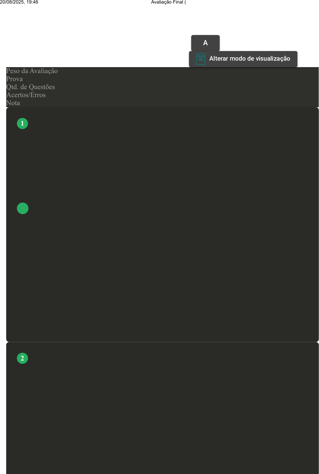 Prova Impressa GABARITO | Avaliação Final (Objetiva) - Individual (Cod.:1527462) Peso da Avaliação 4,00 Prova 102288290 Qtd. de Questões 10 Acertos/Erros 6/4 Nota 6,00 A equação de 1º grau é aquela que possui incógnita com grau 1. Equações são sentenças matemáticas abertas expressas por uma igualdade. Resolvendo a equação 2y + 21 - y = 24, qual a solução encontrada? A y = 3 B y = 6 C y = 8 D y = 10 O método de integração numérica não substitui o método de resolução normal, apenas o complementa. Nesse sentido, quando se usa a integração numérica? A Quando a integral não tem intervalos. VOLTAR A Alterar modo de visualização 1 2 20/08/2025, 19:46 Avaliação Final (Objetiva) - Individual about:blank 1/9 B Quando a função é definida por meio de uma tabela de pontos. C Quando a função for descontínua. D Quando a derivada for uma constante. A fórmula Taylor é um recurso matemático usado para aproximar localmente uma função por um polinômio. Como os polinômios são funções bem- comportadas e com muitas propriedades o erro ocorrido na aproximação é muitas superado com todos os benefícios que temos ao trabalhar com polinômios. Por isso é muito comum usarmos o polinômio de Taylor para resolvermos equações diferenciais e outros problemas numéricos. Um dos Métodos que usam fórmula de Taylor é o método de Runge-Kutta para EDO. 3 20/08/2025, 19:46 Avaliação Final (Objetiva) - Individual about:blank 2/9 Sobre a solução numérica (usando o método de Runge-Kutta) para o problema de valor inicial a seguir, analise as opções e assinale a alternativa CORRETA: A Somente a opção I está correta. B Somente a opção II está correta. C Somente a opção IV está correta. D Somente a opção III está correta. Formulário - Cálculo Numérico - Unidade 3 - JaquelineClique para baixar o anexo da questão A equação de 1º grau é aquela que possui incógnita com grau 1. Equações são sentenças matemáticas abertas expressas por uma igualdade. Revisar Conteúdo do Livro 4 20/08/2025, 19:46 Avaliação Final (Objetiva) - Individual about:blank 3/9 Resolvendo a equação 3y + 18 - y = 18, qual a solução encontrada? A y = 8 B y = 10 C y = 6 D y = 0 Considere o polinômio p(x) = x3 – 2x2 – 5x + 6. O que podemos afirmar acerca de suas raízes? Assinale a alternativa CORRETA: A Não tem raiz real. B Tem uma raiz real e duas imaginárias. C Tem três raízes reais. D Tem duas raízes reais e uma imaginária. A integração numérica é um método alternativo de integração que consiste em substituir uma função complicada f(x) por outra mais simples e fácil de se 5 6 20/08/2025, 19:46 Avaliação Final (Objetiva) - Individual about:blank 4/9 integrar. São muitos os métodos que podem ser usados para fazer a integração numérica. Usando a Regra do Trapézio generalizada, calcule a integral a seguir com n = 5. Lembre-se de usar o arredondamento de duas casas decimais: A O valor da integral é1,48. B O valor da integral é 2,72. C O valor da integral é 1,86. D O valor da integral é 1,00. Quando conhecemos os valores de uma função f aplicada em dois pontos distintos, podemos aproximá-la por um polinômio de grau 1 que coincida com f exatamente nestes dois pontos. A este processo chamamos interpolação linear. Neste contexto, considerando a função f(x) = a0 + a1 x, definida pelos pontos (2, -1) e (4, -3), qual o valor de f(-2)? 7 20/08/2025, 19:46 Avaliação Final (Objetiva) - Individual about:blank 5/9 A f(-2) = -3 B f(-2) =3 C f(-2) = 0 D f(-2) = -2 E f(-2) = 2 Usando a segunda lei do movimento de Newton, podemos determinar a velocidade de uma partícula de massa m (m é constante) que foi projetada verticalmente através da equação diferencial y' = - g - ky, onde y = y(t) é a velocidade da partícula que depende do tempo t, g é a gravidade (constante) e k é uma constante que depende da resistência do ar, vamos assumir que k = 1. Revisar Conteúdo do Livro 8 20/08/2025, 19:46 Avaliação Final (Objetiva) - Individual about:blank 6/9 Usando o Método de Euler, podemos encontrar a solução numérica do PVI: A A solução é - 9,8. B A solução é 9,272. C A solução é 2,406. D A solução é 0,2. Quando se torna inviável resolver uma equação diferencial ordinária, lançamos mão dos métodos numéricos para encontrar uma aproximação f a esta solução y. O método de Euler é um destes métodos numéricos. Revisar Conteúdo do Livro 9 20/08/2025, 19:46 Avaliação Final (Objetiva) - Individual about:blank 7/9 Neste contexto, considere a EDO dada por y' = - y + x definida no intervalo [0; 1,2] tal que y(0) = 1,5. Tomando h = 0,3, a equação de iteração é: A Somente a opção III está correta. B Somente a opção IV está correta. C Somente a opção II está correta. D Somente a opção I está correta. A equação de 1º grau é aquela que possui incógnita com grau 1. Equações são sentenças matemáticas abertas expressas por uma igualdade. Resolvendo a equação 2y + 16- y = 34, qual a solução encontrada? Revisar Conteúdo do Livro 10 20/08/2025, 19:46 Avaliação Final (Objetiva) - Individual about:blank 8/9 A y = 16 B y = 10 C y = 28 D y = 18 Imprimir 20/08/2025, 19:46 Avaliação Final (Objetiva) - Individual about:blank 9/9