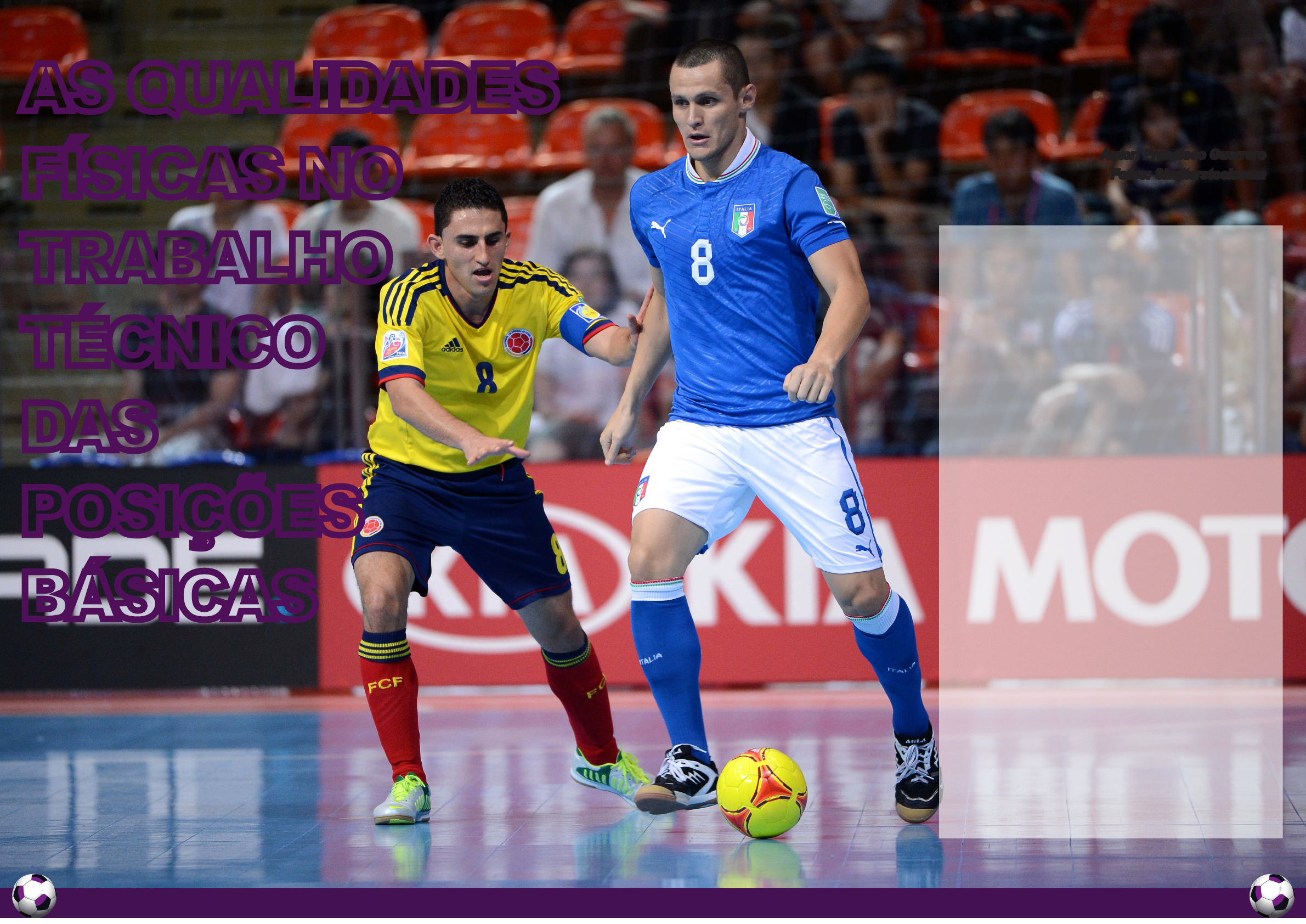 Edição nº76 Edição nº76Futsal Futsal© Artigo publicado em www.futbol-tactico.com 226 227 AS QUALIDADES Cada dia se caminha mais para o treinamento integrado, é dizer treinar de uma maneira global as qualidades técnicas, táticas e a preparação física; e em cada elemento por separado como se propunha nos métodos de treinamento mais tradicionais. Continuando em linha com os artigos anteriores, vou seguir aprofundando em como iniciar aos meninos/as no trabalho das qualidades físicas (resistência, força, flexibilidade e velocidade), mas tudo isso sem esquecer o trabalho dos aspectos técnicos ou táticos do futsal. Esta proposta é válida sobre tudo para o treinamento de equipes em categoria benjamim e alevim. Nestas categorias não é o mais recomendável trabalhar as qualidades físicas de uma maneira específica, mas isso não significa que devamos obviar seu trabalho. Por isso eu proponho trabalhá-lo de uma maneira lúdica ao mesmo tempo em que se trabalham os aspectos técnicos e táticos. Este artigo mais concretamente vai girar sobre a iniciação ao trabalho das qualidades físicas de uma maneira integrada com o gesto técnico das posições básicas. Autor: Francisco Guerrero Fotos: Shutterstock.comFÍSICAS NO TRABALHO TÉCNICO DAS POSIÇÕES BÁSICAS Edição nº76 Edição nº76Futsal Futsal© Artigo publicado em www.futbol-tactico.com 228 229 POSIÇÕES BÁSICAS As posições básicas se utilizam quando o jogador/a vai intervir no jogo adotando uma posição prévia que é necessária para desenvolver um gesto técnico posteriormente. Nas posições básicas temos que ter em conta uma série de princípios fundamentais. Adotar-se-ão as posições de base antes de um deslocamento e depois de um deslocamento. Têm que ser umas posições equilibradas e naturais que facilitem posteriores intervenções. A tensão deve ser mínima favorecendo a velocidade de reação. O jogador/a tem que manter a concentração no jogo de uma forma continua permitindo que as execuções técnicas posteriores sejam eficazes. É necessário adotar as posições básicas porque desta maneira o jogador/a obterá mais possibilidades de êxito em gestos técnicos posteriores. Está claro que com isso os movimentos são mais rápidos e o jogador/a tem uma melhor preparação mental. É muito importante que quando adotemos uma posição básica mantenhamos uma posição equilibrada e uma boa visão periférica. A posição equilibrada a conseguiremos com uma boa base de sustentação e um centro de gravidade baixo. Com uma boa visão periférica conseguiremos manter em todo momento a visão do conjunto do jogo. Outro aspecto que não podemos esquecer é a voz. É necessário que os jogadores/as se falem entre si sobre tudo em aspectos defensivos, é dizer, que esteja em continua comunicação. Uma equipe fala na quadra é muito difícil de superar. Tanto o equilíbrio, como a visão periférica e a voz é muito importante tê-las em jogo saindo em qualquer direção e no menor tempo possível. Minha proposta é a seguinte: NOME: “O atacante cego” IDADE: 8 anos em adiante. AGRUPAÇÃO: Sextetos. MATERIAL: 2 lenços e 8 cones. OBJETIVOS: Trabalhar as qualidades físicas na iniciação ao futsal. CONTEÚDOS: Qualidades físicas e posições básicas. DESENVOLVIMENTO: Um jogador/a, situado em um espaço delimitado por cones de 10x5 na quadra de futsal e com os olhos tampados tratará de tocar a seus companheiros/as que só poderão fugir dele deslocando-se com a posição defensiva do futsal. O jogador/a que seja tocado instantaneamente realizará um sprint de 20 metros e passará a ficar com ela. A posição defensiva tem que fazer-se corretamente senão mudança de rol. VARIANTES: Reduzir o espaço, aumentar o número de cegos… Edição nº76 Edição nº76Futsal Futsal© Artigo publicado em www.futbol-tactico.com 230 231 NOME: “Defensores e atacantes” IDADE: 8 anos em adiante. AGRUPAÇÃO: Grande grupo. MATERIAL: 8 bolas de futsal. OBJETIVOS: Trabalhar as qualidades físicas na iniciação ao futsal. CONTEÚDOS: Qualidades físicas e posições básicas. DESENVOLVIMENTO: Se divide a equipe em dois grupos, “defensores” e “atacantes”. Os defensores se deslocarão com a posição básica defensiva e os atacantes conduzindo uma bola. Os defensores terão que pegar aos atacantes no menor tempo possível, levando-os a um lugar indicado previamente. Posteriormente mudança de rol. Ganhará o grupo que consiga pegar em menos tempo a todos os adversários. A posição defensiva de fazer-se corretamente. VARIANTES: Reduzir o espaço… NOME: “Defensor veloz” IDADE: 8 anos em adiante. AGRUPAÇÃO: Septetos. MATERIAL: Nenhum. OBJETIVOS: Trabalhar as qualidades físicas na iniciação aofutsal. CONTEÚDOS: Qualidades físicas e posições básicas. DESENVOLVIMENTO: Os jogadores/ as formam um círculo agarrando-se das mãos. Um jogador/a fica com a bola e terá que pegar a um dos componentes do circulo (designado por ele) no menor tempo possível, os quais tratam de iludi- lo sem romper o circulo. O jogador/a que fica com a bola se deslocará realizando a posição básica defensiva. Todos os jogadores/as terão que passar por esse rol. Ganhará o jogador/a que menos demore em pegar a um de seus companheiros/as. A posição defensiva tem que fazer-se corretamente. VARIANTES: Reduzir o espaço, aumentar o número de defensores… NOME: “Todos contra um” IDADE: 8 anos em adiante. AGRUPAÇÃO: Grande grupo.. MATERIAL: 16 bolas de futsal. OBJETIVOS: Trabalhar as qualidades físicas na iniciação aofutsal. CONTEÚDOS: Qualidades físicas e posições básicas. DESENVOLVIMENTO: O treinador/a diz o nome de um jogador/a e este deve perseguir aos outros até roubar uma bola a um de seus companheiros/as. Todos os jogadores/as vão com bola menos o que é nomeado que deixará a bola no lugar. Quando consiga roubar a bola, o treinador dirá rapidamente outro nome. Ganhará o jogador/a que 