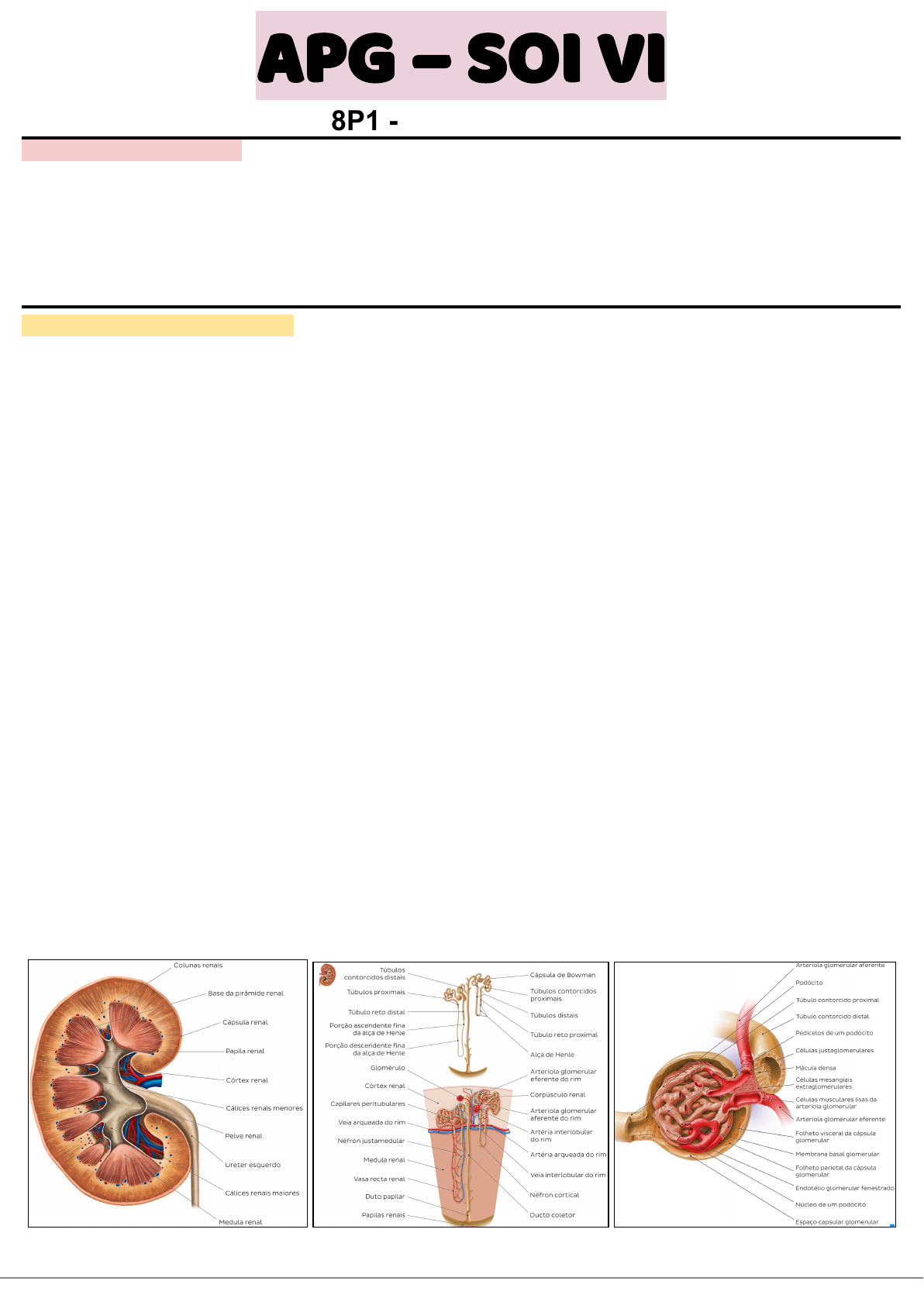 APG – SOI VI S8P1 - NEFROLITÍASE OBJETIVOS DE ESTUDO - REVER A MORFOFISIOLOGIA DOS RINS; - ENTENDER A EPIDEMIOLOGIA, ETIOLOGIA, FISIOPATOLOGIA, FATORES DE RISCO, MANIFESTAÇÕES CLÍNICAS, DIAGNÓSTICO E TRATAMENTO DA NEFROLITÍASE. - DIFERENCIAR OS TIPOS DE CÁLCULOS RENAIS , MORFOFISIOLOGIA DOS RINS RINS Os rins têm um formato de grão de feijão, apresentando uma borda convexa e outra côncava, na qual se situa o hilo, onde entram e saem os vasos sanguíneos, entram nervos e saem os ureteres. Estão situados retroperitonealmente na parede abdominal posterior, sendo o rim direito localizado 1 a 2 cm abaixo do esquerdo. Ele é revestido por uma delgada cápsula frouxamente aderida, formada principalmente por tecido conjuntivo denso. O parênquima renal é formado pelo córtex, externamente, e pela medula renal, internamente. A medula é formada pelas pirâmides renais, que são separadas umas das outras por projeções do córtex renal (colunas renais) e se projetam em direção à pelve renal. Cada pirâmide renal, juntamente com o córtex renal que a envolve, constitui um lobo renal. Os lobos renais podem ser subdivididos em lóbulos. Cada lóbulo é formado por um grupo de néfrons que desembocam em um único ducto coletor. O néfron é a unidade funcional do rim, formado pelo corpúsculo renal (glomérulo e cápsula de Bowman), túbulo contorcido proximal, alça de Henle (ramo descendente, ramos ascendentes fino e espesso), túbulo contorcido distal e ducto coletor. Existem cerca de um milhão de néfrons em cada rim. O sangue entra no corpúsculo renal através da arteríola aferente, que se ramifica formando uma rede capilar chamada de glomérulo. A cápsula glomerular, também chamada de cápsula de Bowman, envolve o glomérulo. O sangue é filtrado pelo glomérulo, passa para o interior da cápsula de Bowman e segue, então, para as estruturas tubulares dos rins, onde ocorre reabsorção de água e eletrólitos para formar o produto final da filtragem renal: a urina. HELLEN CAROLINE - MED T35 - SÃO LUCAS - PORTO VELHO-RO - 2024/1 NEFROLITÍASE DEFINIÇÃO Nefrolitíase, também conhecida como cálculo renal ou pedra nos rins, é uma condição médica caracterizada pela formação de pequenos depósitos sólidos (pedras) nos rins ou no trato urinário. Essas pedras são compostas principalmente de sais minerais e podem variar em tamanho, desde pequenos cristais até pedras maiores. COMO OS CÁLCULOS SÃO FORMADOS? As pedras nos rins são formadas quando a urina apresenta quantidades maiores que o normal de determinadas substâncias, como cálcio, oxalato e ácido úrico ou que têm uma diminuição na quantidade de alguns fatores que impediriam a aglomeração desses cristais, como, por exemplo, o citrato. Essas substâncias podem se precipitar e formar pequenos cristais que, depois, vão se aglutinar e se transformarão em pedras. Alguns fatores são considerados de risco, pois contribuem para o surgimento do cálculo renal. Nós temos substâncias conhecidos como inibidores da formação de cálculo, isso explica o motivo de apenas algumas pessoas desenvolverem cálculo renal. Dentre os diversos inibidores, citrato, magnésio e pirofosfato são responsáveis por 20% da atividade inibitória. ● Citrato atua como inibidor de cálculos de oxalato de cálcio e de fosfato de cálcio por meio da redução de cálcio iônico disponível, reduzindo sua precipitação, sua agregação e seu crescimento ● Magnésio diminui a concentração de oxalato iônico e eleva o ponto de saturação do oxalato de cálcio. ● Pirofosfato altera a saturação do fosfato de cálcio, diminuindo sua cristalização. ● Glicoproteínas também são descritas como inibidoras, em particular nefrocalcina e proteína de Tamm-Horsfall, sintetizadas nos túbulos renais e diminuem a agregação de cristais de oxalato de cálcio monoidratado. Por conseguinte, podemos reconhecer que a concentração aumentada de constituintes dos cálculos, as mudanças do pH urinário, a diminuição do volume de urina e a presença de bactérias influenciam a formação de cálculos. HELLEN CAROLINE - MED T35 - SÃO LUCAS - PORTO VELHO-RO - 2024/1 TIPOS DE CÁLCULOS Existem quatro tipos principais de cálculos: (1) Cálculos de cálcio; (2) Cálculos de estruvita; (3) Cálculos de ácido úrico; (4) Cálculos de cistina. - Cálculos de Cálcio: Os cálculos formados por deposição de cálcio são os mais comuns, correspondendo a 70 a 80% dos casos. Na maioria das vezes, compõem-se de oxalato de cálcio e, eventualmente, podem ser de fosfato de cálcio. Esses cálculos são formados quando há urina alcalina, que aumenta a supersaturação do fosfato, podendo ser encontrados na acidose tubular renal distal ou no hiperparatireoidismo primário. Em geral, os cálculos de cálcio são arredondados, radiodensos e não costumam apresentar aspecto coraliforme. - Cálculos de ácido úrico: constituem aproximadamente 10 a 15% dos casos. Podem ser puros ou abrigar quantidades variáveis de cálcio. Caracteristicamente, são radiotransparentes, não visíveis, portanto, à radiografia simples de rins, ureter e bexiga (RUB), e aparecem na urografia excretora como falhas de enchimento. HELLEN CAROLINE - MED T35 - SÃO LUCAS - PORTO VELHO-RO - 2024/1 - Os cálculos de estruvita: são formados por fosfato amoníaco magnésio e representam aproximadamente 5 a 10% dos cálculos. Pouco radiodensos, são grandes e caracteristicamente coraliformes. - Cálculos de cistina: pouco radiopacos e com aspecto de vidro moído (ground-glass) à RUB – constituem aproximadamente 1% do total. MANIFESTAÇÕES CLÍNICAS A nefrolitíase pode ser totalmente assintomática, com diagnóstico acidental por meio de exames de imagens, ou causar apenas dor vaga, em flancos. Entretanto, a apresentação característica é de cólica nefrética. Em geral, inicia-se com dor localizada na região lombar, no flanco ou na fossa ilíaca, súbita, forte, geral