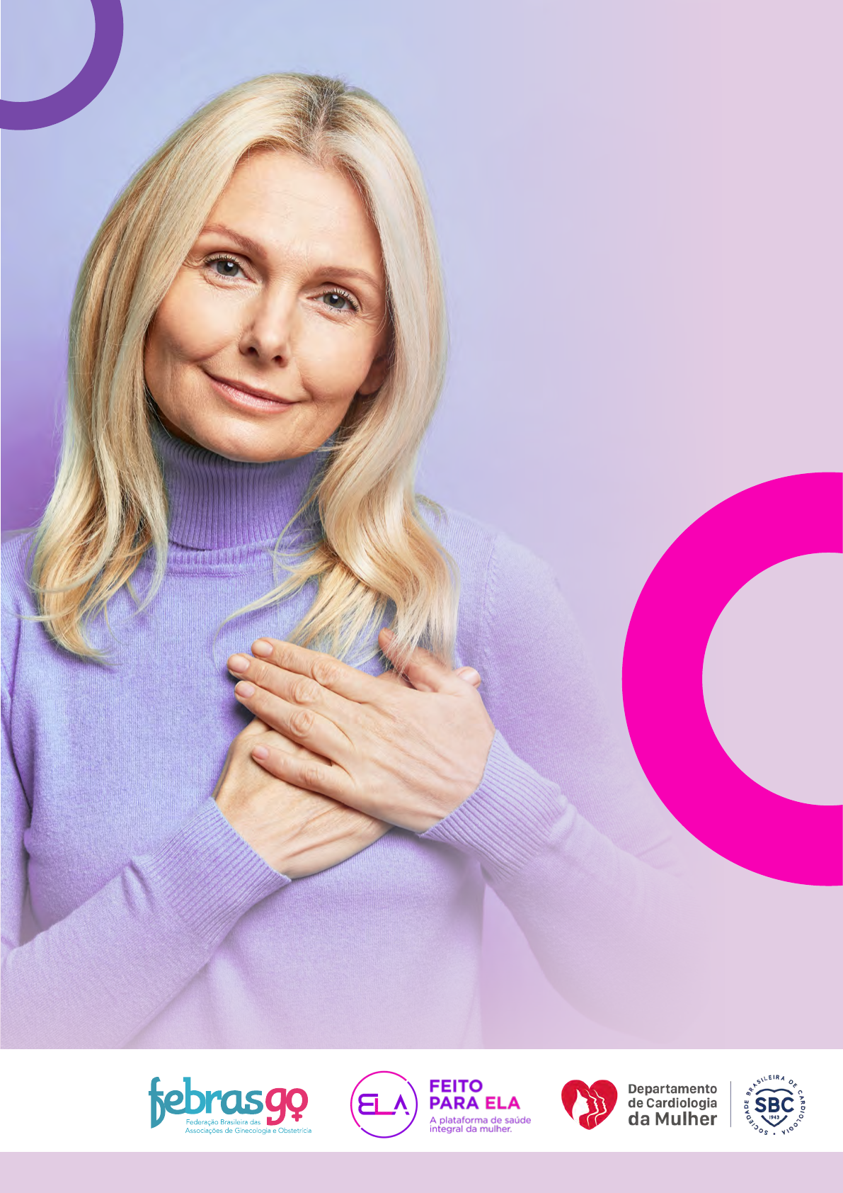 perguntas e respostas sobre menopausa que você sempre quis saber REALIZAÇÃO DIRETRIZ SOBRE A SAÚDE CARDIOVASCULAR NO CLIMATÉRIO E NA MENOPAUSA 20 Proteja seu coraçãoProteja seu coração Este conteúdo foi produzido pelo Departamento de Cardiologia da Mulher da Sociedade Brasileira de Cardiologia (DCM/SBC), Federação Brasileira das Associações de Ginecologia e Obstetrícia (Febrasgo) e Sociedade Interamericana de Cardiologia (SIAC), e contou com as seguintes autoras: Gláucia Maria Moraes de Oliveira, Maria Cristina Costa de Almeida, Larissa Neto Espíndola, Ariane Vieira Scarlatelli Macedo e Imara Correia de Queiroz Barbosa. Conteúdo para fins educativos. Não inicie, altere ou interrompa qualquer tratamento sem a orientação do seu médico. O Feito Para Ela é uma plataforma de relacionamento da Febrasgo (Federação Brasileira das Associações de Ginecologia e Obstetrícia), uma das mais respeitadas entidades médicas de saúde feminina do país. Com critérios editoriais bem definidos para fazer a diferença na vida da mulher, o Feito Para Ela aborda conteúdo de saúde feminina, bem-estar, maternidade, comportamento e empreendedorismo. Presidente da Febrasgo (2024-2027): Dra. Maria Celeste Osório Wender Cooordenadora do Feito Para Ela: Dra. Marta Finotti Jornalista do Feito Para Ela: Letícia Martins (MTb: 52306) Editora de Arte: Renata Cortez DIRETRIZ SOBRE A SAÚDE CARDIOVASCULAR NO CLIMATÉRIO E NA MENOPAUSA PROTEJA SEU CORAÇÃO Lançamento: dezembro de 2024 SUMÁRIO Introdução 1. Menopausa: os desafios são muitos ..................................................................................................................... 05 2. Consequências da menopausa na saúde da mulher ...................................................................................... 08 3. Sintomas da menopausa ............................................................................................................................................ 09 4. Estratificação do risco cardiovascular e doenças associadas com a menopausa .............................. 11 5. Terapia hormonal da menopausa ............................................................................................................................ 14 20 perguntas e respostas sobre menopausa e saúde do coração 1. Como posso ter certeza de que entrei na menopausa? ................................................................................. 18 2. A partir de que idade a mulher começa a sentir as mudanças que anunciam a menopausa? .... 18 3. Quais são os sintomas mais frequentes da menopausa? .............................................................................. 18 4. A menopausa pode ocasionar problemas no coração? ................................................................................. 19 5. Quais sinais de problemas no coração devo ficar de olho agora que estou na menopausa? ...... 19 6. Falta de vontade de fazer sexo é sinal de problema no coração? ............................................................. 19 7. O que devo perguntar para o meu médico sobre o risco de doenças do coração na menopausa? ................................................................................................................................................ 20 8. Quais exames preciso fazer agora que estou na menopausa? ................................................................... 20 9. O que acontece com meu coração quando o nível de estrogênio cai? ................................................ 20 10. Como saber se o que eu sinto é por causa da menopausa ou se tem relação com o coração? 20 11. Vou ter que tomar remédios para evitar problemas no coração por causa da menopausa? ........ 21 12. Mulheres que sentem calores na menopausa têm mais risco de sofrer problemas no coração? 21 13. É normal sentir o coração disparar ou ter dor no peito durante a menopausa? ................................ 21 14. O peso corporal, a pressão arterial, a taxa de açúcar no sangue e o colesterol podem alterar quando a mulher entra na menopausa? ..................................................................................................... 21 15. O estresse que eu sinto agora na menopausa pode prejudicar meu coração? ................................. 22 16. Fazer exercício realmente ajuda a proteger meu coração depois da menopausa? Qual funciona mais? ........................................................................................................................................................... 22 17. Usar hormônio na menopausa ajuda a proteger meu coração? ............................................................... 22 18. Tomar hormônios na menopausa pode aumentar o risco de coágulos no sangue, infarto ou derrame? ........................................................................................................................................................... 23 19. Usar anticoncepcional ou DIU antes da menopausa faz mal para o coração? .................................. 23 20. Fiz uma histerectomia jovem. Na época, eu ainda menstruava e agora não menstruo mais. Já entrei na menopausa? ................................................................................................................ 24 INTRODUÇÃO Até o ano de 2025, haverá mais de 1,1 bilhão de mulheres na pós-meno- pausa em todo o mundo (período a partir de quando a menstruação aca- ba), representando 12% de toda a população mundial. Em 2024, o Brasil tinha cerca de 30 milhões de mulheres na menopausa. Com o envelhecimento das pessoas, as mulheres poderão passar cerca de metade de suas vidas nessa fase. A menopausa é um momento marcante na vida da mulher, associada a sintomas incômodos, como ondas de calor, suores noturnos, problemas de sono e mudanças de humor, que comprometem a qualidade de vida. A menopausa também está associada a doenças c