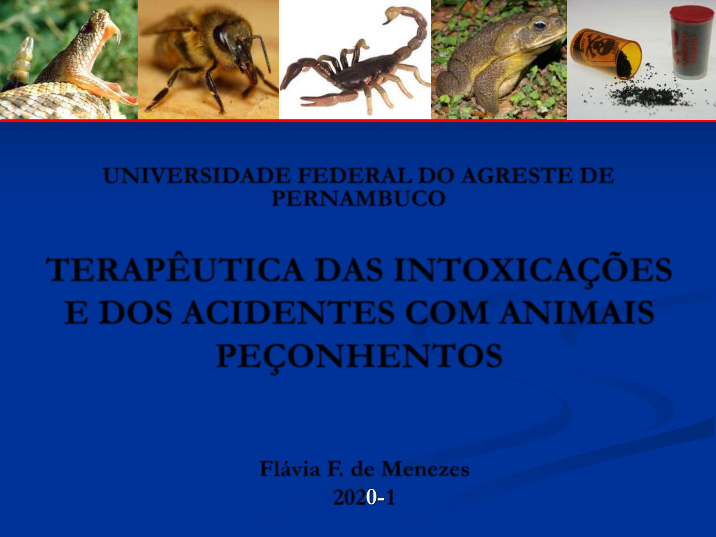 TERAPÊUTICA DAS INTOXICAÇÕES E DOS ACIDENTES COM ANIMAIS PEÇONHENTOS UNIVERSIDADE FEDERAL DO AGRESTE DE PERNAMBUCO Flávia F. de Menezes 2020-1 Google imagens Toxicologia Vem do grego, onde toxicon=veneno e logos=estudo. veneno ou tóxico é qualquer substância sólida, líquida ou gasosa, introduzida ou aplicada no corpo, que interfere na vida celular do organismo. Divisões da Intoxicação Fase de exposição Toxicocinética Toxicodinâmica Fase clínica Divisões da Intoxicação Fase de exposição Contato com o tóxico Vias de introdução, frequência de exposição, duração da exposição, dose e [ ] do tóxico, sensibilidade individual (raça, idade e espécie animal). Toxicocinética Absorção, distribuição, armazenamento (tecidos), biotransformação e/ou bioativação e excreção. Citocromo P450 (Ác. Glicurônico, Acetatos, Sulfatos e Glutationas) Divisões da Intoxicação Toxicodinâmica Mecanismo de ação do tóxico nem todos os agentes tóxicos possuem mecanismo de ação conhecido ou definido Fase clínica Fechar diagnóstico e estabelecer tratamento: sinais clínicos e sintomas apresentados Característica do agente tóxico ou peçonha TRATAMENTO DAS INTOXICAÇÕES Prevenção contra posterior absorção Tratamento sintomático de suporte Administração de antídotos específicos Prevenção para posterior absorção Tóxicos aplicados topicamente: • Lavagem exaustiva com água e sabão • Corte de pelos ou lã Tóxicos ingeridos (até 2 horas) • Induzir emese* • Lavagem gástrica (3 - 5 ml/Kg) • Xarope de Ipeca 2% (1-2ml/Kg) OBS: Não exceder 15 ml CARVÃO ATIVADO!!! Prevenção para posterior absorção Tóxicos ingeridos -Peróxido de hidrogênio a 3% (1-2ml/Kg) -Protetor de mucosa: Ranitidina (1-2mg/Kg)-cães (3,5mg/Kg)-gatos -Cloridrato de Xilazina: 0,44mg/Kg- Felinos Cuidado na indução de emese!!!! Prevenção para posterior absorção Tóxicos ingeridos -Preparo do carvão ativado: Sachet: 8g de carvão diluído em 40ml de água- até 20Kg (cães e gatos), 2 a 4x/dia Administração: oral ou através de sonda naso ou orogástrica Administrar catártico 30min após o carvão Eliminação de Tóxicos Absorvidos Fluidoterapia (Ringer) Diurese forçada (Furosemida, Manitol) Aferir o pH urinário: -Acidificação da urina (Cloreto de amônio, vitamina C) -Alcalinização da urina (Bicarbonato de Sódio, Ringer com Lactato) Tratamento sintomático de suporte Manutenção da respiração Tratamento do choque Correção das perdas hidroeletrolíticas Controle da disfunção cardíaca Controle da hipertermia ou hipotermia Controle da dor Administração de antídotos específicos Administrado especificamente em cada tipo de intoxicação Mecanismo de ação: • Complexo com o tóxico • Bloqueio ou competição pelos sítios receptores G o o gl e im ag en s INTOXICAÇÃO POR FORMAMIDINA Amitraz® CONDUTAS ESPECÍFICAS RELACIONADAS ÀS SUBSTÂNCIAS TÓXICAS INTOXICAÇÃO POR FORMAMIDINA (Amitraz®, Triatox®) • Sinais clínicos: sonolência, sedação, letargia, tremores musculares, perda dos reflexos, hipotermia, midríase, hiperglicemia • Mecanismo de ação: Inibe a liberação de insulina pelo pâncreas * Contraindicado em equinos (impactação e timpanismo) * Contraindicado em pacientes diabéticos CONDUTAS ESPECÍFICAS RELACIONADAS ÀS SUBSTÂNCIAS TÓXICAS INTOXICAÇÃO POR AMITRAZ®, TRIATOX® • Tratamento: Lavar o animal com água corrente abundante Fluidoterapia (NÃO administrar glicose) Acidificação da urina (Vit. C) Administrar antagonistas: Ioimbina Atipamezole (0,1 – 0,2mg/kg, IV, IM) Tolazolina (5mg/kg) Cão/gato: 0,4mg/kg Equino: 0,075-0,15mg/kg Bovino: 0,25mg/kg INTOXICAÇÃO POR CARBAMATOS E ORGANOFOSFORADOS INTOXICAÇÃO POR ORGANOFOSFORADOS E CARBAMATOS -Organofosforados: Triclorfon, Diclorvós, Coumafós -Carbamatos: Aldicarb (chumbinho), Carbaril • Sinais clínicos: A) Sinais muscarínicos: dispnéia, cianose, sudorese, sialorréia, lacrimejamento, náusea, vômito, incontinência urinária, bradicardia, fasciculações musculares, fraqueza, inquietação, hipermotilidade gastrointestinal (fezes gelatinosas). B) Sinais nicotínicos: 24 a 96h após intoxicação, inclui paralisia da musculatura da cabeça e pescoço, ansiedade, convulsão, insuficiência respiratória. c) Neuropatia tardia: 2 a 3 semanas ou até meses após exposição, caracteriza-se por debilidade muscular, incoordenação motora, tremores musculares (trem posterior progredindo para membros anteriores). INTOXICAÇÃO POR ORGANOFOSFORADOS E CARBAMATOS • Tratamento: -Medidas de descontaminação: indução de vômito ou lavagem gástrica, limpeza da pele com água corrente e uso de carvão ativado (diluído em água, soro fisiológico, via oral ou por sonda oro ou nasogástrica) -Medidas sintomáticas: bicarbonato de sódio (corrigir acidose), benzodiazepínico (diazepam) para as convulsões e câmara de oxigênio ou intubação orotraqueal. -Uso de “antídotos”: Sulfato de atropina (0,2 a 2 mg/Kg)- ¼ da dose I.V. e o restante por via S.C. INTOXICAÇÃO POR ORGANOFOSFORADOS E CARBAMATOS Intoxicação por carbamato -chumbinho- INTOXICAÇÃO POR ORGANOCLORADOS INTOXICAÇÃO POR ORGANOCLORADOS • DDT, DDD, BHC, Aldrin, Endossulfan (inseticidas e acaricidas) • Sinais clínicos: Gástricos: Náuseas, vômito, diarreia Neurológicos: excitabilidade, tremores musculares, convulsões. • Tratamento: -Medidas de descontaminação: cutânea e gástrica CONDUTAS ESPECÍFICAS... INTOXICAÇÃO POR ORGANOCLORADOS (cont.) • Tratamento: -Medidas sintomáticas: anticonvulsivantes -Medidas de suporte: fluidoterapia Google imagens INTOXICAÇÃO POR PIRETRINAS E PIRETRÓIDES PIRETRINAS e PIRETRÓIDES • Cipermetrina,Deltametrina, Permetrina, Aletrina, Tetrametrina (inseticidas e acaricidas) • Sintomas clínicos: Sialorréia, vômito, diarreia, dispnéia, urticária, hiperexcitabilidade ou depressão, espasmos abdominais, tremores musculares, convuls