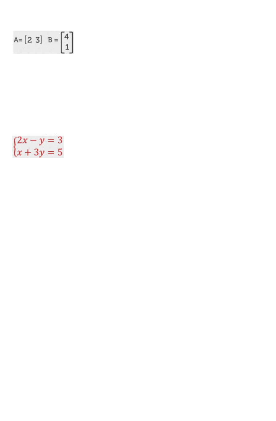 QUESTIONÁRIO II – GEOMETRIA ANALÍTICA • Considere a matriz linha a e a matriz coluna b dadas abaixo: O produto matricial ab é igual a: Resposta Marcada : [ 11 ]. PONTUAÇÃO TOTAL: 2PONTUAÇÃO OBTIDA 2 • Obtenha a solução do seguinte sistema de equações lineares do tipo 2 x 2: Resposta Marcada : x = 2 e y = 1. PONTUAÇÃO TOTAL: 2PONTUAÇÃO OBTIDA 2 • Se, e somente se, a única combinação entre um conjunto de vetores, que resulta no vetor nulo, for a que apresenta todos os coeficientes iguais a zero, esse conjunto será: Resposta Marcada : Linearmente independente. PONTUAÇÃO TOTAL: 2PONTUAÇÃO OBTIDA 2 • Se f é o subespaço vetorial de r3 formado pelos vetores v = (x,y,z) que satisfazem x – 2y +3z = 0 e 5x + 2y + z = 0, dê uma base de f e a dimensão desse subespaço. Resposta Marcada : Uma base de F é {(4,-7,-6)}, e a dimensão desse subespaço é 1. PONTUAÇÃO TOTAL: 2PONTUAÇÃO OBTIDA 2 • É possível calcular a equação paramétrica a partir da equação vetorial. Dada a equação vetorial (x,y,z) = (-1,2,3) + t.(2,-3,0), qual é a sua equação paramétrica? Resposta Marcada : x = -1 + 2t, y = 2 – 3t, z = 3. PONTUAÇÃO TOTAL: 2PONTUAÇÃO OBTIDA 2 • A distância entre ponto e reta é obtida pelo processo de projeção de vetores no espaço. Qual é a distância entre o ponto p(2,3,-1) e a reta r: x=3+t , y=-2t , z=1-2t? Resposta Marcada : √117/3. PONTUAÇÃO TOTAL: 2PONTUAÇÃO OBTIDA 2 • Quando duas retas R e s estão no espaço, pode existir um ponto de interseção I entre elas. Dessa forma, indique o ponto de interseção entre as retas R e s a seguir: Resposta Marcada : Sem ponto de interseção. PONTUAÇÃO TOTAL: 2PONTUAÇÃO OBTIDA 2 • Determine a posição do ponto p (1,7 ) em relação à circunferência da equação (x +3)2 + (y -4)2 = 52. Resposta Marcada : O ponto P (1,7 ) pertence à circunferência. PONTUAÇÃO TOTAL: 2PONTUAÇÃO OBTIDA 2 • Um cilindro de revolução tem área lateral igual a 0,62832m2. Sabendo que sua altura é igual a 0,5m, calcule o valor do raio da base, sendo π = 3,1416. Resposta Marcada : r = 0,2m. PONTUAÇÃO TOTAL: 2PONTUAÇÃO OBTIDA 2 • Determine a equação geral da superfície quádrica centrada dada a equação reduzida : Resposta Marcada : 36×2 + 16y2 + 9z2 = 144. PONTUAÇÃO TOTAL: 2PONTUAÇÃO OBTIDA 2 Total20 / 20