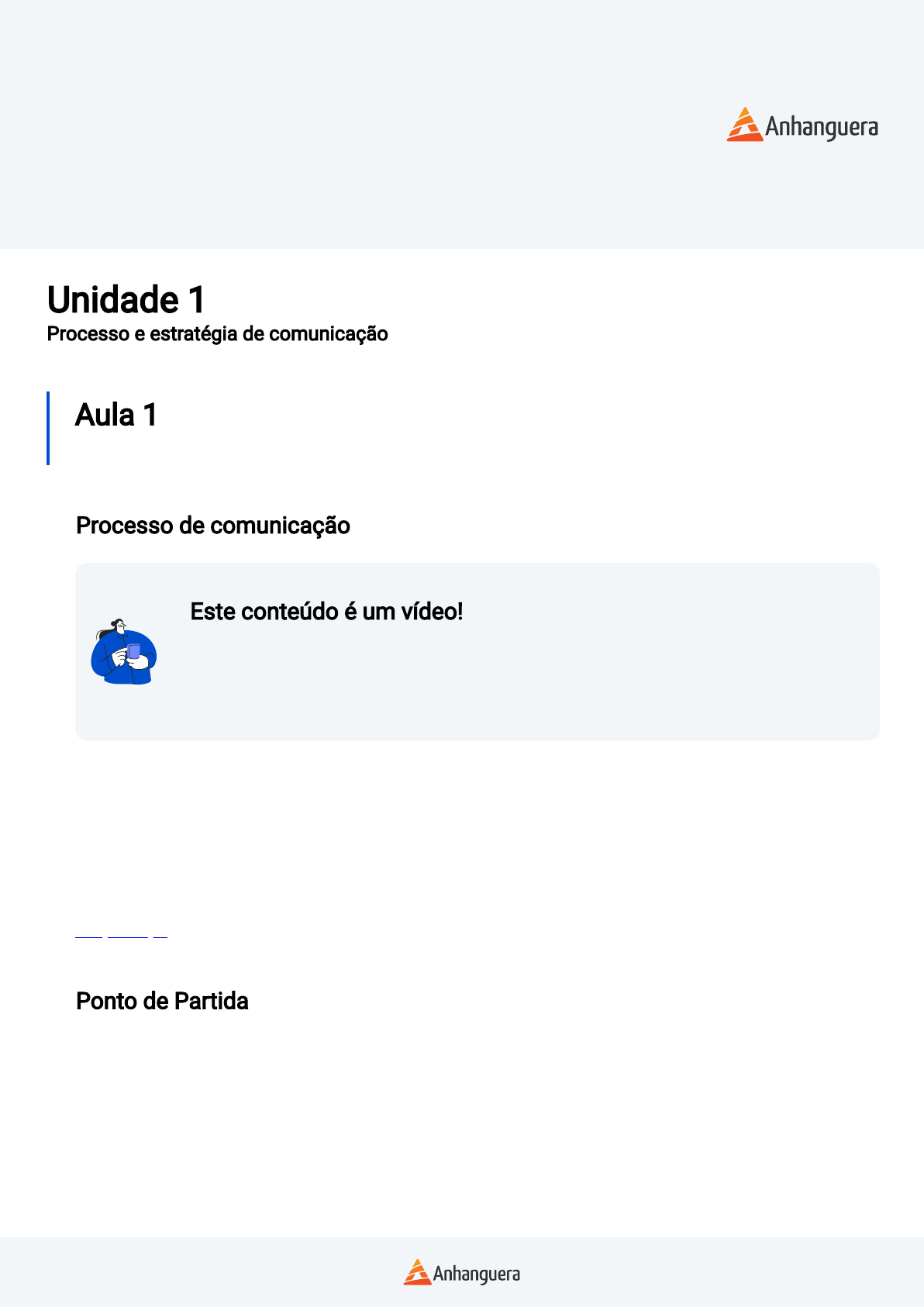 Disciplina COMUNICAÇÃO NÃO VIOLENTA, ESCUTA ATIVA E LINGUAGEM CORPORAL Unidade 1 Processo e estratégia de comunicação Aula 1 Processo de comunicação Processo de comunicação Este conteúdo é um vídeo! Para assistir este conteúdo é necessário que você acesse o AVA pelo computador ou pelo aplicativo. Você pode baixar os vídeos direto no aplicativo para assistir mesmo sem conexão à internet. Olá, estudante! Hoje, exploraremos o fascinante mundo da comunicação — um processo fundamental que permeia todas as interações humanas. Vamos mergulhar na complexidade da troca de informações, ideias e sentimentos entre indivíduos e grupos, para entender que a comunicação é uma jornada fascinante que perpassa diversos aspectos de nossas vidas. Ao explorarmos suas complexidades, aprimoramos nossa habilidade de nos conectarmos uns com os outros de maneira mais signi�cativa e compassiva, diante disso, a partir de agora, vamos explorar mais a fundo esse intrigante universo da comunicação. Clique aqui para acessar os slides da sua videoaula. Ponto de Partida A comunicação é natural e realizada desde os primórdios da civilização, no entanto, ainda que a forma de se comunicar tenha mudado desde então, a sua essência prevalece: trocar pensamentos, ideias, sentimentos e contatos uns com os outros. Comunicar-se é, possivelmente, o ato mais interessante que o ser humano realiza, ao mesmo tempo, é algo sem o qual não consegue viver. As pessoas se comunicam mesmo distantes no espaço e no tempo via aplicativos de mensagens e redes sociais, tais como Instagram, Facebook, WhatsApp, LinkedIn, Twitter, entre outros, e ainda que essas ferramentas não estejam disponíveis, é possível inventar outras formas de estabelecer comunicação, como por desenhos https://cm-kls-content.s3.amazonaws.com/202401/ALEXANDRIA/COMUNICACAO_NAO_VIOLENTA_ESCUTA_ATIVA_E_LINGUAGEM_CORPORAL/PPT/u1a1_com_nao_vio_esc_ati_ling_cor_liberado.pdf Disciplina COMUNICAÇÃO NÃO VIOLENTA, ESCUTA ATIVA E LINGUAGEM CORPORAL e mímicas. Sendo assim, para poder contextualizar nossas aulas, vamos sempre partir de uma situação- problema. Na aula de hoje, temos, então, o seguinte caso: Imagine uma equipe internacional de uma empresa global composta de pro�ssionais de diferentes países de língua portuguesa, como Brasil, Portugal, Cabo Verde, São Tomé e Príncipe, Angola, Moçambique, Guiné-Bissau e Timor Leste, que colabora para projetos complexos que exigem uma comunicação clara e e�caz, para garantir o sucesso das iniciativas. Entretanto, alguns desa�os surgem ao longo do caminho, tais como a variação linguística, as conotações culturais das palavras, a compreensão diferenciada da informação, além da implementação do acordo ortográ�co em diferentes momentos nos países membros, podendo causar divergências na escrita e na compreensão das mensagens. Diante disso, como podemos ajudar para que a comunicação se torne efetiva? Quais soluções poderíamos propor? Aproveite nossos conteúdos e bons estudos! Vamos Começar! O que é comunicação? Comunicação é o processo de troca de informações, ideias, pensamentos, sentimentos e dados entre indivíduos ou grupos, podendo acontecer de distintas formas, não apenas por meio da fala. Nós, seres humanos, temos o privilégio de ter desenvolvido ao longo dos séculos a capacidade de estabelecer comunicação por meio da fala, com palavras claras e signi�cado preciso, todavia, essa é apenas uma forma de se comunicar. Para Navaro (2020), o ser humano se comunica por meio de ideias e sentimentos, o que envolve a comunicação verbal e não verbal. A língua portuguesa, falada por nós, está espalhada por oito países diferentes: Brasil, Portugal, Cabo Verde, São Tomé e Príncipe, Angola, Moçambique, Guiné-Bissau e Timor Leste, mas apesar de ser o mesmo idioma, a língua varia em função da situação geográ�ca, do lugar ou mesmo da geração em que se encontra (Guimarães, 2012). Ainda assim, a língua viva sofre modi�cações com o tempo, haja vista o novo Acordo Ortográ�co �rmado pelos oito países que utilizam a língua portuguesa. No Brasil, o pacto começou, sem obrigatoriedade, em 2009, mas entrou em vigor, de fato, em 1° de janeiro de 2016 (Lourenço, 2016). Se a língua-mãe se modi�ca na fala e na escrita, a comunicação por meio dela também é alvo de deturpações feitas informalmente pelos indivíduos que a utilizam, gerando uma comunicação interpessoal que vai além da língua que se fala. Além disso, devemos estar atentos para o fato de que, mudando o idioma que se fala, a mesma palavra, quando traduzida, pode ter um signi�cado distinto, e um exemplo é a palavra “inveja”. Em português, ela tem uma conotação pejorativa e negativa, mas em inglês pode ser traduzida como jealous cujo signi�cado expressa orgulho e admiração por algo que o outro possui e que aquele que sente jealous não tem. Mas, então, qual a real de�nição de comunicação? Segundo Cordeiro et al. (2017), pode-se compreender o que é comunicação a partir da etimologia da palavra cujo signi�cado vem de “ação comum”, “participar” ou “tornar algo comum”. Os autores acrescentam, ainda, o que a comunicação representa: estabelecer uma relação, transmitir uma mensagem, realizar trocas (de Disciplina COMUNICAÇÃO NÃO VIOLENTA, ESCUTA ATIVA E LINGUAGEM CORPORAL pensamentos, sentimentos e outros) e fazer a passagem de um lugar a outro. O estudo do conceito de comunicação é muito mais amplo e pode ser complexo, já que, além de constituir uma disciplina, tal conceito é utilizado de forma abrangente por distintos veículos de comunicação e direcionado para públicos bem especí�cos, consequentemente, representa concepções diferentes para cada contexto. Por exemplo: o marketing, a educação, o jurídico, a clínica, a internet e os games abordarão a comunicação de modo especí�co, para