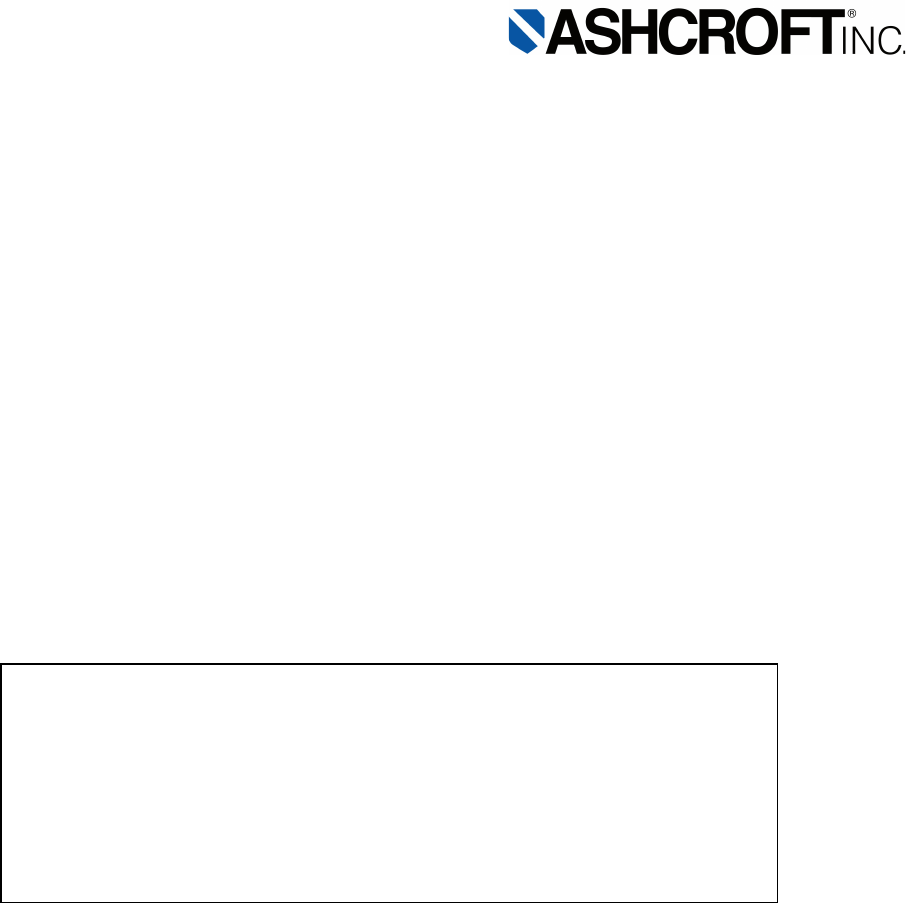 A-SERIES SWITCH SAFETY MANUAL I&M009-10210 REV A - 4/19/2013 Safety Manual A-Series Pressure Switch Document: I&M009-10210 REV A - Release 4/19/2013 Table of Contents: Section pg. 1. Introduction……………………………………………… 2 2. Device Description……………………………………… 4 3. Designing A SIF Using a Manufacturers Product…… 4 4. Installation and Commissioning……………………….. 7 5. Operation and Maintenance…………………………… 7 6. Start-up Checklist………………………………………. 9 A-SERIES SWITCH SAFETY MANUAL I&M009-10210 REV A - 4/19/2013 1 INTRODUCTION This Safety Manual provides information necessary to design, install, verify and maintain a Safety Instrumented Function (SIF) utilizing the A-Series pressure switch. This manual provides necessary requirements for meeting the IEC 61508 or IEC 61511 functional safety standards. 1.1 Terms and Abbreviations Safety Freedom from unacceptable risk of harm Functional Safety The ability of a system to carry out the actions necessary to achieve or to maintain a defined safe state for the equipment / machinery / plant / apparatus under control of the system Basic Safety The equipment must be designed and manufactured such that it protects against risk of damage to persons by electrical shock and other hazards and against resulting fire and explosion. The protection must be effective under all conditions of the nominal operation and under single fault condition Safety Assessment The investigation to arrive at a judgment - based on evidence - of the safety achieved by safety-related systems Fail-Safe State State where solenoid valve is de-energized and spring is extended. Fail Safe Failure that causes the valve to go to the defined fail-safe state without a demand from the process. Fail Dangerous Failure that does not respond to a demand from the process (i.e. being unable to go to the defined fail-safe state). Fail Dangerous Undetected Failure that is dangerous and that is not being diagnosed by automatic stroke testing. Fail Dangerous Detected Failure that is dangerous but is detected by automatic stroke testing. Fail Annunciation Undetected Failure that does not cause a false trip or prevent the safety function but does cause loss of an automatic diagnostic and is not detected by another diagnostic. Fail Annunciation Detected Failure that does not cause a false trip or prevent the safety function but does cause loss of an automatic diagnostic or false diagnostic indication. Fail No Effect Failure of a component that is part of the safety function but that has no effect on the safety function. Low demand mode Mode, where the frequency of demands for operation made on a safety-related system is no greater than twice the proof test frequency. A-SERIES SWITCH SAFETY MANUAL I&M009-10210 REV A - 4/19/2013 1.2 Acronyms FMEDA Failure Modes, Effects and Diagnostic Analysis HFT Hardware Fault Tolerance MOC Management of Change. These are specific procedures often done when performing any work activities in compliance with government regulatory authorities. PFDavg Average Probability of Failure on Demand SFF Safe Failure Fraction, the fraction of the overall failure rate of a device that results in either a safe fault or a diagnosed unsafe fault. SIF Safety Instrumented Function, a set of equipment intended to reduce the risk due to a specific hazard (a safety loop). SIL Safety Integrity Level, discrete level (one out of a possible four) for specifying the safety integrity requirements of the safety functions to be allocated to the E/E/PE safety-related systems where Safety Integrity Level 4 has the highest level of safety integrity and Safety Integrity Level 1 has the lowest. SIS Safety Instrumented System – Implementation of one or more Safety Instrumented Functions. A SIS is composed of any combination of sensor(s), logic solver(s), and final element(s). 1.3 Product Support Product support can be obtained from: Ashcroft Inc., 250 East Main St., Stratford Ct. 06614 www.ashcroft.com (203) 378-8281 1.4 Related Literature Hardware Documents: • Ashcroft A-Series Switch Installation, Operation and Maintenance Instructions Guidelines/References: • Safety Integrity Level Selection – Systematic Methods Including Layer of Protection Analysis, ISBN 1-55617-777-1, ISA • Control System Safety Evaluation and Reliability, 2nd Edition, ISBN 1- 55617-638-8, ISA • Safety Instrumented Systems Verification, Practical Probabilistic Calculations, ISBN 1-55617-909-9, ISA A-SERIES SWITCH SAFETY MANUAL I&M009-10210 REV A - 4/19/2013 1.5 Reference Standards Functional Safety • IEC 61508: 2010 Functional safety of electrical/electronic/ programmable electronic safety-related systems • ANSI/ISA 84.00.01-2004 (IEC 61511 Mod.) Functional Safety – Safety Instrumented Systems for the Process Industry Sector 2 DEVICE DESCRIPTION The A-Series Pressure switch is an electrical switch which is actuated via inlet pressure. The switch will change state from normally closed (NC) to normally open (NO) as pressure increases. It will change state again from NO to NC as pressure decreases. The switch is available in several configurations. The unit can be purchased as a factory set model (APS) where the switch point is set at the time of manufacture and is not adjustable, or a field adjustable model (APA) which can be adjusted by the end user. Each of these styles is available in a watertight housing or an explosion-proof housing. There are a variety of female or male pressure inlets available. There are also several electrical connectors available (18 awg wire leads, ½” conduit fitting, cable, spade terminals, Micro Din Form C connector). The switch can be purchased as a single-pole double throw switch (SPDT) or a double pole double throw switch (DPDT). Electrical ratings range from .1amps at 125Vdc to 5amps at 250Vdc depending on the type of switch ordered. Pressure ranges are availa