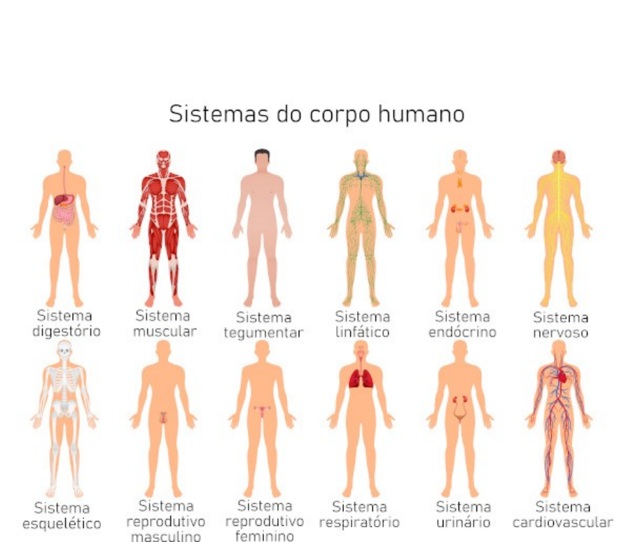 Sistemas do corpo humano Os sistemas do corpo humano são constituídos por órgãos que atuam de forma integrada e realizam funções específicas no nosso organismo. "Os sistemas do corpo humano são compostos por órgãos que atuam em conjunto para realizar funções semelhantes e específicas. O desempenho integrado de todos os sistemas garante o funcionamento adequado do organismo. Diversos órgãos contribuem para mais de um sistema." "O número de sistemas do corpo humano pode variar de acordo com a literatura escolhida. Neste contexto, serão abordados 11 sistemas: " Funções dos Sistemas do Corpo Humano Cardiovascular Faz o transporte dos nutrientes e gases pelo corpo através do sangue. Respiratório Realiza a troca de gases entre o sangue e o ar, absorve oxigênio e elimina o gás carbônico. Digestório Envolve ingestão e quebra dos alimentos, absorção dos nutrientes e eliminação dos resíduos. Nervoso Estabelece comunicação entre as diversas partes do corpo, elaborando respostas aos estímulos. Sensorial Captam estímulos do ambiente e enviam ao sistema nervoso que produz resposta imediata. Endócrino Produz os hormônios (nas glândulas) que atuam sobre as células do corpo, regulando seu funcionamento. Excretor Elimina as excretas, substâncias indesejáveis ao corpo, produzidas no metabolismo. Urinário Participa do processo de excreção, eliminando principalmente ureia através da urina. Reprodutor Permite a continuação da espécie através do processo reprodutivo, que envolve hormônios e sexualidade. Esquelético Sustenta o corpo, protege os órgãos internos e participa da locomoção, além de ser reserva de cálcio. Muscular Atua na locomoção do corpo e nos movimentos involuntários de alguns órgãos. Imunológico Atua por meio de células de defesa e órgãos imunitários para proteger o corpo de patógenos. Linfático Defende o organismo de infecções, detectando agentes invasores e toxinas na linfa. Tegumentar A pele atua como barreira e proteção, também controla a temperatura corporal e tem papel sensorial. "Sistemas são grupos de órgãos que atuam em conjunto para realizar determinadas funções no organismo. A integração entre os sistemas garante o bom funcionamento do corpo humano. Entre os sistemas do corpo humano, encontramos o digestivo, o esquelético, o cardiovascular e o respiratório. O maior sistema do corpo humano é o tegumentar. A célula, apesar de não ser tradicionalmente considerada um sistema, pode ser reconhecida como o menor sistema do corpo humano." "Importância dos sistemas do corpo humano Cada sistema trabalha com um conjunto de órgãos para otimizar e coordenar suas funções. Ainda, os sistemas estão interligados e formam uma rede integrada no corpo humano. As interações entre os diferentes sistemas são essenciais para o funcionamento adequado do organismo, uma vez que permitem a manutenção de respostas fisiológicas em atividade, fornecem proteção e defesa contra agentes externos, e atuam na regulação e no equilíbrio de diversas funções corporais. Alterar ou interromper a comunicação entre os órgãos de um sistema ou entre sistemas pode levar a disfunções no corpo, comprometendo a integridade do organismo como um todo. Pneumonia, febre, falência de órgãos e outras condições podem ocorrer quando as interações entre os sistemas não estão funcionando corretamente. Portanto, compreender e preservar as comunicações entre os sistemas é fundamental para a saúde do organismo humano." "Quais são o maior e o menor sistema do corpo humano? O maior sistema do corpo humano é o tegumentar, que engloba a pele, o órgão de maior extensão do corpo. Já em relação ao menor sistema, ainda existe uma discussão em andamento. Alguns defendem que o sistema endócrino é o menor em termos físicos. No entanto, há aqueles que argumentam que a célula pode ser considerada um sistema, fazendo-se uma analogia entre as organelas — que têm funções semelhantes às dos órgãos e trabalham em conjunto para manter a célula funcionando adequadamente — e os órgãos image4.jpeg image1.jpeg image2.jpeg image3.jpeg