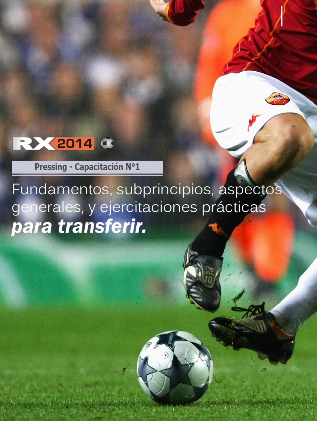 2014 Pressing - Capacitación N°1 Fundamentos, subprincipios, aspectos generales, ejercitaciones prácticas para transferir. 102014 Pressing - Capacitación N°1 el orden define el resto de las acciones. Desde hace años hemos aceptado que el pressing es una Porque directa 0 indirectamente, cualquier movimiento acción sustentada en el físico del jugador y en su espíritu de dentro del juego se verá afectado por el resto de los movi- lucha y sacrificio conjunto, pero hoy día esta más que com- mientos en suceso. probado que cualquier acción conjunta dentro del equipo, y Entonces mantenemos la idea del concepto de presión sobre todo a la hora de defender, requiere de mucho más. como el movimiento individual de cada jugador dentro del Sin dejar de lado la necesidad de la preparación y condi- contexto colectivo del pressing y la fase defensiva del ción física correcta, aboradaremos todos los aspectos que equipo. Un movimiento que se desprende clasicamente en la hacen de este principio del juego una acción casi necesaria iniciación de la acción conjunta. en el fútbol moderno. Basándonos en entender el Pressing Sostenido entonces el pressing en estos parámetros po- como un fundamento del fútbol en fase defensiva. demos vamos a caracterizar la acción en su conjunto, des- Quizás la primer expresión de este concepto se dio con la cribiendo cada una las partes que la componen y proponien- gran selección holandesa de fútbol, exhibida en su totalidad do modelos de ejercicios que ayuden a mejorar la actividad. en el mundial del 74. Un concepto llevado desde lo físico hasta lo cognitivo, un movimiento que en sus inicios parecía El aspecto físico: una idea alocada del fútbol y que terminó por instalarse de De manera inobjetable el aspecto físico es fundamental forma casi irreemplazable. para todas las acciones del juego, y sin dejar espacio vació En la actualidad accionar en le pressing no solo implica en esta materia, el jugador requerirá de todas sus condicio- dedicarse a perseguir simultáneamente al rival con el objeti- nes para ejercer la acción. Nos vamos a detener entonces, de quitarle el balón, actualmente las necesidades son no en las generalidades ya que debemos dar por entendido mucho mayores y para lograrlo debemos tener en cuenta que la preparación debe ser óptima, sino en la regulación y varios aspectos que requieren interpretar el juego en un utilización correcta de los esfuerzos durante la competencia. total de sus elementos. Sobre todo porque en esto de presionar, y sin dejar de lado En el colectivo de diferenciar el pressing de la "presión" los planteles profesionales, vemos constantemente como los hemos interpretado que la presión pasa por una acción indi- equipos pueden hacerlo durante los primeros 15 minutos, vidual de hostigamiento, y el pressing por el movimiento con una intensidad tan elevada que les es imposible soste- conjunto. Sin embargo, en la práctica, es muy dificil encon- ner, ya no el mismo nivel de esfuerzo, sino la acción en sí a trar un movimiento de presión como acción individual aisla- lo largo de todo el encuentro. da que puede interpretarse como un concepto del juego. En En el tratamiento de los elementos condicionales necesa- primer lugar las acciones individuales y aisladas no son rios en le pressing no vamos a encontrar ninguna diferencia parte del fútbol, tengamos siempre presente que por más con los que necesitamos para el resto del juego, a saber: ser que un jugador este incursionando individualmente, pasan- explosivo, ser rápido, resistir la demanda. No escapan del do rivales con velocidad y habilidad, siempre habrá un en- resto de las acciones, pero para darle especificidad a los torno que lo propicie. Ya sea porque un compañero lo asis- esfuerzos debemos establecer las zonas y momentos del tió, porque otros desplazan marcadores, o porque el equipo juego donde vamos a ejercer la acción. Al momento de la presionó correctamente y se recuperó el balón. La idea de ejecución de este principio defensivo la demanda física suele aislar e individualizar acciones dentro del fútbol es un tema variar en algunos puntos, diferenciándose en consecuencia que no termina de cerrarnos, pero que de todos modos no de lo requerido en las acciones de ataque, esencialmente trataremos de exponer en este momento. Preferimos enton- por la ausencia del balón. Debemos considerar que al estar ces mantener estas ideas de pressing y presión, pero siem- en búsqueda del balón necesitamos cubrir más espacios y pre interpretando que las acciones son colectivas, sobre llegar más de cerca a los receptores y al poseedor del balón. todo sin posesión del balón. La dinámica del pressing entonces, se asemeja más a las 20142014 Pressing - Aspecto Físico controlar los esfuerzos para efectivizarlos. velocidad y efectividad es absoluta. De esta forma, Considerando las necesidades físicas y evitando ir en de- seleccionar correctamente el tiempo y el espacio para accio- trimento del resto de las ocupaciones del juego podemos nar el pressing es fundamental para resolver los esfuerzos encontrar indicios para evitar esfuerzos máximos en la recu- que vamos a utilizar. Para quienes el pressing se convierte peración del balón cuando las condiciones no son las ade- en una acción constante las demandas físicas se vuelven cuadas, evitando frustración y fatiga, a saber: aún mayor y son más generales debido a la utilización de todas las distancias y espacios. Para quienes el pressing es 1.- Inferioridad numérica: Los jugadores deben realizar por sector y en función de condiciones tácticas y estratégi- movimientos de temporización y relevos para permitir el cas las distancias se reducen y la intensidad se mantiene. restablecimiento del orden posicional. Si uno pudiera seleccionar qué tipo de desgaste va a uti- 2.- Falta de acción grupal: Se debe evitar suspender el lizar a lo largo del encuentro, sin dudas, todos elegimos movimi