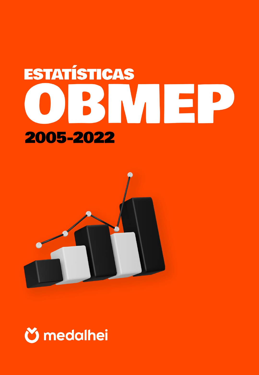 ESTATISTICAS OBMEP 2005-2022INTRODUÇÃO Fala, medalhistas! Neste e-book você terá acesso às estatísticas da Fase da OBMEP de 2005 até 2022 feitas pela equipe do Medalhei. Analisamos 960 questões ao total e com isso criamos 2 gráficos por nível, um com últimos 16 anos de prova e outro com os últimos 5 anos de prova para fim de comparação. A seguir algumas a informações importantes sobre dados apresentados. 1. que é "Matemática Básica"? São todos os assuntos de aritmética cobrados até o último ano do nível da prova. Exemplo: Nível 1 assuntos até o 7° ano Nível 2 assuntos até o 9° ano Nível 3 assuntos até o fim do Ensino Médio 2. Qual motivo de "Razão, Proporção e estar separado? Em total de questões possui uma alta relevância e por isso separamos. 3. que é "Raciocínio Lógico"? São todas as questões em que para a resolução é necessário predominantemente raciocínio lógico do que outros assuntos. 4. que é "Conceitos Geométricos"? São todas as questões de geometria com exceção de cálculo de áreas, circunferências e círculos. 5. Alguns dados estão diferentes do ebook de 2019 Sim, nós mudamos método de análise, mas ainda sim está bem próximo. 6. Quais são os anos analisados? De 2005 até 2019 e 2022. 7. Qual total de questões por nível? 320 questões por nível totalizando 960 questões e desconsiderando as repetidas. Esperamos que este material seja útil para guiar os seus estudos para chegar até a segunda fase e futuramente uma medalha ainda em 2023. Equipe Medalhei medalheiNÍVEL 1 que mais caiu de 2005-2022 123 Raciocínio Lógico (38,44%) 77 Matemática Básica (24,06%) 42 Áreas e Perímetros (13,13%) 22 Visão Espacial (6,88%) 19 Sequências (5,94%) 13 Análise de Gráficos e Tabelas (4,06%) 11 Análise Combinatória (3,44%) 10 Razão, Proporção e Porcentagem (3,13%) 3 Outros (0,94%) que mais caiu nos últimos 5 anos 35 Raciocínio Lógico (35%) 20 Matemática Básica (20%) 13 Áreas e Perímetros (13%) 12 Sequências (12%) 8 Visão Espacial (8%) 5 Análise Combinatória (5%) 3 Análise de Gráficos e Tabelas (3%) 3 Razão, Proporção e Porcentagem (3%) 1 Outros (1%) medalheiNÍVEL 2 que mais caiu de 2005-2022 112 Raciocínio Lógico (35%) 58 Matemática Básica (18,13%) 40 Áreas e Perímetros (12,5%) 23 Sequências (7,19%) 21 Razão, Proporção e Porcentagem (6,56%) 18 Análise Combinatória (5,63%) 15 Visão Espacial (4,69%) 15 Análise de Gráficos e Tabelas (4,69%) 12 Ângulos (3,75%) 6 Álgebra (1,88%) medalheiNÍVEL 2 que mais caiu nos últimos 5 anos 33 Raciocínio Lógico (33%) 17 Matemática Básica (17%) 11 Sequências (11%) 10 Áreas e Perímetros (10%) 9 Razão, Proporção e Porcentagem (9%) 6 Análise Combinatória (6%) 5 Visão Espacial (5%) 4 Álgebra (4%) 3 Ângulos (3%) 2 Análise de Gráficos e Tabelas (2%) medalheiNÍVEL 3 que mais caiu de 2005-2022 83 Raciocínio Lógico (25,94%) 46 Matemática Básica (14,38%) 37 Áreas e Perímetros (11,56%) 22 Análise Combinatória (6,88%) 18 Funções (5,63%) 16 Probabilidade (5%) 16 Análise de Gráficos e Tabelas (5%) 16 Razão, Proporção e Porcentagem (5%) 15 Sequências (4,69%) 15 Circunferências e Círculos (4,69%) 13 Álgebra (4,06%) 13 Conceitos Geométricos (fora áreas e círculos) (4,06%) 10 Visão Espacial (3,13%) medalheiNÍVEL 3 que mais caiu nos últimos 5 anos 27 Raciocínio Lógico (27%) 11 Matemática Básica (11%) 10 Análise Combinatória (10%) 10 Álgebra (10%) 8 Áreas e Perímetros (8%) 7 Funções (7%) 6 Visão Espacial (6%) 6 Probabilidade (6%) 4 Razão, Proporção e Porcentagem (4%) 4 Circunferências e Círculos (4%) 3 Conceitos Geométricos (fora áreas e círculos) (3%) 2 Análise de Gráficos e Tabelas (2%) 2 Sequências (2%) medalhei