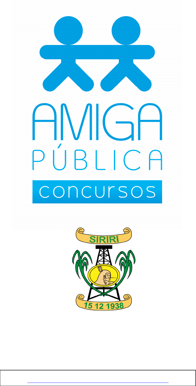 http://www.amigapublica.com.br PREFEITURA MUNICIPAL DE SIRIRI/SE CONCURSO PÚBLICO 001/2023 Edital de Abertura n.º 001/2023 (RETIFICADO) Publicado no Diário Oficial do Município de Siriri/SE em 29/09/2023 https://siriri.se.gov.br/portaltransparencia/?servico=cidadao/diariooficial ESTADO DE SERGIPE PODER EXECUTIVO MUNICIPAL MUNICÍPIO DE SIRIRI EDITAL 001/2023 – EDITAL DE ABERTURA DO CONCURSO PÚBLICO N.º 001/2023 Página 1 Prefeitura Municipal de Siriri/SE – Praça Dr Mário Pinotti, 306 – Centro – Siriri/SE – CEP: 49.630-000 Tel.: (79) 3297-1232 – CNPJ: 13.110.408/0001-68 Publicado no Diário Oficial do Município em 29/09/2023 Retificado pelo Edital 008/2023 O Município de Siriri, Estado de Sergipe, por meio de seu representante legal, Prefeita Interina Maria Clara Santos, no uso de suas atribuições, em conformidade com a Constituição Federal, Lei Orgânica do Município de Siriri e demais diplomas legais, comunica a quem possa interessar que realizará o CONCURSO PÚBLICO 001/2023 de Provas e Títulos para provimento de vagas no quadro de pessoal do Poder Executivo do Município de Siriri/SE, a ser executado pela Amiga Assessoria Técnica Administrativa e Informática Ltda. (Amiga Pública), instituição contratada por meio do Contrato de Prestação de Serviços n.º 050/2022, de acordo com as regras e instruções deste Edital e demais normas pertinentes: 1. DO CONCURSO PÚBLICO 1.1. O presente Concurso Público destina-se ao provimento efetivo de cargos, vagas e regras definidas na forma da Legislação vigente (Leis Municipais n.º 076/2003, 09/2004, 273/2016, 324/2019, 383/2022, 390/2022, 398/2023 e Decreto Municipal nº 051/2022), nos cargos relacionados no presente Edital, bem como para formação de cadastro de reserva, dentro do prazo de validade de 02 (dois) anos, prorrogável, a critério da Administração da Prefeitura Municipal de Siriri, por igual período, a contar da data da publicação do ato de homologação do resultado do mesmo; 1.1.1. Por cadastro de reserva, entende-se o conjunto de candidatos aprovados de acordo com as regras deste Edital, e relacionados na listagem que contém o resultado final do certame em classificação superior ao número de vagas ofertadas. O cadastro de reserva será aproveitado observando o prazo de validade do presente Concurso Público, bem como, as regras de quotas; 1.1.2. Por vaga reserva, entendem-se as vagas já criadas por Lei, indicadas no Edital do concurso como perspectiva de vaga, mas que o provimento dependerá da conveniência administrativa por ocasião de implementação de projetos ou atividades já planejadas ou em curso, como também, por vacância. 1.2. O provimento das vagas ocorrerá mediante nomeação em cargos efetivos, conforme legislação vigente. 1.3. Os cargos, o código do cargo, as vagas ofertadas, a remuneração inicial, a carga horária e habilitação mínima exigida são os estabelecidos na Tabela do subitem 2.1 dos Cargos, especificada abaixo; 1.4. Todas as etapas constantes neste Edital serão realizadas, observando-se o horário local do Município de SIRIRI/SE. 2. DOS CARGOS, VAGAS, REMUNERAÇÃO INICIAL e CARGA HORÁRIA: 2.1. TABELA DE CARGOS: CÓDIGO DO CARGO, CARGO, HABILITAÇÃO MÍNIMA, VAGAS AMPLA CONCORRÊNCIA, VAGAS PPD*, TOTAL DE VAGAS, REMUNERAÇÃO INICIAL e CARGA HORÁRIA: PREFEITURA MUNICIPAL CÓDIGO DO CARGO CARGO HABILITAÇÃO MÍNIMA VAGAS AMPLA CONCORRÊNCIA VAGAS P.P.D (*) VAGA RESERVA (**) TOTAL DE VAGAS REMUNERAÇÃO INICIAL (***) CARGA HORÁRIA 1 - NÍVEL BÁSICO 199003 AUXILIAR DE SERVIÇOS GERAIS Ensino Fundamental incompleto. 04 --- --- 04 R$ 1.320,00 40h semanais 199006 COVEIRO Ensino Fundamental incompleto. 01 --- --- 01 R$ 1.320,00 40h semanais 199007 VARREDOR DE RUA (GARI) Ensino Fundamental incompleto. 02 --- --- 02 R$ 1.320,00 40h semanais 199039 MOTORISTA CAT. D Ensino Fundamental incompleto CN Habilitação categoria “D” ou superior, dentro do prazo de validade. 02 --- --- 02 R$ 1.859,12 40h semanais =.= T O T A L DE VAGAS 09 --- --- 09 =.= FUNDO MUNICIPAL DE ASSISTÊNCIA SOCIAL CÓDIGO DO CARGO CARGO HABILITAÇÃO MÍNIMA VAGAS AMPLA CONCORRÊNCIA VAGAS P.P.D (*) VAGA RESERVA (**) TOTAL DE VAGAS REMUNERAÇÃ O INICIAL (***) CARGA HORÁRIA 4 – NÍVEL SUPERIOR 406001 ASSISTENTE SOCIAL Nível Superior completo em Serviço Social e registro no Conselho de classe. 01 --- --- 01 R$ 1.650,00 30h semanais =.= T O T A L DE VAGAS 01 --- --- 01 =.= ESTADO DE SERGIPE PODER EXECUTIVO MUNICIPAL MUNICÍPIO DE SIRIRI EDITAL 001/2023 – EDITAL DE ABERTURA DO CONCURSO PÚBLICO N.º 001/2023 Página 2 Prefeitura Municipal de Siriri/SE – Praça Dr Mário Pinotti, 306 – Centro – Siriri/SE – CEP: 49.630-000 Tel.: (79) 3297-1232 – CNPJ: 13.110.408/0001-68 Publicado no Diário Oficial do Município em 29/09/2023 Retificado pelo Edital 008/2023 FUNDO MUNICIPAL DE EDUCAÇÃO CÓDIGO DO CARGO CARGO HABILITAÇÃO MÍNIMA VAGAS AMPLA CONCORRÊNCIA VAGAS P.P.D (*) VAGA RESERVA (**) TOTAL DE VAGAS REMUNERAÇÃO INICIAL (***) CARGA HORÁRIA 1 - NÍVEL BÁSICO 199008 VIGIA Ensino Fundamental incompleto. 01 --- --- 01 R$ 1.320,00 40h semanais 2 - NÍVEL FUNDAMENTAL 299014 MERENDEIRA Ensino Fundamental completo. 01 --- --- 01 R$ 1.320,00 40h semanais 3 - NÍVEL MÉDIO / TÉCNICO 302032 CUIDADOR DE CRECHE Ensino Médio completo. 02 --- --- 02 R$ 1.320,00 40h semanais 301018 MONITOR DE TRANSPORTE ESCOLAR Ensino Médio completo. 02 --- --- 02 R$ 1.320,00 40h semanais 4 – NÍVEL SUPERIOR 402008 NUTRICIONISTA Nível Superior completo em Nutrição e registro no Conselho de classe. 01 --- --- 01 R$ 1.650,00 30h semanais 401015 PEDAGOGO Nível superior completo na modalidade licenciatura plena em Pedagogia. 10 02 --- 12 PISO NACIONAL MAGIST. (****) 160h mensais 401032 PROFESSOR DE ARTES Nível superior completo na modalidade licenciatura plena em Artes. 01 --- --- 01 PISO NACIONAL MAGIST. (****) 160h mensais 401004 PROFESSOR DE CIÊNCIAS Nível superior completo n
