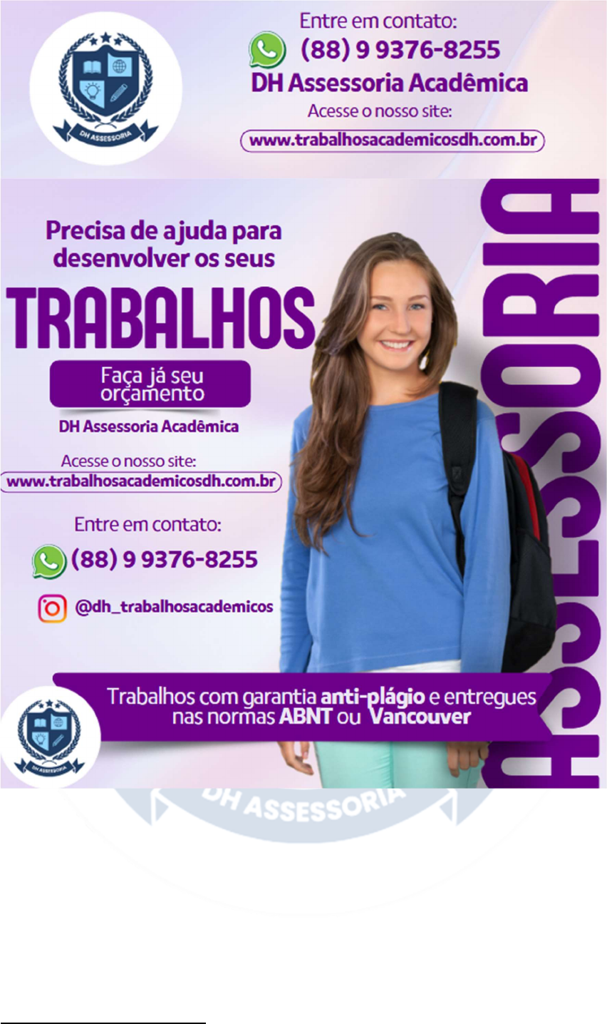 TÍTULO DO TCC: LETRAS DO TÍTULO MAIÚSCULAS, NEGRITO E NO MÁXIMO TRÊS LINHAS, ALINHAMENTO CENTRALIZADO, ESPAÇAMENTO SIMPLES, LETRA ARIAL Nº 12 Autor1, (digitada em letra tamanho 12) 1 E-mail do autor Declaro que sou autor(a)¹ deste Trabalho de Conclusão de Curso. Declaro também que o mesmo foi por mim elaborado e integralmente redigido, não tendo sido copiado ou extraído, seja parcial ou integralmente, de forma ilícita de nenhuma fonte além daquelas públicas consultadas e corretamente referenciadas ao longo do trabalho ou daqueles cujos dados resultaram de investigações empíricas por mim realizadas para fins de produção deste trabalho. Assim, declaro, demonstrando minha plena consciência dos seus efeitos civis, penais e administrativos, e assumindo total responsabilidade caso se configure o crime de plágio ou violação aos direitos autorais. (Consulte a 3ª Cláusula, § 4º, do Contrato de Prestação de Serviços). “Deixar este texto no trabalho”. RESUMO- O resumo deve ressaltar o objetivo, o método, os resultados e as conclusões do documento. A ordem e a extensão destes itens dependem do tipo de resumo (informativo ou indicativo) e do tratamento que cada item recebe no documento original. O resumo deve ser composto de uma sequência de frases concisas, afirmativas e não de enumeração de tópicos. Recomenda-se o uso de parágrafo único. A primeira frase deve ser significativa, explicando o tema principal do documento. A seguir, deve-se indicar a informação sobre a categoria do tratamento (memória, estudo de caso, análise da situação etc.). Deve-se usar o verbo na voz ativa e na terceira pessoa do singular. As palavras- chave devem figurar logo abaixo do resumo, antecedidas da expressão Palavras-chave:, separadas entre si por ponto e finalizadas também por ponto de acordo com a NBR 6028. Este modelo apresenta as instruções para a preparação de artigo. Os autores devem segui-lo para a preparação de artigos originais em formato Word. O artigo poderá ser pesquisa bibliográfica ou pesquisa de campo. O tema é de livre escolha devendo estar relacionado ao curso. O resumo deve ter entre 100 a 250 palavras em espaçamento simples com fonte Arial, tamanho 10, cor preta. O texto será composto pelos elementos: INTRODUÇÃO, DESENVOLVIMENTO, CONCLUSÃO e REFERÊNCIAS. O trabalho deverá ter no mínimo 08 e máximo 16 páginas. PALAVRAS-CHAVE: Primeira Palavra. Segunda Palavra. Terceira Palavra (3 a 5 palavras, separadas e terminadas por ponto). INTRODUÇÃO O artigo deverá conter no mínimo 08 e máximo 16, a contar do Resumo até as referências. Artigos fora do limite de páginas serão recusados. As páginas deverão ser de tamanho A4, com ambas margens 2,5cm ou 3cm margem superior e esquerda, e 2cm para margens direita e inferior. O corpo do artigo deverá ser formatado em coluna única, os parágrafos iniciam com recuo de 1,25 cm da margem com fonte Arial, tamanho 12, cor preta. Todo texto do desenvolvimento deve ser digitado com espaçamento de 1,5 entre as linhas. Usar um espaço após cada título e subtítulo, figuras, quadros e tabelas, quando houver. A introdução é basicamente seu Projeto resumido e escrito de uma forma corrida. Por isso, tenha em mãos o seu Projeto finalizado, pois usará quase todos os elementos que você fez aqui na introdução. Poderá optar por: Artigo de Revisão Bibliográfica: Parte de uma publicação que resume, analisa e discute informações já publicadas. Artigo original: Parte de uma publicação que apresenta temas ou abordagens originais. 1º e 2º parágrafo: apresentação do tema dentro de um contexto. 3º parágrafo: delimitação do tema, apresentado através do problema de pesquisa do seu TCC. 4º parágrafo: apresente possíveis respostas para o problema de pesquisa levantado, ou seja, as hipóteses. 5º parágrafo: em poucas palavras, fale sobre o objetivo geral do trabalho e também dos específicos. Eles são ingredientes fundamentais para o trabalho. 6º parágrafo: apresente a relevância do seu trabalho acadêmico, identificando a importância dele para a sociedade ou comunidade científica. Isso é o que chamamos de justificativa. 7º parágrafo: descreva, em poucas palavras, qual metodologia foi utilizada. Foi pesquisa bibliográfica ou de campo? Você deve especificar o procedimento de forma concisa. 8º parágrafo: apresente a estrutura do trabalho, ou seja, como ele está dividido em capítulos. Lembre-se de falar, resumidamente, sobre o que se trata cada capitulo.2 Esse modelo foi baseado na NBR 6022. DESENVOLVIMENTO Parte principal do artigo, que contém a exposição ordenada e pormenorizada do assunto tratado. O elemento textual chamado desenvolvimento é a parte principal do artigo científico, caracterizado pelo aprofundamento e análise pormenorizada dos aspectos conceituais mais importantes do assunto. É onde são amplamente debatidas as ideias e teorias que sustentam o tema (fundamentação teórica), apresentados os procedimentos metodológicos e análise dos resultados em pesquisas de campo, relatos de casos, dentre outros. Divide-se em seções e subseções, conforme a ABNT NBR 6024. Deve-se conter no mínimo 06 citações (Todas as obras citadas no artigo acadêmico devem estar referenciadas na bibliografia). Em caso de artigo utilizados como referências, deve-se escolher trabalhos recentes, dos últimos 10 anos. Autores clássicos podem ser citados, sem restrição de ano da obra. Demais referências como livros e outros, não é exigido serem dos últimos 10 anos. 1. Descrever sucintamente o tipo de pesquisa a ser abordada (bibliográfica, documental, de campo, etc. ) 2. Delimitação e descrição (se necessário) dos instrumentos e fontes escolhidos para a coleta de dados: entrevistas, formulários, questionários, legislação doutrina, jurisprudência, etc. 3. Indicar o procedimento para a coleta de dados, que deverá acompanhar o tipo de pesquisa selecionado