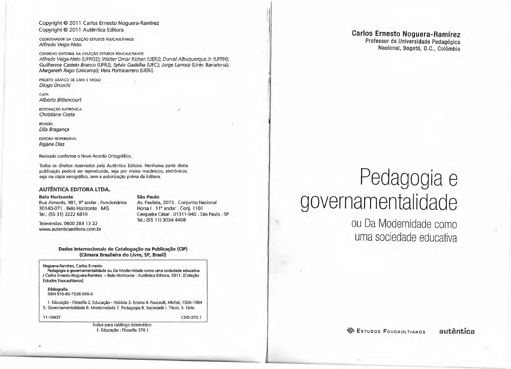 Copyright © 2011 Carlos Ernesto Noguera-Ramfrez Copyright © 2011 Autêntica Editora COORDENADOR DA COLEÇÃO ESTUDOS FOUCAULTIANOS Alfredo Veiga-Neto CONSELHO· EDITORIAL DA COLEÇAO ESTUDOS FOUCAULTIANOS Alfredo Veiga-Neto (UFRGS); Walter Omar Kohan (UERJ); Durval Albuquerque Jr. (UFRN); Guilherme Castelo Branco (UFRJ); Sylvio Gadelha (UFC); Jorge Larrasa (Univ. Barcelona); Margareth Rago (Unicamp); Vera Portocarrero (UERJ) PROJETO GRÁFICO DE CAPA E MIOLO Diogo Droschi CAPA A/berto Bittencourt EDITORAÇAo ELETRONICA Christiane Costa REVISÃO Di/a Bragança EDITORA RESPONSAvEL Rejane Dias Revisado conforme o Novo Acordo Ortográfico. Todos os direitos reservados pela Autêntica Editora. Nenhuma parte desta publicação poderá ser reproduzida, seja por meios mecânicos, eletrônicos, seja via cópia xerográfica, sem a autorização prévia da Editora. AUT~NTICA EDITORA l TOA. Belo Horizonte Rua Aimorés, 981, 8° andar . Funcionários 30140-071 . Belo Horizonte. MG Te!.: (5531) 32226819 Televendas: 0800 283 13 22 www.autenticaeditora.com.br São Paulo Av. Paulista, 2073 . Conjunto Nacional Horsa I .11° andar. Conj. 1101 Cerqueira César. 01311-940. São Paulo. SP Te!.: (55 11) 30344468 Dados Internacionais de Catalogação na Publicação (ClP) (Câmara Brasileira do Livro, SP, Brasil) Noguera-Ramlrez, Carlos Ernesto Pedagogia e governamentalidade ou Da Modernidade como uma sociedade educativa / Carlos Ernesto Noguera-Ramlrez. - Belo Horizonte: Autêntica Editora, 2011. (Coleçáo Estudos Foucaultianos) Bibliografia ISBN 978-85-7526-566-6 1. Educação - Filosofia 2. Educaçáo - História 3. Ensino 4. Foucault, Michel, 1926-1984 5. Governamentalidade 6. Modernidade 7. Pedagogia 8. Sociedade I. TItulo. 11.Série. 11-10437 CDO-370.1 Indice para catálogo sistemático: 1. Educação: Filosofia 370.1 Carlos Ernesto Noguera-Ramírez Professor da Universidade Pedagógica Nacional, Bogotá, D.C., Colômbia ,. Pedagogia e governamentalidade ou Da Modernidade como uma sociedade educativa ~ ESTUDOS FOUCAUL TlANOS autêntica http://www.autenticaeditora.com.br sua linguagem, suas atividades paternais, religiosas e sociais em geral. O programa de análise não será limitado. Vai ser tão amplo quanto a própria vida. Como se conclui, assim, em todas as coisas que compõem o mosaico da vida humana completamente formada, ele descobre a categoria inteira de objetivos educacionais (BOBBITT, 1918, p. 43). Uma década depois, Edward Thorndike - um das figuras centrais da psicologia educacional ou psicologia da aprendizagem - buscava estabelecer os fins da educação sobre a base de uma classificação das necessidades da vida humana contemporânea: A primeira classe trata da necessidade,de ajustamento adequado a phases do ambiente hodierno; a segunda classe refere-se a varios typos de equi- pamento de que cada indivíduo necessita. Cada uma dessas. duas classes é dividida em cinco grupos de necessidade, a seguir: 1. Ajustamentos necessarios a situações da vida ~oderna: ajustamentos ao mundo físico. 2. Ajustamentos a situações economicas. 3. Ajustamentos a situações de farrúlia. 4. Ajustamentos a situações sociais. 5. Ajustamentos a situações cívicas. Typos necessarios de equipamento pessoal: 1. Saúde physica. 2. Saúde mental. 3. Meios recreativos. 4. Meios ethicos e religiosos. 5. Meios intellectuais (THORNDlKE, 1936 [1929]) (Ortografia segundo o original). Percebe-se novamente a ideia de dividir a experiência humana em distintos tipos de atividades, de tal forma que a educação consista na pre- paração para o cumprimento eficiente delas. É essa tentativa de definir os fins da educação a partir da classificação das atividades da vida humana adulta, essa preocupação com a experiência, com a atividade do indiví- duo que aprende, essa preocupação. pela utilidade dessas atividades e dos conhecimentos que devem ser ensinados e aprendidos aquilo que dife- rencia a tradição dos Curriculum Studies das outras duas tradições formadas de maneira mais ou menos paralela. Contudo, é preciso deixar clara uma coisa: a via do currículo não esgota a produção anglo-saxônica; ela é muito mais diversa e rica, como mostram os estudos sobre a produção de John Dewey ou os trabalhos de Granville Stanley Hall ou E. Thomdike, por exemplo. O que aqui quis mostrar não foi, então, o elo comum a toda a produção pedagógica da cultura anglo-saxônica; minha intenção foi mostrar só uma parte, aquela que constituiria o mais particular, o sui generis e, portanto, aquilo que permitiria estabelecer uma clara diferença entre essa e as outras duas tradições que se constituíram na Modernidade. 228 Pedagogia e governamental idade ou Da Modernldade como sociedade educatlva Fechando o círculo: do ensino e da instrução para a aprendizagem Este trabalho deve se fechar, deve ter um final, um ponto definitivo de conclusão. Todavia, eu gostaria de deixá-lo aberto, inconcluso, inaca- bado, disponível para novos olhares que poderão transformar sua direção e sobretudo aprofundar, cavar, explorar as múltiplas superfícies que ficaram apenas descritas. É inevitável sentir tantas portas apenas entreabertas, tantas janelas mal fechadas, mas fico entusiasmado com a possibilidade de que elas possam conduzir a espaços inexplorados, possam ser como limiares que é preciso ultrapassar e arriscar para tentar perceber novas coisas num velho território mais ou menos aplainado das histórias da pedagogia e da educação. Lembro, ao momento de fechar, a delimitação metodológica que tive tantas vezes de retomar, quando me perdia entre tantas portas e janelas abertas, essa advertência inicial sobre os riscos de um olhar panorâmico, e sinto que o custo é grande.. muito trabalho e só consegui um desenho geral, um esboço. Mas creio.que não tive muita escolha, precisava desse panorama, minha insatisfação com as histórias. da educação e da pedagogia, por uma parte, e a obsessão contempor