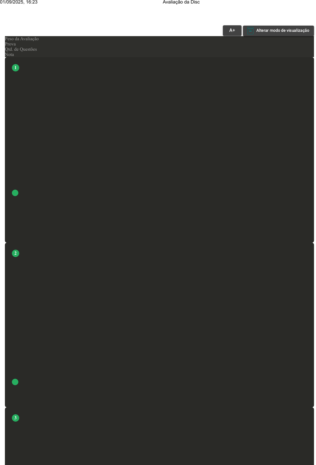 Prova Impressa GABARITO | Avaliação da Disciplina (Cod.:645471) Peso da Avaliação 10,00 Prova 105835376 Qtd. de Questões 20 Nota 10,00 Compreender as diversidades descortina o diálogo, compreender significa que eu posso pensar e ponderar o que o outro pensa. Sendo assim, é o mesmo que adotar novos sentidos aos nossos questionamentos. Portanto, é imprescindível termos consciência das contribuições dos diferentes grupos culturais na construção da cultura da humanidade, ter respeito, aceitação e valorização pela cultura do outro, sendo que o estranhamento é gerado pelo desconhecido, assim como o preconceito. Neste sentido, faz-se necessário recuperar muitos saberes suprimidos, deixar ecoar as diferentes vozes. Fonte: FERREIRA, Evanete Antunes; BATTESTIN, Claudia. Integrar saberes advindos das diversidades culturais. Revista Espaço Acadêmico, v. 21, n. 230, p. 356-365, 1 set. 2021. Disponível em: https://periodicos.uem.br/ojs/index.php/EspacoAcademico/article/view/56023 Acesso em: 16 out. 2023. Neste sentido, quanto à diversidade cultural e epistemologias, analise as seguintes afirmativas: I - As epistemologias do Sul são o conjunto de intervenções epistemológicas que denunciam a supressão, valorizam os saberes que resistiram com sucesso e investigam as condições de um diálogo horizontal entre conhecimentos. II - É de grande importância que os processos educativos e formativos sejam focados no reconhecimento de saberes e na integração deles. III - Ecologia dos saberes é uma ecologia porque se baseia no reconhecimento da pluralidade de conhecimentos heterogêneos e em interações sustentáveis e dinâmicas entre eles sem comprometer a sua autonomia. IV - Toda experiência social produz e reproduz conhecimento e, ao fazê-lo, pressupõe uma ou várias epistemologias. Assinale a alternativa CORRETA: A As afirmativas I, II, III e IV estão corretas. B As afirmativas II e III estão corretas. C Somente a afirmativa I está correta. D As afirmativas I e II estão corretas. Nota-se que apesar do significativo avanço das discussões sobre a diversidade cultural, das políticas públicas de valorização da diferença, da disseminação e facilid acesso à informação, da tomada de consciência e do crescente empoderamento de grande parcela de grupos minoritários da população, a diversidade cultural ainda valorizada, tendo em vista seu potencial de enriquecimento histórico e social. Fonte: AZEVEDO, Samara Moço; ANDRÉ, Bianka Pires. Pedagogia e diversidade cultural: diretrizes para uma nova formação. Laplage em Revista, v. 6, n. 1, p. 3 Disponível em: https://www.researchgate.net/publication/339435948_Pedagogia_e_diversidade_cultural_diretrizes_para_uma_nova_formacao/fulltext/5e51cd3f458515072db2c93 e-diversidade-cultural-diretrizes-para-uma-nova-formacao.pdf Acesso em: 16 out. 2023. Neste sentido, quanto às relações entre cultura, arte e educação, analise as seguintes afirmativas: I – Embora leis, decretos e documentos internacionais representem um progresso significativo, eles ainda são insuficientes para garantir totalmente a valorização da diversidade cultural. II – O cenário educacional pós-moderno tem demandado uma manutenção de paradigma que por vezes é esmagada pela necessidade de cumprimento dos currículos máximos, fato que contribui para a exclusão e o não atendimento das diversidades. III – É essencial cultivar o respeito à diversidade cultural e desconstruir os preconceitos profundamente arraigados na sociedade brasileira, que, devido à sua história de exploração e escravidão, tende a valorizar certas culturas em detrimento de outras. Assinale a alternativa CORRETA: A As afirmativas II e III estão corretas. B Somente a afirmativa II está correta. C As afirmativas I e III estão corretas. D As afirmativas I e II estão corretas. A revitalização dos estudos no campo do folclore e das culturas tradicionais contemporaneamente se deve não só ao processo de ampliação do próprio conceito de patrimônio cultural reconhecendo o direito das manifestações imateriais, mas também em razão das orientações extraídas das conferências e dos organismos internacionais para o campo das políticas culturais a partir dos anos 1970. Fonte: ROCHA, G. Cultura popular: do folclore ao patrimônio. Mediações - Revista de Ciências Sociais, Londrina, v. 14, n. 1, p. 218–236, 2009. DOI: 10.5433/2176-6665.2009v14n1p218. Disponível em: https://ojs.uel.br/revistas/uel/index.php/mediacoes/article/view/3358. Acesso em: 14 out. 2023. VOLTAR A+ Alterar modo de visualização 1 2 3 01/09/2025, 16:23 Avaliação da Disciplina about:blank 1/9 Referente à cultura popular, analise as seguintes afirmativas: I - A ampliação do conceito de cultura permitiu superar, política e epistemologicamente, a visão das diferenças culturais como decorrentes de uma suposta inferioridade intelectual e/ou racial entre os grupos sociais. II - A importância política e epistemológica do conceito de cultura popular é inegável desde a década de 1960. III - As primeiras discussões sobre patrimônio imaterial, também conhecido como intangível, coincidiram com os debates sobre o significado antropológico da cultura no mundo contemporâneo. Assinale a alternativa CORRETA: A Somente a afirmativa II está correta. B As afirmativas I, II e III estão corretas. C As afirmativas I e II estão corretas. D As afirmativas II e III estão corretas. “[...] vivemos em sociedades marcadas pela diversidade de raças, etnias, culturas, gênero e outras características que formam as identidades dos sujeitos”. Essas car influenciam diretamente no âmbito social, econômico e cultural, e evidencia a necessidade de levá-las em consideração nas práticas pedagógicas. Contudo por mais instituições estejam lidando diariamente com essa vasta diversidade cultural, elas ainda têm resistido à adoção do multiculturalismo como política afirmativa que fo