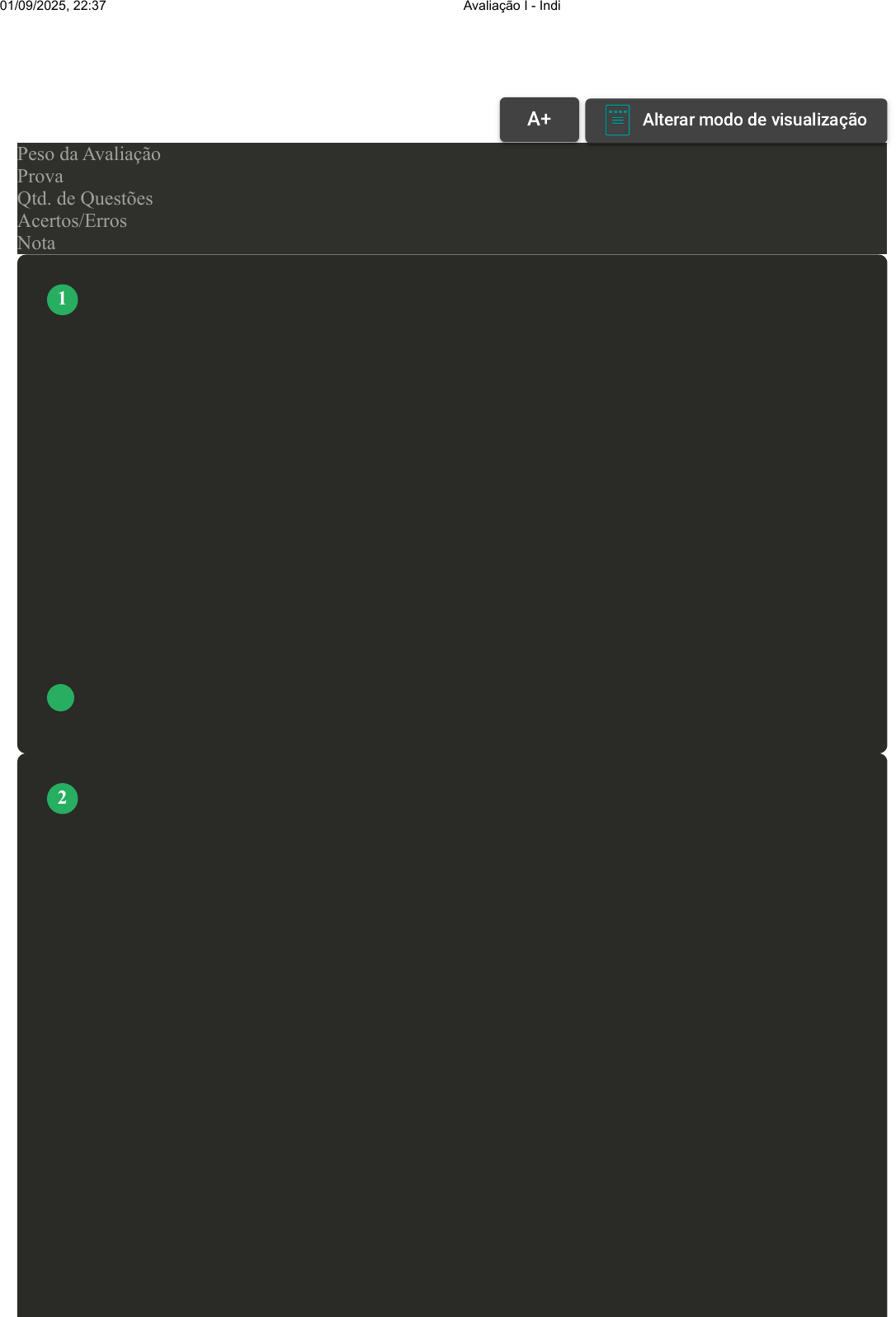 Prova Impressa GABARITO | Avaliação I - Individual (Cod.:1525828) Peso da Avaliação 2,00 Prova 104283400 Qtd. de Questões 10 Acertos/Erros 10/0 Nota 10,00 As fontes renováveis de energia são aquelas que se regeneram espontaneamente ou através da intervenção humana. São consideradas energias limpas, pois os resíduos deixados na natureza são nulos. As energias não renováveis são aquelas que uma vez esgotadas, não podem mais ser regeneradas, pois é necessário muito tempo para sua formação na natureza. A procura por novas fontes renováveis de energia surge como alternativa importante para superar dois problemas atuais: a escassez de fontes não renováveis de energia, principalmente do petróleo, e a poluição ambiental causada por essas fontes (combustíveis fósseis). Com base no tipo de recurso energético não renovável, assinale a alternativa CORRETA: FONTE: . Acesso em: 9 jun. 2021. A Biomassa, massa dos seres vivos habitantes de uma região. B Biogás, utilização das bactérias na transformação de detritos orgânicos em metano. C Hidrogênio, usado como célula combustível. D Carvão mineral, extraído da terra pelo processo de mineração. Foram definidas normas envolvendo diversas instituições com relação a estrutura do sistema elétrico nacional, tanto em relação a questões técnicas quanto em relação a questões de comercialização e de operação de energia elétrica. Em nível nacional, o poder federal fiscaliza e regula a geração, a transmissão e a distribuição de energia elétrica. Com base na estrutura do sistema Elétrico Brasileiro, classifique V para as sentenças verdadeiras e F para as falsas: ( ) Integram a estrutura do sistema de elétrico brasileiro, o Ministério de Minas e Energia (MME), a ANEEL, a Empresa de Pesquisa Energética (EPE), o Comitê de Monitoramento do Setor Elétrico (CMSE), a Câmara de Comercialização de Energia Elétrica (CCEE) e o Operador Nacional do Sistema Elétrico (ONS). ( ) A Empresa de Pesquisa Energética (EPE) tem por finalidade prestar serviços na área de estudos e pesquisas destinadas a subsidiar o planejamento do setor energético, tais como energia elétrica, petróleo e gás natural e seus derivados, carvão mineral, fontes energéticas renováveis e eficiência energética, entre outras. ( ) Apesar de constituir autarquia sob regime especial, a ANEEL não dispõe de autonomia patrimonial e financeira, por estar vinculada diretamente ao Ministério de Minas e Energia (MME). ( ) As principais atribuições do CMSE incluem: acompanhar o desenvolvimento das atividades de geração, transmissão, distribuição, comercialização, importação e exportação de energia elétrica; avaliar as condições de abastecimento e de atendimento; realizar periodicamente a análise integrada de segurança de abastecimento e de atendimento; identificar dificuldades e obstáculos que afetem a regularidade e a segurança de abastecimento e expansão do setor e elaborar propostas para ajustes e ações preventivas que possam restaurar a segurança no abastecimento e no atendimento elétrico. VOLTAR A+ Alterar modo de visualização 1 2 01/09/2025, 22:37 Avaliação I - Individual about:blank 1/6 Assinale a alternativa que apresenta a sequência CORRETA: A F - F - V - F. B V - V - F - V. C V - F - V - V. D V - F - F - V. A Agência Nacional de Energia Elétrica (ANEEL) é uma autarquia em regime especial, vinculada ao MME e foi criada pela Lei n° 9.427 de 26 de dezembro de 1996. Com base nas atribuições da ANEEL, classifique V para as sentenças verdadeiras e F para as falsas: ( ) Fiscalizar diretamente ou mediante convênios com órgãos estaduais, as concessões, as permissões e os serviços de energia elétrica. ( ) Regular a geração (produção), transmissão, distribuição e comercialização de energia elétrica. ( ) Definir e fiscalizar as tarifas de energia elétrica. ( ) Implementar as políticas e diretrizes do governo federal relativas à exploração da energia elétrica e ao aproveitamento dos potenciais hidráulicos. ( ) A supervisão do CMSE que é o órgão encarregado do monitoramento e do fornecimento de energia no sistema em nível nacional. Assinale a alternativa que apresenta a sequência CORRETA: A V - V - V - V - F. B V - F - F - V - V. C V - F - V - V - F. D F - F - V - F - V. Com o aumento gradativo da população e dos padrões de consumo da sociedade atual, os debates envolvendo as questões energéticas estão sendo cada vez mais frequentes. A base energética do Brasil gira em torno das hidrelétricas, visto que o país possui uma ótima disponibilidade hídrica. Com os constantes períodos de secas e pela escassez dos recursos não renováveis causado pelo consumo desenfreado, voltam-se os olhos para fontes de energias renováveis. Nesse contexto, a energia solar fotovoltaica surge com destaque entre as fontes de energia renováveis, devido a mesma ser considerada uma fonte de geração inesgotável, necessitar de manutenção mínima e manifestar constantes avanços tecnológicos. Com base nas vantagens e desvantagens da energia solar, classifique V para as sentenças verdadeiras e F para as falsas: ( ) É uma excelente solução para locais isolados e/ou afastados, uma vez que não exige grandes investimentos em linhas de transmissão para instalações de pequena escala. ( ) A tecnologia para o armazenamento dessa energia é pouco eficiente em relação a outras formas de geração, como combustíveis fósseis, energia hidrelétrica e biomassa. ( ) Os sistemas de controle e as centrais da instalação necessitam de pouca manutenção. ( ) uma das desvantagens deste processo de geração de energia é o alto custo dos painéis solares e a pouca eficiência necessitando um número muito grande de placas para melhorar a eficiência do 3 4 01/09/2025, 22:37 Avaliação I - Individual about:blank 2/6 processo. Assinale a alternativa que apresenta a sequência CORRETA: A F