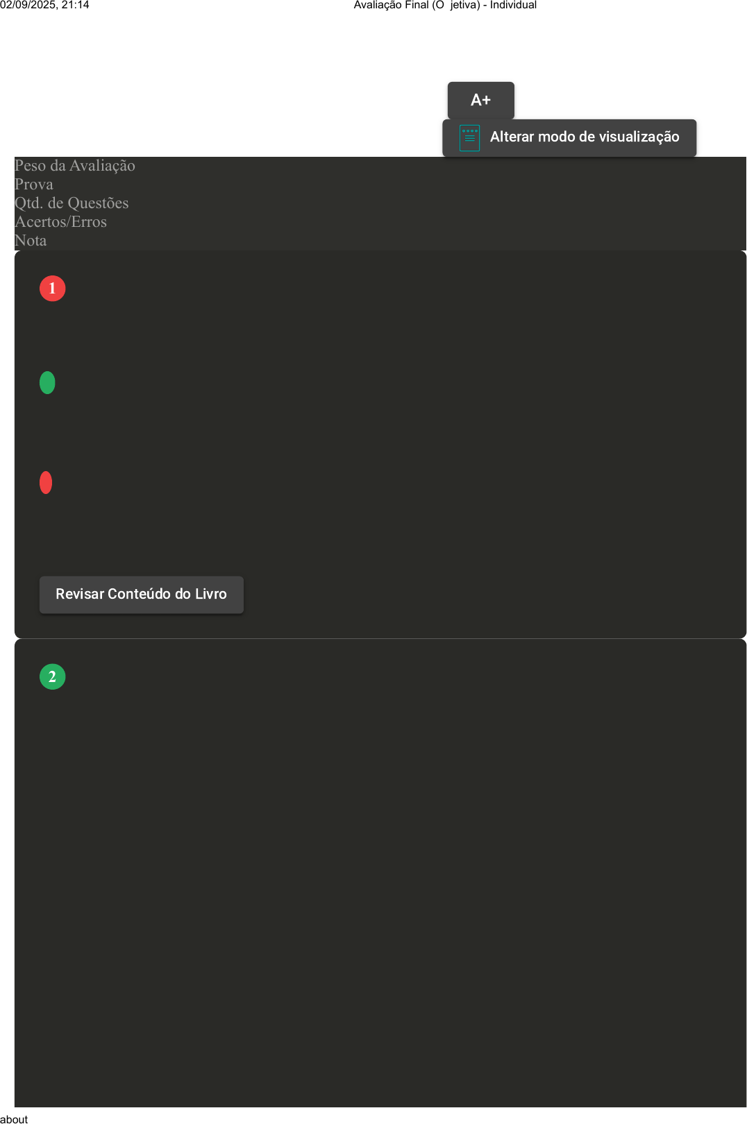 Prova Impressa GABARITO | Avaliação Final (Objetiva) - Individual (Cod.:1023513) Peso da Avaliação 4,00 Prova 97228616 Qtd. de Questões 10 Acertos/Erros 1/9 Nota 1,00 Várias recomendações devem ser seguidas no roteiro de cálculo, dimensionamento e seleção de uma bomba centrífuga adequada para um determinado sistema. Com relação aos tópicos mais importantes que devem ser considerados para o projeto hidráulico e operação de bombas centrífugas, assinale a alternativa CORRETA: A A escorva da bomba elimina o ar existente no interior da bomba e da tubulação de sucção, auxiliando a boa operação da máquina hidráulica. B A escorva da bomba significa inserir líquido na tubulação de recalque até o ponto final de descarga. C A entrada de ar na tubulação de sucção deve ser evitada com o aumento da distância entre a conexão do tubo na bomba e no reservatório de captação de líquido abaixo da bomba. D Para um reservatório de captação de líquido localizado abaixo do nível da bomba (altura de sucção negativa), a probabilidade de ocorrer cavitação é menor do que em um sistema com altura de sucção positiva. A especificação e seleção de uma bomba centrífuga adequada para um sistema de transporte de líquidos geralmente é definida em função da vazão de operação (Q) e da altura manométrica total (carga hidráulica da bomba, H) nos catálogos de fabricantes. Com estes dois parâmetros hidráulicos definidos, é possível selecionar o modelo de bomba e outros parâmetros hidráulicos complementares. Considere a curva característica (disponível no anexo) de um modelo de bomba centrífuga sugerido para um sistema de escoamento de água na indústria. A bomba deve ter capacidade de escoar 8000 L/h de água em regime permanente. VOLTAR A+ Alterar modo de visualização 1 Revisar Conteúdo do Livro 2 02/09/2025, 21:14 Avaliação Final (Objetiva) - Individual about:blank 1/7 Com base nas informações da curva característica, classifique V para as sentenças verdadeiras e F para as falsas: ( ) Para o modelo de bomba selecionada para a instalação hidráulica, existem três opções de potência de motor para a bomba na vazão requisitada. ( ) Para a bomba com potência instalada de 4 cv, o valor do NPSH requerido está entre 3 e 3,5 m c.a. ( ) Para a bomba com potência instalada de 5 cv, o valor do NPSH requerido está entre 4 e 4,5 m c.a. Assinale a alternativa que apresenta a sequência CORRETA: A V - V - F. B F - V - F. C V - F - V. 02/09/2025, 21:14 Avaliação Final (Objetiva) - Individual about:blank 2/7 D F - F - V. [Laboratório Virtual – Canal Aberto] Em uma das práticas do laboratório virtual desta disciplina, você conheceu detalhes sobre o escoamento de líquidos em canal aberto. Ao causar uma pequena perturbação na superfície da água de um canal aberto, percebe-se que uma onda se move no sentido oposto ao fluxo de água. Quando esse fenômeno ocorre, qual é o tipo de escoamento de acordo com a classificação indicada pelo número de Froude (Fr)? A O escoamento é supercrítico. B O escoamento é laminar. C O escoamento é crítico. D O escoamento é subcrítico. Várias recomendações devem ser seguidas no roteiro de cálculo, dimensionamento e seleção de uma bomba centrífuga adequada para um determinado sistema. Com relação aos tópicos mais importantes que devem ser considerados para o projeto hidráulico e operação de bombas centrífugas, assinale a alternativa INCORRETA: A A condição de operação de uma motobomba centrífuga deve ser próxima de seu ponto de melhor eficiência para aumentar o tempo de vida útil de operação da máquina hidráulica. B Para um reservatório de captação de líquido localizado acima da bomba (altura de sucção positiva), a probabilidade de ocorrer cavitação na bomba é maior do que um sistema de bombeamento com altura de sucção negativa. C A velocidade do escoamento do fluido é uma variável importante no cálculo das perdas de carga distribuídas e localizadas na tubulação. D A associação de bombas em série ou paralelo pode ser executada para atender a carga hidráulica necessária do escoamento ou aumentar a vazão do escoamento. Com frequência é conveniente representar o nível de energia mecânica de um fluido no escoamento graficamente usando alturas (cargas) para facilitar a visualização dos diversos termos da 3 Revisar Conteúdo do Livro 4 Revisar Conteúdo do Livro 5 02/09/2025, 21:14 Avaliação Final (Objetiva) - Individual about:blank 3/7 equação de energia (teorema de Bernoulli). Com base na figura que ilustra o escoamento de um líquido através de um bocal de descarga de uma tubulação, classifique V para as sentenças verdadeiras e F para as falsas: ( ) Tanto a linha piezométrica (LP) quanto a linha de energia (LE) apresentam uma inclinação para baixo no sentido do escoamento, pois a velocidade do fluido aumenta ao longo de todo o comprimento da tubulação. ( ) A distância entre a linha piezométrica (LP) e a linha de energia (LE) é equivalente à carga cinética do escoamento do fluido. ( ) A linha piezométrica (LP) aumenta rapidamente à medida em que o líquido acelera e aumenta a velocidade na tubulação. Assinale a alternativa que apresenta a sequência CORRETA: A V - V - F. B V - F - V. C F - V - V. D F - V - F. O escoamento de um líquido em declive em qualquer conduto com a superfície livre do líquido exposta à atmosfera é chamado de escoamento em canal aberto ou, mais comumente, escoamento livre. Esse tipo de escoamento difere do realizado em conduto forçado ou fechado. Sobre as características e definições de um escoamento em canal aberto, classifique V para as sentenças verdadeiras e F para as falsas: ( ) O escoamento em canal aberto pode se dar pela condução de água em uma seção aberta, como Revisar Conteúdo do Livro 6 02/09/2025, 21:14 Avaliação Final (Objetiva) - Individual about:blank 4/7 em canais de irri