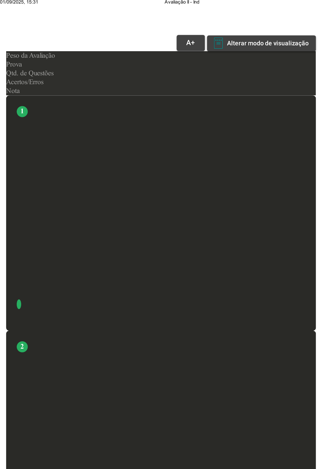 Prova Impressa GABARITO | Avaliação II - Individual (Cod.:1526201) Peso da Avaliação 2,00 Prova 105479644 Qtd. de Questões 10 Acertos/Erros 10/0 Nota 10,00 De acordo com o estudo de Lima (2022), a Terapia Ocupacional desempenha um papel fundamental na intervenção com crianças diagnosticadas com Transtorno do Espectro Autista (TEA), sendo que o brincar é destacado como um recurso terapêutico essencial. Fonte: adaptado de: LIMA, Adriana Gomes; FERREIRA, Clara Gomes. O brincar compartilhado de crianças autistas: olhar da terapia ocupacional clínica. Europub Journal of Health Research, v. 3, n. 4, p. 920-928, 2022. Disponível em: https://ojs.europubpublications.com/ojs/index.php/ejhr/article/view/520. Acesso em: 13 ago. 2025. Considerando o brincar como parte indispensável da atuação do terapeuta ocupacional, assinale a alternativa correta: A A estimulação precoce, realizada após os três anos de idade, é o principal fator para promover melhorias nas habilidades funcionais das crianças com TEA. B A Terapia Ocupacional com foco no brincar não tem impacto significativo nas fases iniciais do desenvolvimento neuropsicomotor das crianças com TEA. C A intervenção terapêutica com brincar é eficaz para promover a inclusão social, mas não contribui para a neuroplasticidade do cérebro nas fases iniciais da vida. D A Terapia Ocupacional não está indicada para a intervenção com crianças com TEA, pois o brincar não é uma estratégia eficaz para o desenvolvimento neuropsicomotor. E A utilização do brincar como recurso terapêutico na Terapia Ocupacional é especialmente eficaz durante as fases iniciais da vida, quando a neuroplasticidade cerebral é mais pronunciada, promovendo reabilitação e inclusão social. A Terapia Ocupacional tem grande importância da Terapia na intervenção com crianças com Transtorno do Espectro Autista (TEA) para melhor desenvolvimento de habilidades. Fonte: adaptado de: LIMA, Adriana Gomes; FERREIRA, Clara Gomes. O brincar compartilhado de crianças autistas: olhar da terapia ocupacional clínica. Europub Journal of Health Research, v. 3, n. 4, p. 920-928, 2022. Disponível em: https://ojs.europubpublications.com/ojs/index.php/ejhr/article/view/520. Acesso em: 13 ago. 2025. De acordo com os conceitos de terapia ocupacional e a atuação no TEA, analise as afirmativas a seguir: I. A neuroplasticidade do cérebro nas fases iniciais da vida favorece a reabilitação e a inclusão social das crianças com TEA. II. A Terapia Ocupacional no tratamento do TEA deve ser iniciada após os três anos, pois a intervenção precoce não é eficaz. III. O brincar é desconsiderado como recurso terapêutico na intervenção com crianças com TEA, pois não promove mudanças significativas no desenvolvimento neuropsicomotor. VOLTAR A+ Alterar modo de visualização 1 2 01/09/2025, 15:31 Avaliação II - Individual about:blank 1/7 IV. A estimulação precoce, antes dos três anos, é fundamental para a potencialização das habilidades funcionais das crianças com TEA, especialmente nas fases iniciais da vida. É correto o que se afirma em: A I, II e III, apenas. B II, III e IV, apenas. C I e IV, apenas. D II e III, apenas. E III e IV, apenas. De acordo com Bittencourt (2021), nas AVDs, utilizam-se técnicas de conservação de energia e estratégias para retomar a funcionalidade, como alimentação pós-extubação. Intervenções cognitivas incluem orientação espaço-temporal, lazer e uso de tecnologia. O bem-estar emocional é trabalhado com relaxamento, respiração e integração social, enquanto a estimulação sensorial envolve atividades olfativas e gustativas. Fonte: adaptado de: BITTENCOURT, E. da S. et al. A atuação do terapeuta ocupacional em Unidade de Terapia Intensiva: uma revisão sistemática. Cadernos Brasileiros de Terapia Ocupacional, v. 29, p. e2800, 2021. Disponível em: https://www.scielo.br/j/cadbto/a/4CxnYPgPX9WGt455YfhTCDw/. Acesso em: 13 ago. 2025. Com relação às intervenções em Terapia Ocupacional aplicadas às atividades de vida diária (AVDs), analise as afirmativas a seguir: I. O bem-estar emocional pode ser trabalhado por meio de estratégias de relaxamento, respiração e integração social, que auxiliam na recuperação emocional do paciente. II. As estratégias para facilitar a retomada funcional pós-extubação envolvem atividades como alimentação, promovendo a recuperação do paciente de forma gradual. III. Intervenções cognitivas em terapia ocupacional incluem a orientação espaço-temporal, além de atividades de lazer e o uso de tecnologia para estimular capacidades cognitivas. IV. Técnicas de conservação de energia são utilizadas apenas em pacientes com condições musculoesqueléticas, não sendo aplicáveis em pacientes com distúrbios respiratórios. É correto o que se afirma em: A I, II e III, apenas. B IV, apenas. C II e IV, apenas. D I, II, III e IV. E I e III, apenas. 3 01/09/2025, 15:31 Avaliação II - Individual about:blank 2/7 Materiais de referência global têm ajudado na adaptação das rotinas durante o isolamento, reforçando a ideia de que a seguridade social é um direito essencial. Profissionais de Terapia Ocupacional ressaltam a importância de integrar os sistemas de saúde, previdência e assistência social para superar as dificuldades trazidas pela pandemia. A criação de políticas públicas eficazes e o apoio a ações solidárias são fundamentais para diminuir as desigualdades e garantir uma vida digna para todos. Fonte: adaptado de: MALFITANO, A. P. S.; CRUZ, D. M. C. da; LOPES, R. E. Terapia ocupacional em tempos de pandemia: seguridade social e garantias de um cotidiano possível para todos. Cadernos Brasileiros de Terapia Ocupacional, v. 28, n. 2, p. 401-404, 2020. Disponível em: https://www.scielo.br/j/cadbto/a/8GTs4kNrff8Xh6qFwsrK9GD/. Acesso em: 15 ago. 2025. Considerando o texto e as informações sobre a atuação da Terapia Ocupacional durante a pande
