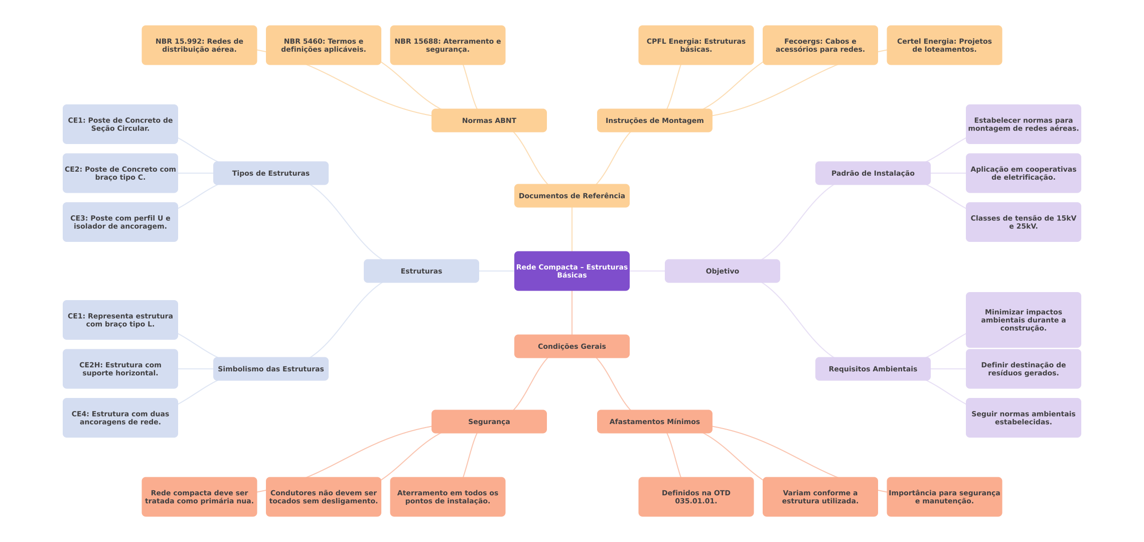 NBR 15.992: Redes de NBR 5460: Termos e NBR 15688: Aterramento e CPFL Energia: Estruturas Fecoergs: Cabos e Certel Energia: Projetos distribuição aérea. definições aplicáveis. segurança. básicas. acessórios para redes. de loteamentos. CE1: Poste de Concreto de Normas ABNT Instruções de Montagem Estabelecer normas para Seção Circular. montagem de redes aéreas. CE2: Poste de Concreto com braço tipo Tipos de Estruturas Padrão de Instalação Aplicação em cooperativas de eletrificação. Documentos de Referência CE3: Poste com perfil U e Classes de tensão de 15kV isolador de ancoragem. e 25kV. Estruturas Rede Compacta Estruturas Básicas Objetivo CE1: Representa estrutura Minimizar impactos ambientais durante a com braço tipo L. construção. Condições Gerais CE2H: Estrutura com Simbolismo das Estruturas Requisitos Ambientais Definir destinação de suporte horizontal. resíduos gerados. CE4: Estrutura com duas Seguir normas ambientais ancoragens de rede. Segurança Afastamentos Mínimos estabelecidas. Rede compacta deve ser Condutores não devem ser Aterramento em todos os Definidos na OTD Variam conforme a Importância para segurança tratada como primária nua. tocados sem desligamento. pontos de instalação. 035.01.01. estrutura utilizada. e manutenção.