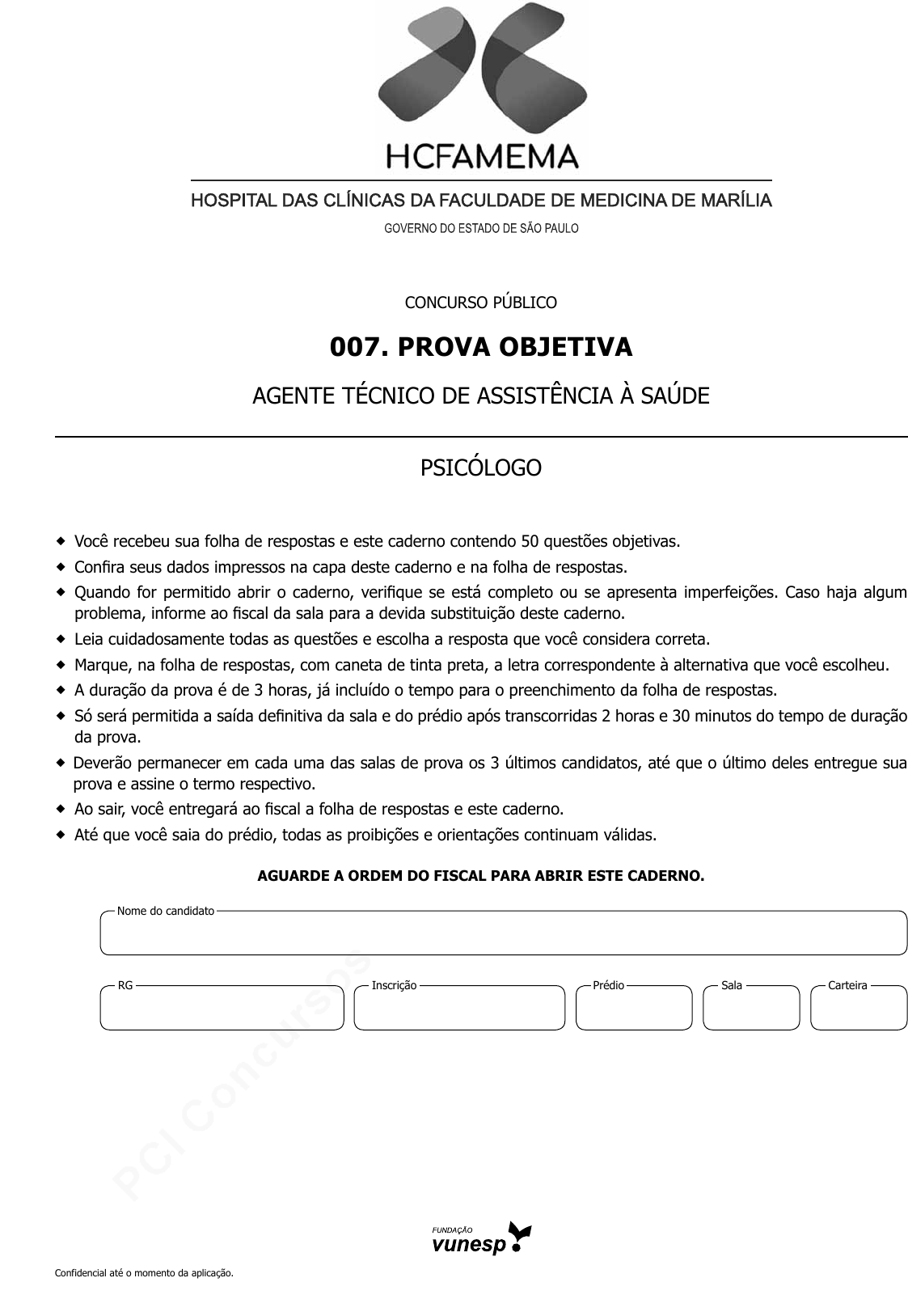 pcimarkpci MjgwNDowZDQ5OjQ4MDg6ZjcwMDoyMTE3OmVmNzA6YTJkZDpjNDg3:VHVlLCAxNiBTZXAgMjAyNSAxNzowMjoyMiAtMDMwMA== www.pciconcursos.com.br Confidencial até o momento da aplicação. ConCurso PúbliCo 007. Prova objetiva agente téCniCo de assistênCia à saúde PsiCólogo � Você recebeu sua folha de respostas e este caderno contendo 50 questões objetivas. � Confira seus dados impressos na capa deste caderno e na folha de respostas. � Quando for permitido abrir o caderno, verifique se está completo ou se apresenta imperfeições. Caso haja algum problema, informe ao fiscal da sala para a devida substituição deste caderno. � Leia cuidadosamente todas as questões e escolha a resposta que você considera correta. � Marque, na folha de respostas, com caneta de tinta preta, a letra correspondente à alternativa que você escolheu. � A duração da prova é de 3 horas, já incluído o tempo para o preenchimento da folha de respostas. � Só será permitida a saída definitiva da sala e do prédio após transcorridas 2 horas e 30 minutos do tempo de duração da prova. � Deverão permanecer em cada uma das salas de prova os 3 últimos candidatos, até que o último deles entregue sua prova e assine o termo respectivo. � Ao sair, você entregará ao fiscal a folha de respostas e este caderno. � Até que você saia do prédio, todas as proibições e orientações continuam válidas. aguarde a ordem do fiscal Para abrir este caderno. Nome do candidato Prédio sala CarteiraInscriçãorg pcimarkpci MjgwNDowZDQ5OjQ4MDg6ZjcwMDoyMTE3OmVmNzA6YTJkZDpjNDg3:VHVlLCAxNiBTZXAgMjAyNSAxNzowMjoyMiAtMDMwMA== www.pciconcursos.com.br Confidencial até o momento da aplicação. pcimarkpci MjgwNDowZDQ5OjQ4MDg6ZjcwMDoyMTE3OmVmNzA6YTJkZDpjNDg3:VHVlLCAxNiBTZXAgMjAyNSAxNzowMjoyMiAtMDMwMA== www.pciconcursos.com.br 3 HCMA2402/007-AgTécAssistSaúde-PsicólogoConfidencial até o momento da aplicação. conHecimentos gerais Língua Portuguesa 01. Leia a tira. (Mort Walker, Recruta Zero. https://cultura.estadao.com.br/quadrinhos, 16.02.2025) Considerando-se os aspectos verbais e não verbais da tira, conclui-se corretamente que a expressão “a gota d’água”, composta de termos empregados em sentido (A) figurado, faz referência à informação “tonteiras, náuseas, dor” e desencadeou uma reação de descuido do persona- gem com a própria saúde. (B) próprio, faz referência à informação “os efeitos colaterais deste remédio” e desencadeou uma reação de precaução do personagem. (C) figurado, faz referência à informação “perda de argumentos com sua esposa” e desencadeou uma reação de discor- dância e raiva no personagem. (D) próprio, faz referência à informação “perda de audição, falta de ar e perda de argumentos” e desencadeou uma reação alarmista do personagem. (E) figurado, faz referência à informação “sua esposa” e desencadeou uma reação de saudosismo e preocupação do personagem com a esposa. Portanto, investimentos são necessários nas estruturas das Residências, e o valor da bolsa demanda incremento, haja vista que a contrapartida financeira é fundamental para atrair bons residentes. Assim, conciliam-se interesses de mercado e os interesses sociais. Sem médicos devidamente especializados e qualificados, é a população quem padece. (Opinião. https://www.estadao.com.br/opiniao, 06.02.2025. Adaptado) 02. De acordo com o editorial, uma das razões que justifica o aumento de cursos de especialização em Medicina a distância é (A) a expectativa de obtenção do título de especialista, pois a legislação exige que ele seja obtido prioritaria- mente nessa modalidade de ensino. (B) o valor da bolsa, que normalmente é maior do que aquelas pagas aos alunos dos cursos semipresen- ciais e presenciais. (C) a organização curricular, pois eles são ministrados com carga horária maior que os presenciais, embora renunciem a preceptores e supervisores. (D) o saldo negativo do número de vagas para residen- tes, quando se consideram as reconhecidas pelas Sociedades Médicas das áreas. (E) o perfil da população brasileira, que padece sem m édicos bem formados e com a devida especiali- zação e qualificação. Leia o texto a seguir para responder às questões de 02 a 05: Especialização médica a distância Uma pesquisa da Faculdade de Medicina da Universi- dade de São Paulo (FMUSP) em parceria com a Associação Médica Brasileira (AMB) sobre cursos de especialização lato sensu em Medicina acende um alerta sobre a forma- ção desses profissionais. Embora o título de especialista em d eterminada área seja condicionado à realização de Resi- dência Médica, há franco crescimento de especializações que prometem o que não podem cumprir. Segundo o levantamento, são quase 2 mil cursos de especialização em Medicina, sobretudo em instituições par- ticulares. Mas 41% deles, ou 800, são promovidos na moda- lidade de ensino a distância (EAD) e 11%, ou 216, na semi- presencial. Menos da metade, ou 927 cursos, é presencial. Essa formação alternativa se impõe por vários motivos. Um deles é que o número de vagas em Residências, que são reconhecidas pelas Sociedades Médicas das áreas, é infe- rior ao de médicos formados no País. Em 2022, formaram-se 25,5 mil médicos nas faculdades do Brasil afora, mas havia apenas 16 mil vagas em Residências. A esse fenômeno se deu o nome de “déficit de oportunidades”. Se faltam oportunidades nas Residências, sobram nas especializações. Esses cursos são mais curtos e demandam menos recursos. Enquanto uma Residência exige a estrutura de um hospital de ensino, com a presença de preceptores e supervisores, com formação teórica e prática ao longo de até 2,8 mil horas, a serem concluídas entre dois e cinco anos, uma especialização pode ser realizada em 360 horas. pcimarkpci MjgwNDowZDQ5OjQ4MDg6ZjcwMDoyMTE3OmVmNzA6YTJkZDpjNDg3:VHVlLCAxNiBTZXAgMjAyNSAxNzowMjoyMiAtMDMwMA== www.