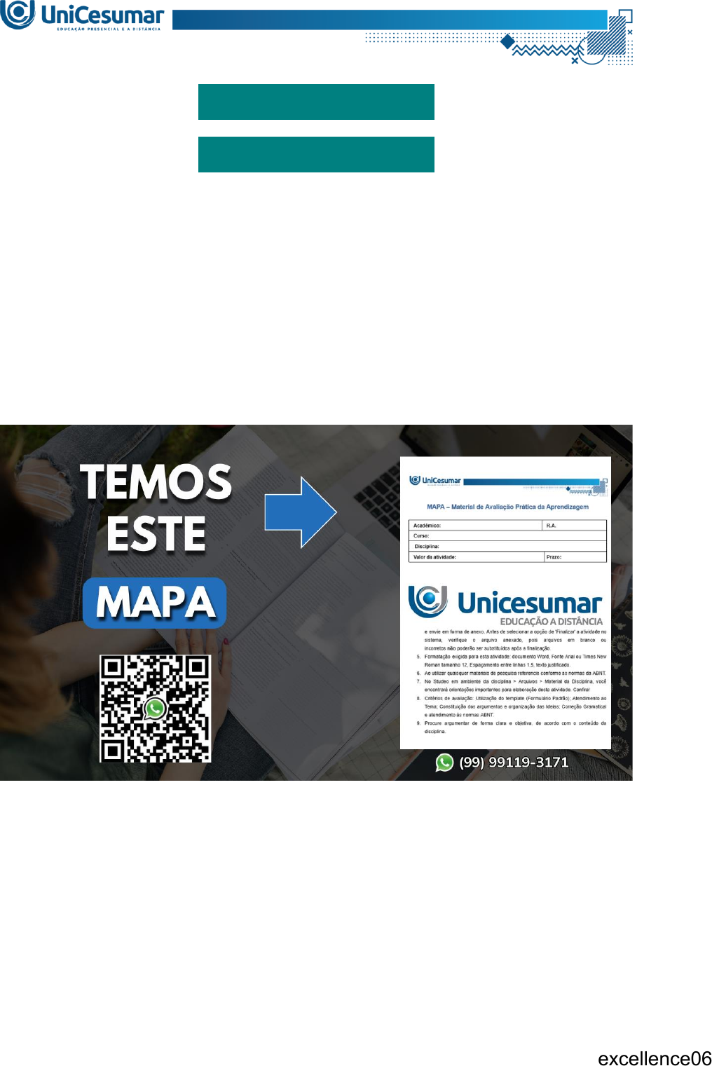 (99) 99119-3171 (99) 99119-3171 Olá!!! Somos da Assessoria Excellence Educacional e iremos te ajudar com este trabalho! Entre em contato conosco! MAPA - GEOMETRIA ANALÍTICA E ÁLGEBRA LINEAR - 53_2025 MAPA - GEOMETRIA ANALÍTICA E ÁLGEBRA LINEAR - 53_2025 excellence06 MAPA – GEOMETRIA ANALÍTICA E ÁLGEBRA LINEAR Instruções para realização e entrega da atividade 1- Todos os campos acima deverão ser devidamente preenchidos. 2- É obrigatória a utilização desse formulário para a realização do MAPA (Template). 3- Essa é uma atividade individual, visto que trabalhos copiados da internet ou de outros alunos serão zerados. 4- O trabalho pode ter quantas páginas você precisar para respondê-lo, desde que siga a sua estrutura. Preferencialmente, utilizar a formatação: fonte Arial 12, espaçamento entre linhas de 1,5 e texto justificado. 5- Assistir ao vídeo explicativo com orientações para o desenvolvimento do MAPA. 6- Ao utilizar quaisquer materiais de pesquisa, apresente as referências no final do trabalho em ordem alfabética e conforme as normas da ABNT NBR 6023:2018. Você pode utilizar esse site para orientação: https://usp.br/sddarquivos/aulasmetodologia/abnt6023.pdf. 7- Após inteiramente respondido, coloque um nome simples no seu arquivo para não haver confusão no momento do envio. Se o nome tiver caracteres estranhos, principalmente pontos, ou for muito grande, é possível que a equipe de correção não consiga abrir o seu trabalho e ele seja zerado. 8- Você entregará apenas UM ARQUIVO com suas respostas. O trabalho deve ser enviado para correção pelo seu Studeo em formato de arquivo .doc/.docx ou PDF, na forma de anexo no campo de resposta da atividade MAPA. Caso você utilize OpenOffice ou Mac, transforme o arquivo em PDF para evitar incompatibilidade. 9- Ao final do enunciado dessa atividade, aqui no Studeo, há uma caixa de envio de arquivo. Basta clicar e selecionar sua atividade ou arrastar o arquivo até ela. 10- Antes de clicar em FINALIZAR, certifique-se de que está tudo certo, pois, uma vez finalizado, você não poderá mais modificar o arquivo. Sugerimos que você faça o download para conferir se está conforme o arquivo entregue. Utilizando seus conhecimentos sobre vetores, responda às questões a seguir: 1) Dois drones estão operando no armazém. O drone A segue uma rota representada pelo vetor va = (6, 2, 3), e o drone B segue a rota vb = (4, 3, 0). Utilizando-se de produto escalar: a) Os vetores são ortogonais? b) Com base no valor do ângulo (em graus) entre os vetores, os drones estão voando em excellence06 rotas próximas ou bem diferentes? 2) Um terceiro drone deve se movimentar em uma direção simultaneamente perpendicular aos drones A e B (dados no exercício 1). a) Qual é o vetor que indica a direção e sentido do movimento do terceiro drone? b) Prove que o vetor encontrado para o drone C é perpendicular às trajetórias dos drones A e B. 3) A partir dos vetores va, vb e vc, qual o volume do galpão em que esses três drones fazem a correta distribuição? 4) Se os drones A e B iniciam o movimento no ponto P₀(1, 1, 2), dê as equações de reta vetorial, simétrica e paramétrica dos dois drones excellence06