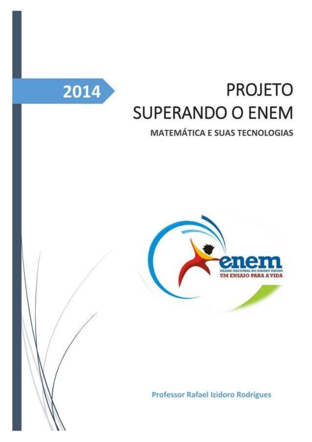 2014 PROJETO SUPERANDO ENEM MATEMÁTICA E SUAS TECNOLOGIAS enem EXAME NACIONAL DO ENSINO MEDIO UM ENSAIO PARA A VIDA Professor Rafael Izidoro RodriguesPROJETO SUPERANDO ENEM MATEMÁTICA - PROFESSOR RAFAEL IZIDORO RODRIGUES MATEMÁTICA E SUAS TECNOLOGIAS "A matemática, vista corretamente, possui não apenas verdade, mas também suprema beleza uma beleza fria e austera, como a da Bertrand Russel. Apresentação e orientações: Este material foi elaborado objetivando otimizar 0 treinamento do candidato ao Exame Nacional do Ensino Médio (ENEM), abordando como tarefa proposta as questões aplicadas nos últimos quatro anos. Este material é um caderno de atividades e todas as questões estão divididas por temas. Embora as questões estejam divididas por temas, é importante destacar que a avaliação do Enem trabalha com interdisciplinaridade, logo, poucas são as questões que abordam um único tema. Durante seus estudos, você pode optar por outros métodos (distintos dos temas citados) para as resoluções. Algumas questões se repetem em mais de um tema. Ao iniciar seus estudos, aconselha-se que as atividades sejam realizadas mais de uma vez, o quanto você puder, pois assim sua habilidade será otimizada e a avaliação do ENEM será apenas um pequeno obstáculo em sua carreira acadêmica. Segue um exemplo de como pode ser utilizado: Suponhamos que você tenha assistido uma aula sobre Geometria plana, e agora precisa aplicar seus conhecimentos e provar que sabe. Basta então, procurar tópico Geometria plana no e então divertir-se com questões que abordam o tema citado. Simples não é? Agora, se você é do tipo que gosta não só de treinar o que está aprendendo, mas também que já aprendeu, pode seguir o roteiro deste material através das etapas (recomendado). Aproveito este parágrafo para dizer que, mesmo que você já tenha domínio em determinado tópico, ao seguir o roteiro por etapas, não pule nenhuma delas, pois quanto mais você estudar mais na frente você estará. Desejo a você bons estudos, determinação e coragem, pois não existem alunos ou alunas incapazes, mas sim, alunos e alunas DEDICADOS (AS). Você pode muito mais do que imagina. E mesmo que no início as coisas estejam não desista, pois tudo aquilo que 0 homem hoje sabe, é porque um dia TENTOU, ERROU, TENTOU DE NOVO, E DE NOVO, E DE NOVO... E então, APRENDEU! Que de alguma forma, este material seja útil à Dedicado a todos aqueles (as) que acreditam que o conhecimento adquirido ontem e hoje, espelham o nosso Que nossas crianças possam nos ver como HERÓIS! Professor Rafael Izidoro Rodrigues Este material contém: Todas as questões de Matemática (180 questões) do Exame Nacional do Ensino Médio (ENEM) dos anos de 2010, 2012 e 2013. Gabarito. Este material não contém resoluções das questões. Todas as questões foram retiradas das avaliações originais do ENEM, estas obtidas por download através do site inep.gov.br. Algumas imagens foram copiadas do site veja.abril.com.br (melhor resolução da imagem).PROJETO SUPERANDO ENEM - MATEMÁTICA - PROFESSOR RAFAEL IZIDORO RODRIGUES ÍNDICE Etapa 1 - Aritmética elementar - Pg. 1. Etapa 11 - Trigonometria - - Pg. 32. Etapa 2 - Gráficos - - Pg. 3. Etapa 12 - Geometria espacial - Pg. 33. Etapa 3 - Escalas e unidades de medidas - Pg. 8. Etapa 13 - Geometria analítica - Pg. 38. Etapa 4 - Razão - Pg. 10. Etapa 14 - Estatística - Pg. 39. Etapa 5 - Proporção - Pg. 11. Etapa 15 Análise combinatória - Pg. 42. Etapa 6 - Equações - Pg. 15. Etapa 16 - Probabilidade - Pg. 43. Etapa 7 - Funções - Pg. 19. Etapa 17 Outros tópicos Pg. 47. Etapa 8 - Sequências e progressões - Pg. 22. Gabarito - Pg. 51. Etapa 9 - Porcentagem - Pg. 23. Créditos Pg. 52. Etapa 10 - Geometria plana - - Pg. 28. NOS ÚLTIMOS QUATRO ANOS, QUE ENEM COBROU DOS CANDIDATOS? Levantamento percentual: 2010 à 2013 14,00% 12,00% 10,00% 8,00% 6,00% 4,00% 2,00% 0,00% unidades / ///// que você está esperando? Vamos nessa, temos muito o que estudar!PROJETO SUPERANDO ENEM MATEMÁTICA - PROFESSOR RAFAEL IZIDORO RODRIGUES 3 (2012) Adição e subtração. Etapa 1 Aritmética elementar Jogar baralho é uma atividade que o Um jogo tradicional é a que utiliza 1 (2013) Multiplicação e 52 cartas. Inicialmente são formadas sete colunas com as A primeira coluna tem uma carta, a segunda tem o de eficiência utilizado por um produtor de leite duas cartas, a terceira tem très cartas, a quarta tem quatro para qualificar suas vacas é dado pelo produto do tempo cartas, e assim sucessivamente até a sétima coluna, a de lactação (em dias) pela produção media diária de leite qual tem sete cartas, e o que sobra forma o monte, que (em dividido pelo intervalo entre partos (em meses). são as cartas não utilizadas nas colunas. Para esse produtor, a vaca é qualificada como eficiente quando esse Indice no 281 quilogramas por A quantidade de cartas que forma o monte é mês, mantendo sempre as mesmas condições de manejo (alimentação, vacinação e outros). Na comparação de duas 21. D 28. ou mais vacas, a mais eficiente a que tem maior A tabela apresenta os dados coletados de cinco vacas: 24. E 31. 26. Dados relativos a produção das vacas Tempo de Produção média Intervalo 4 (2012) - Multiplicação e adição Tabelas. Vaca lactação diária de leite entre partos (em dias) (em kg) (em meses) Uma pesquisa realizada por estudantes da Faculdade Malhada 360 12,0 15 de Estatística mostra, em horas por dia, como os jovens Mamona 310 11.0 12 entre 12 e 18 anos gastam seu tempo, tanto durante a Maravilha 260 14,0 12 semana (de segunda-feira a como no fim de Mateira 310 13,0 13 semana (sábado e domingo). A seguinte tabela ilustra os Mimosa 270 12,0 11 resultados da pesquisa. Após a análise dos dados, produtor avaliou que a vaca mais eficiente é a Durante a No fim de Rotina Juvenil Após a análise dos dados, o produtor avaliou que a vaca semana semana mais eficiente é a D Mateira. Assistir 
