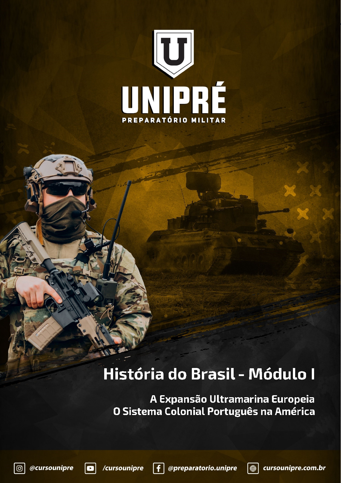 História https://www.cursounipre.com.br/ https://www.cursounipre.com.br/ http://bit.ly/2KTg1ae http://bit.ly/2KTg1ae http://bit.ly/2KTg1ae https://www.instagram.com/cursounipre https://www.instagram.com/cursounipre https://www.instagram.com/cursounipre https://www.facebook.com/preparatorio.unipre https://www.facebook.com/preparatorio.unipre Aula 01 - A Expansão Ultramarina Europeia ............................................................................. 4 A Escola da Sagres ................................................................................................................................................. 4 Novas tecnologias .................................................................................................................................................. 5 Causas da expansão Marítima ............................................................................................................................... 5 Os Tratados feitos com a Espanha ........................................................................................................................ 6 A Viagem de Cabral ................................................................................................................................................ 7 Aula 01 - Exercícios – Expansão Ultramarina Europeia ...................................................................................... 10 Aula 02 a 06 - O Sistema Colonial Português na América ....................................................... 17 Aula 02 - Expedições Exploradoras ou de Reconhecimento ............................................................................... 17 Aula 03 - As Capitanias Hereditárias ................................................................................................................... 21 Aula 03 - Os Governos Gerais ............................................................................................................................... 22 Aula 03 - Exercícios – Estrutura Política .............................................................................................................. 25 Aula 04 – União Ibérica - O Domínio Espanhol (1580 a 1640) ............................................................................ 30 Aula 04 - Ciclo econômico Brasileiro ................................................................................................................... 32 Aula 04 - Exercícios – Brasil Pré-Colonial, Economia Açucareira ....................................................................... 35 Aula 04 - As Invasões Estrangeiras (Franceses e Holandeses) .......................................................................... 43 Aula 05 – Economia Mineradora.......................................................................................................................... 46 Aula 05 - Exercícios - Economia Mineradora ....................................................................................................... 49 Aula 05 - A Interiorização e a Formação das Fronteiras ..................................................................................... 55 Aula 06 – Tratados e Limites ............................................................................................................................... 57 Aula 06 - Exercícios - Tratados e Limites ............................................................................................................. 60 Aula 02 a 06 - Exercícios – Sistema Colonial Português .................................................................................... 63 www.cursounipre.com.br História EsPCEx - Escola Preparatória de Cadetes do Exército Assunto Porcentagem O Sistema Colonial Português na América 16,67% O Brasil Imperial 13,33% O Renascimento Cultural, o Humanismo e as Reformas Religiosas 10,00% O Mundo na Época da Segunda Guerra Mundial 8,33% O Mundo no Auge da Guerra Fria 8,33% O Mundo na Época da Primeira Guerra Mundial 6,67% Os Estados Nacionais Europeus da Idade Moderna, o Absolutismo e o Mercantilismo. 6,67% A Independência dos Estados Unidos da América. 5,00% A Revolução Francesa e a Restauração (o Congresso de Viena e a Santa Aliança) 5,00% A Sociedade Feudal (Século V ao XV) 3,33% A Expansão Marítima Europeia 3,33% As Revoluções Inglesas (Século XVII) e a Revolução Industrial (Século XVIII a XX). 3,33% O Pensamento e a Ideologia no Século XIX * 3,33% O Mundo no Final do Século XX e 3,33% Início do Século XXI * 1,67% O Renascimento Comercial e Urbano 1,67% O Iluminismo e o Despotismo Esclarecido 0,00% A Montagem da Colonização Europeia na América 16,67% www.cursounipre.com.br Chamamos de expansão marítima ao processo de saída do homem europeu em busca de riquezas em outros continentes via Oceano Atlântico, conhecido à época como Mar Tenebroso. Cabe aqui ressaltar que este foi um processo lento, fruto da união de diversos fatores e interesses. Portugal foi o primeiro país da Europa a se atirar na aventura atlântica concorrendo para isso diversos fatores. Ocupou sempre lugar de destaque na economia lusa a atividade pesqueira, sendo esta a origem da experiência portuguesa em navegação, mas o projeto expansionista português, data do início do século XV. O comércio foi o grande motor da expansão marítima portuguesa, pois as famosas especiarias (pimenta, canela, gengibre, noz moscada etc.), para serem distribuídas para o Norte da Europa, passavam pelos portos portugueses estimulando o comércio. No entanto, as especiarias atingiam preços absurdos quando chegavam a Portugal devido à distância dos centros produtores e ao monopólio exercido pelas cidades italianas de Gênova e Veneza na compra dos produtos em Constantinopla. A situação piorou de- pois de 1453, devido à tomada de Constantinopla pelos turcos, dificultando o comércio de especiarias pelo Mar Mediterrâneo. A solução encont