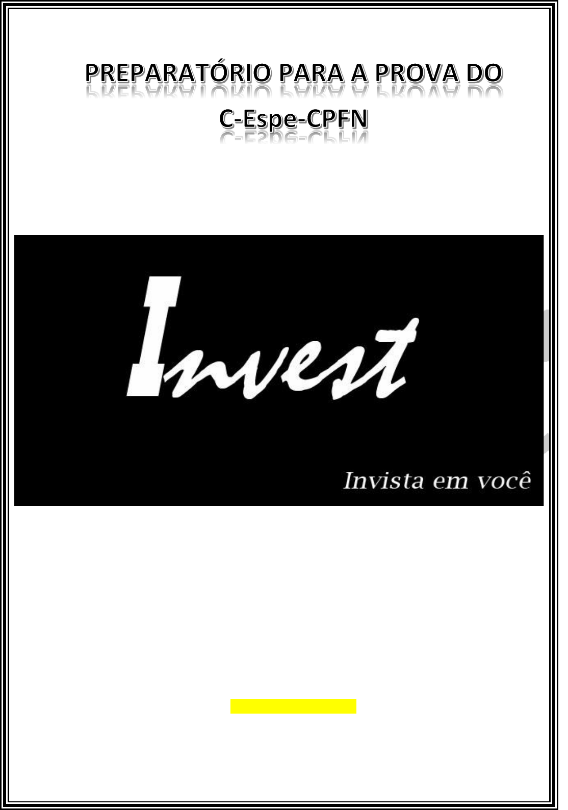 MATERIAL ATUALIZADO CONFORME A PORTARIA Nº 169/CPesFN PROFESSOR: 2° SG-FN-EF COSTA ALUNO: ____________________ (APOSTILA ATUALIZADA) Comece fazendo o que é necessário, depois o que é possível, e de repente você estará fazendo o impossível... São Francisco de Assis 2 Invest – invista em você ÍNDICE a) Cerimonial da Marinha (PÁG 11 A 16) I) Propósito e Conceituação Básica (Art.1-1-1 ao 1-1-8, 1-1-18 e Art.1-1-19); II) Permissão para largar ( Art. 1-2-5); III) Embarque e Desembarque de Embarcação (Art.1-2-6); IV) Dispensa de Continência Individual (Art.1-2-7); V) Quando a Continência Individual não é executada (Art. 1-2-8); VI) Honras de Portaló (Art.1-3-1); VII) Cerimonial à Bandeira (Art.2-2-4); VIII) Procedimentos em Veículos (Art.2-2-7); IX) Iluminação (Art. 2-2-15); X) Modo de dobrar (Art. 2-2-16); XI) Guarda da Bandeira (Art. 2-2-17); XII) Entrada e Saída de Bordo (Art. 2-2-22); XIII) Saudação Diária (Art. 2-2-23); XIV) Saudação à Passagem (Art. 2-2-24); XV) Arriamento Seguido de Hasteamento (Art. 2-2-25); XVI) Hasteamento e Arriamento sem Cerimonial (Art. 2-2-26); XVII) Proibições (Art. 2-2-27); XVIII) Bandeira da Cruz Vermelha (Art. 2-3-4) XIX) Direito às Honras de Portaló (Art.5-1-1); XX) Presença a Bordo de Autoridade de Maior Precedência (Art.5-1-3); XXI) Número de “Boys” (Art.5-1-8); XXII) Datas Festivas (Art. 7-1-1); XXIII) Dias de Grande Gala (Art. 7-1-2); e XXIV) Dias de Pequena Gala (Art. 7-1-3). b) Estatuto dos Militares (PÁG 17 A 31) I) Disposições Preliminares (Título I: Cap. I); II) Da Hierarquia Militar e da Disciplina (Título I: Cap. III); III) Das Obrigações Militares (Título II: Cap. I, do Art. 27 ao Art. 29); IV) Dos Deveres Militares (Título II: Cap. II); V) Da Violação das Obrigações e dos Deveres Militares (Título II: Cap. III, do Art. 42 ao Art. 47); VI) Dos Direitos (Título III: Cap. I); e VII) Das Prerrogativas (Título III: Cap. II). c) Regulamento Disciplinar para a Marinha (PÁG 32 A 42) I) Generalidades (Art. 1º ao Art. 5º); II) Das Contravenções Disciplinares (Art. 6º ao Art. 12); e III) Das Penas Disciplinares (Art. 13 ao Art. 39). d) Ordenança Geral para o Serviço da Armada (PÁG 43 A 52) I) Disposições Gerais (Art. 2-1-1 ao 2-1-13); II) Disposições Gerais (Art. 4-1-1 ao 4-1-39); III) Deveres das Praças (Art. 4-4-1 ao 4-4-5); e IV) Guardas e Sentinelas (Art. 8-3-1 ao 8-3-10). 2. MANUAL BÁSICO DO FUZILEIRO NAVAL a) O Corpo de Fuzileiros Navais (Cap. 1) (PÁG 53 A 57) I) Histórico dos Fuzileiros Navais (Art. 1.1) II) Antecedentes (Inciso 1.1.1); 3 Invest – invista em você III) Primeira Fase (Inciso 1.1.2); IV) Segunda Fase (Inciso 1.1.3); e V) Terceira Fase (Inciso 1.1.4). b) Tradições Navais (Cap. 2) (PÁG 58 A 65) I) Generalidades (Art. 2.1); II) A Gente de Bordo (Art. 2.3); III) O Pessoal do Serviço (Art. 2.4); IV) O Oficial de Quarto ou de Serviço (Inciso 2.4.1); V) O Contramestre (Inciso 2.4.3); VI) O Polícia (Inciso 2.3.3); VII) O Ronda/O Mensageiro (Inciso 2.4.4); VIII) A Sentinela (Inciso 2.4.5); IX) A Rotina de Bordo (Art. 2.5); X) O Sino de Bordo (Inciso 2.5.1); XI) O Apito do Marinheiro (Inciso 2.5.2); XII) Eventos da Rotina Normal (Inciso 2.5.3); XIII) Costumes Rotineiros (Art. 2.6); XIV) Saudação entre militares (Inciso 2.6.1); XV) Saudar o Oficial de serviço (Inciso 2.6.2); XVI) Saudar a Bandeira nacional (Inciso 2.6.3); XVII) Dar o pronto da execução de ordem recebida (Inciso 2.6.4); XVIII) Uniformes a bordo (Inciso 2.6.5); XIX) Instalações de Bordo (Art. 2.7); XX) Alojamentos (Inciso 2.7.1); XXI) Ranchos (Inciso 2.7.2); XXII) Praça d’armas (Inciso 2.7.3); XXIII) Escoteria (Inciso 2.7.4); XXIV) Sala de Estado (Inciso 2.7.5); XXV) Salao de Recreio (Inciso 2.7.6); XXVI) Paiol (Inciso 2.7.7); XXVII) Bailéu (Inciso 2.7.8); XXVIII) Secretaria (Inciso 2.7.9); XXIX) Corpo da Guarda (Inciso 2.7.10); XXX) As Fainas (Art. 2.8); XXXI) Os Uniformes (Art. 2.9); XXXII) Uniformes Característicos (Inciso 2.9.1); XXXIII) A Linguagem do Mar (Art. 2.10); XXXIV) O navio e as posições relativas a bordo (Inciso 2.10.1); e XXXV) Expressões do cotidiano (Inciso 2.10.2). c) Hierarquia, Disciplina e Cortesia (Cap. 3) (PÁG 66 A 69) I) Hierarquia e Disciplina (Art. 3.1); II) Cortesia Militar (Art. 3.2); III) Continência (Art. 3.3); IV) Apresentações - Tratamento entre Militares (Art. 3.5); V) Procedimentos do Fuzileiro Naval em Diversas Situações (Art. 3.6); e VI) Postos, Graduações e precedências entre militares (Art. 3.7). d) Legislação Pertinente aos Militares da Marinha do Brasil (Cap. 4) (PÁG 70 A 73) I) Introdução (Art. 4.1); II) Leis e Regulamentos (Art. 4.2); 4 Invest – invista em você III) Constituição Federal (CF) (Inciso 4.2.1); IV) Estatuto dos Militares (EM) - Lei 6.880/80 (Inciso 4.2.2); V) Regulamento Disciplinar para a Marinha (RDM) - Decreto 88.545/83 (Inciso 4.2.3); VI) Código Penal Militar (CPM) - Decreto-Lei 1.001/69 (Inciso 4.2.4); VII) Código de Processo Penal Militar (CPMM) - Decreto-lei n° 1.002/1969 (Inciso 4.2.5); VIII) Remuneraçao dos Militares – Medida Provisória n° 2.215-10/2001 (Inciso 4.2.6); IX) Planejamento de carreira (Inciso 4.2.7); X) Regulamento de Promoção de Praças da Marinha (RPPM) – Decreto 4.034/2001 (Inciso 4.2.8); XI) Cerimonial da Marinha - Portaria nº 368/MB/2016 (Inciso 4.2.9); XII) Regulamento de Uniformes da Marinha do Brasil (RUMB) - Portaria n° 424/MM/1994 (Inciso 4.2.10); XIII) Regulamento de Continências, Honras, Sinais de Respeito e Cerimonial Militar das Forças Armadas (Rcont) - Portaria GM-MD n° 1.143/2022 (Inciso 4.2.11); XIV) Ordenança Geral para o Serviço da Armada (OGSA) - Decreto n° 95.480/1987 (Inciso 4.2.12); XV) Normas Gerais para a Organização, o Preparo e o Emprego das Forças Armadas - Lei Complementar n° 97/99 (Inciso 4.2.13); XVI) Conselho de Justificação - Lei n° 5.836/1972 (Inciso 4.2.14); XVII) Conselho de Disciplina - Decreto 71.200/72 (Inciso 4.2.15);