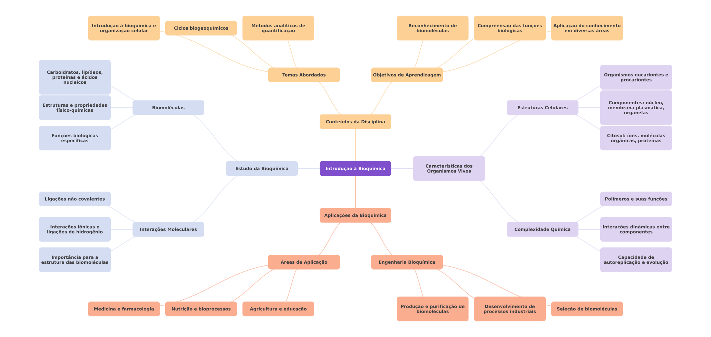 Introdução à bioquímica e Métodos analíticos de Reconhecimento de Ciclos biogeoquímicos Compreensão das funções Aplicação do conhecimento organização celular quantificação biomoléculas biológicas em diversas áreas Carboidratos, lipídeos, Temas Abordados proteínas e ácidos Objetivos de Aprendizagem Organismos eucariontes e nucleicos procariontes Componentes: núcleo, Estruturas e propriedades Biomoléculas Estruturas Celulares físico-químicas membrana plasmática, organelas Conteúdos da Disciplina Funções biológicas Citosol: íons, moléculas específicas orgânicas, proteínas Características dos Estudo da Bioquímica Introdução à Bioquímica Organismos Vivos Ligações não covalentes Polímeros e suas funções Aplicações da Bioquímica Interações iônicas e ligações de hidrogênio Interações Moleculares Complexidade Química Interações dinâmicas entre componentes Importância para a Capacidade de estrutura das biomoléculas Áreas de Aplicação Engenharia Bioquímica autoreplicação e evolução Medicina e farmacologia Nutrição e bioprocessos Agricultura e educação Produção e purificação de Desenvolvimento de biomoléculas processos industriais Seleção de biomoléculas