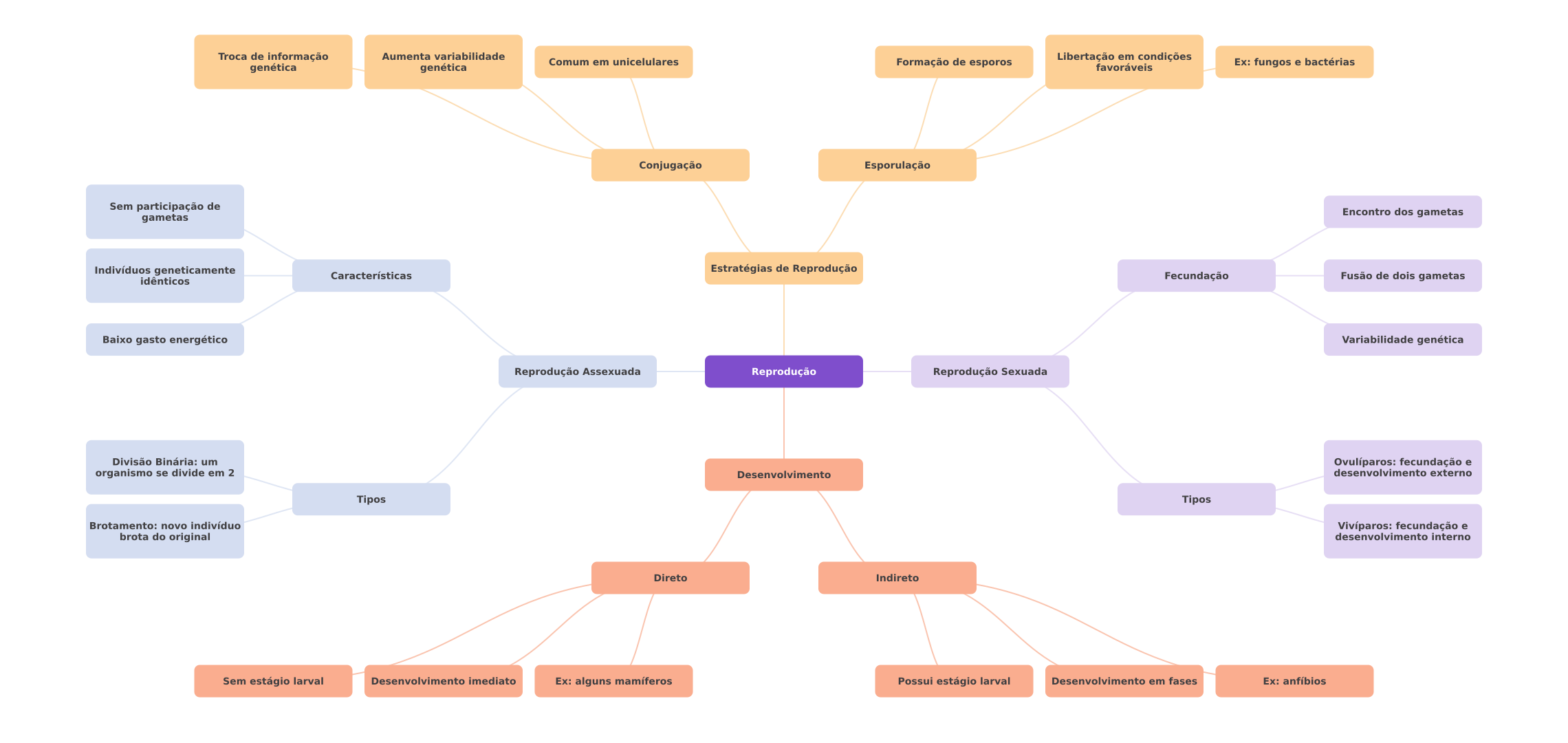 Troca de informação Aumenta variabilidade Comum em unicelulares genética genética Formação de esporos Libertação em condições favoráveis Ex: fungos e bactérias Conjugação Esporulação Sem participação de gametas Encontro dos gametas Indivíduos geneticamente Estratégias de Reprodução Características idênticos Fecundação Fusão de dois gametas Baixo gasto energético Variabilidade genética Reprodução Assexuada Reprodução Reprodução Sexuada Divisão Binária: um Ovulíparos: fecundação e organismo se divide em 2 Desenvolvimento desenvolvimento externo Tipos Tipos Brotamento: novo indivíduo Vivíparos: fecundação e brota do original desenvolvimento interno Direto Indireto Sem estágio larval Desenvolvimento imediato Ex: alguns mamíferos Possui estágio larval Desenvolvimento em fases Ex: anfíbios