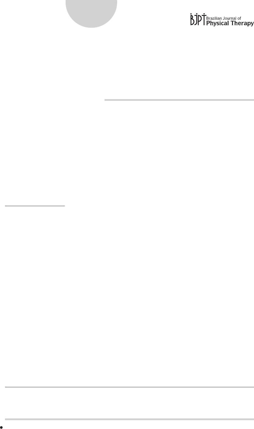 http://dx.doi.org/10.1590/bjpt-rbf.2014.0051 402 Braz J Phys Ther. 2014 Sept-Oct; 18(5):402-409 original article Low back pain in adolescent and associated factors: A cross sectional study with schoolchildren Dor lombar em adolescentes e fatores associados: Um estudo transversal com escolares Mônica R. O. G. C. M. Silva1, Ana Fátima V. Badaró2, Marinel M. Dall’Agnol3 ABSTRACT | Objective: To determine the prevalence of low back pain nonspecific and associated factors in schoolchildren. Method: This cross-sectional study investigated 343 adolescents, aged between 12 and 15 years, of both sexes of public schools. The questionnaire included questions regarding sociodemographic characteristics, type of school transportation, body mass index and low back pain. The outcome was defined as discomfort localized below the costal margin and above the inferior gluteal folds in the last 12 months. Results: The prevalence of low back pain in the last year was 57% (n=195) among participants, with no significant difference between the sexes (OR 1.13, 95% CI 0.93 to 1.37). Advancing age and body mass index were associated with the presence of low back pain in the bivariate analysis. The remaining seated at school in usual days was considered one of the main activities that trigger symptoms that lasted up to seven days for the majority (80%) of adolescents. Conclusions: The high prevalence of low back pain presented, indicating that it is a common condition among these adolescents. There was no difference between the sexes, but had influence of age and body mass index. Our results point to the need for the development epidemiological studies of low back pain among children and adolescents. Keywords: low back pain; prevalence; epidemiology; adolescent; rehabilitation. HOW TO CITE THIS ARTICLE Silva MROGCM, Badaró AFV, Dall’Agnol MM. Low back pain in adolescent and associated factors: A cross sectional study with schoolchildren. Braz J Phys Ther. 2014 Sept-Oct; 18(5):402-409. http://dx.doi.org/10.1590/bjpt-rbf.2014.0051 RESUMO | Objetivo: Determinar a prevalência de dor lombar não específica e fatores associados em escolares. Método: Este estudo transversal investigou 343 adolescentes, com idade entre 12 e 15 anos, de ambos os sexos, de escolas públicas municipais. O questionário abordava características sociodemográficas, tipo de transporte escolar, índice de massa corporal e dor lombar. O desfecho foi definido como desconforto localizado abaixo da margem costal e acima das pregas glúteas inferiores nos últimos 12 meses. Resultados: A prevalência de lombalgia no último ano foi de 57% (n=195) entre os participantes, sem diferença significativa entre os sexos (RP=1,13; IC95% 0,93-1,37). O avanço da idade e o índice de massa corporal foram as variáveis associadas à presença de dor lombar na análise bivariada. O permanecer sentado na escola em dias habituais foi apontado como uma das principais atividades desencadeadoras dos sintomas que tiveram duração de até sete dias para a maioria (80%) dos adolescentes. Conclusões: A dor lombar apresentou alta prevalência, indicando que é uma condição comum entre esses adolescentes. Não houve diferença entre os sexos, entretanto teve influência da idade e do índice de massa corporal. Nossos resultados apontam para a necessidade de estudos epidemiológicos sobre dor lombar entre crianças e adolescentes. Palavras-chave: dor lombar; prevalência; epidemiologia; adolescente; reabilitação. 1Centro de Ciências da Saúde (CCS), Universidade Federal de Santa Maria (UFSM), Santa Maria, RS, Brasil 2Departamento de Fisioterapia e Reabilitação, CCS, UFSM, Santa Maria, RS, Brasil 3Departamento de Saúde da Comunidade, CCS, UFSM, Santa Maria, RS, Brasil Received: 07/10/2013 Revised: 11/25/2013 Accepted: 02/10/2014 Dor lombar em adolescentes 403 Braz J Phys Ther. 2014 Sept-Oct; 18(5):402-409 Introdução A dor lombar (DL) ou lombalgia é considerada uma dor ou um desconforto na região lombar, localizada abaixo da margem costal e acima das pregas glúteas, irradiada ou não para a coxa1. Por ser uma experiência sensorial ou emocional, a dor pode estar associada a um trauma, o que torna difícil o seu diagnóstico2, pois diversos fatores (fisiológicos, emocionais e culturais) tornam a resposta ao estímulo doloroso diferente de indivíduo para indivíduo. Desse modo, é um desafio caracterizar e descrever essa experiência multidimensional ou quantificá-la em números ou dados mensuráveis devido à sua subjetividade3. O diagnóstico da DL pode ser obtido por meio da história clínica do paciente juntamente com um exame físico específico e, então, classificá-la em uma das três categorias: 1) DL potencialmente associada à causa específica da coluna vertebral; 2) DL potencialmente associada à estenose espinhal; ou 3) DL não específica1. As duas primeiras apresentam etiologia definida, em que a dor é proveniente de uma causa específica, (congênita, neoplásica, inflamatória, infecciosa, metabólica, traumática, degenerativa ou funcional) e alcança menos que 15% da população de adultos, crianças e adolescentes4. Porém, na maioria das vezes, não se consegue determinar o agente causal, então, recebe o diagnóstico de DL não específica5. Na Europa, a incidência anual acumulada desses sintomas atinge 24% dos adolescentes6, com prevalência que alcança mais da metade desses indivíduos7,8 e tem se tornado uma condição tão comum quanto em adultos, podendo atingir de 70 a 80% da população até os 20 anos de idade 9. Diversas investigações sobre DL em crianças e adolescentes foram realizadas em outros países7-9, porém poucos estudos observaram a situação desse sintoma na faixa etária em questão no Brasil10-12. Além disso, observa- se grande amplitude entre as prevalências encontradas em estudos brasileiros, variando de 13% a 49% em indivíduos entre 11 e 19 anos de idade11,12. Em relação à etiologia da DL 