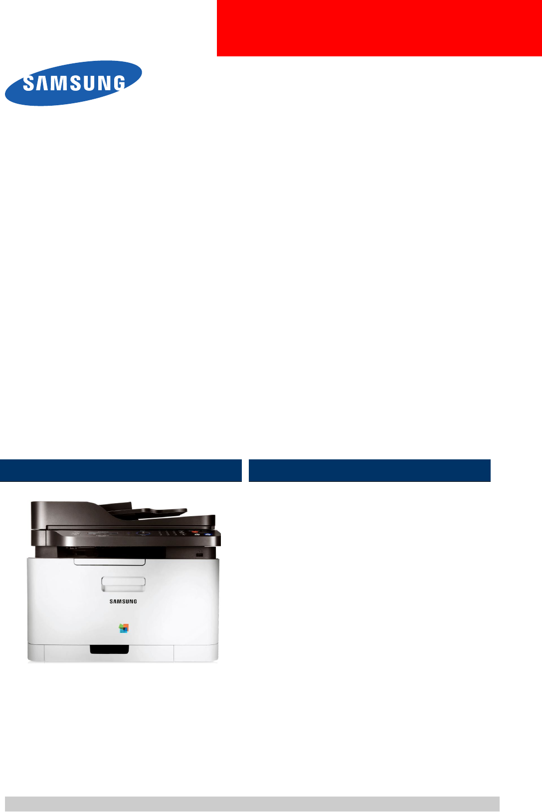 Color Laser MFP Xpress C460 series C460W / C460FW (Ver 1.0) SERVICE MANUAL Color Laser MFP Contents 1. Precautions 2. Product specification and description 3. Disassembly and Reassembly 4. Alignment and Troubleshooting 5. System Diagram 6. Reference Information Refer to the service manual in the GSPN (see the rear cover) for more information. Contents Contents 1. Precautions ...................................................................................................................................... 1 − 1 1.1. Safety warning ........................................................................................................................ 1 − 1 1.2. Caution for safety .................................................................................................................... 1 − 2 1.2.1. Toxic material............................................................................................................. 1 − 2 1.2.2. Electric shock and fire safety precautions ......................................................................... 1 − 2 1.2.3. Handling precautions ................................................................................................... 1 − 4 1.2.4. Assembly and Disassembly precautions ........................................................................... 1 − 4 1.2.5. Disregarding this warning may cause bodily injury ............................................................ 1 − 5 1.3. ESD precautions ...................................................................................................................... 1 − 6 2. Product specification and description..................................................................................................... 2 − 1 2.1. Product Specification................................................................................................................ 2 − 1 2.1.1. Product Overview........................................................................................................ 2 − 1 2.1.2. Specifications ............................................................................................................. 2 − 2 2.1.2.1. General Print Engine...................................................................................... 2 − 2 2.1.2.2. Copy........................................................................................................... 2 − 2 2.1.2.3. Scan ........................................................................................................... 2 − 4 2.1.2.4. Fax (C460FW only)....................................................................................... 2 − 4 2.1.2.5. Controller and Software.................................................................................. 2 − 6 2.1.2.6. Paper Handling ............................................................................................. 2 − 8 2.1.2.7. Reliability and Service ................................................................................... 2 − 8 2.1.2.8. Environment ................................................................................................ 2 − 9 2.1.2.9. Consumables ................................................................................................ 2 − 9 2.1.2.10. Maintenance Parts ......................................................................................... 2 − 10 2.1.3. Model Comparison Table .............................................................................................. 2 − 11 2.2. System Overview..................................................................................................................... 2 − 12 2.2.1. Front View ................................................................................................................. 2 − 12 2.2.2. Rear View.................................................................................................................. 2 − 14 2.2.3. Paper Path.................................................................................................................. 2 − 15 2.2.4. System Layout ............................................................................................................ 2 − 16 2.2.4.1. Feeding Section ............................................................................................ 2 − 17 2.2.4.2. Transfer Roller ............................................................................................. 2 − 18 2.2.4.3. Drive Unit ................................................................................................... 2 − 18 2.2.4.4. Fuser Unit.................................................................................................... 2 − 19 2.2.4.5. LSU (Laser Scanner Unit)............................................................................... 2 − 20 2.2.4.6. Toner Cartridges and Imaging Unit ................................................................... 2 − 21 2.2.5. Hardware configuration ................................................................................................ 2 − 22 2.2.5.1. Main board .................................................................................................. 2 − 24 2.2.5.2. OPE board ................................................................................................... 2 − 26 i Copyright© 1995-2013 SAMSUNG. All rights reserved. Contents 2.2.5.3. Fax board (C460FW only) .............................................................................. 2 − 28 2.2.5.4. Connection board .......................................................................................... 2 − 28 2.2.5.5. CTD (Color Tone Density) board ..................................................................... 2 − 29 2.2.5.6. CRUM Joint board ........................................................................................ 2 − 29