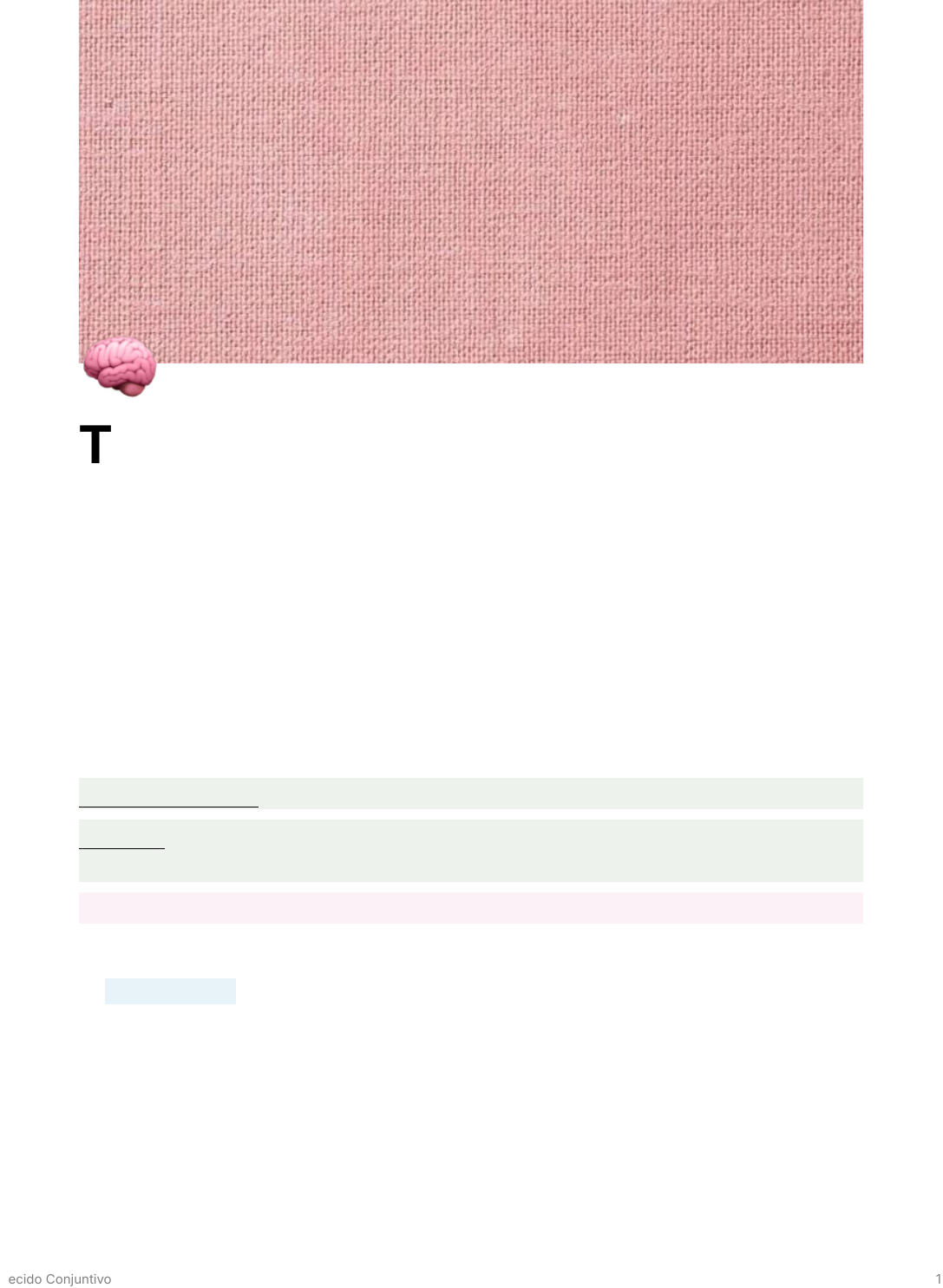 🧠 Tecido Conjuntivo Visão geral do tecido: → formado por células e MEC. MEC fibras proteicas (colágenas, elásticas e reticulares) e moléculas especializadas (proteoglicanos, glicoproteínas e glicosaminoglicanos), que consistem a subst. fundamental amorfa. → é limitado pelas lâminas basais dos vários epitélios e pelas lâminas basais ou externas das células musculares e das células de sustentação dos nervos. Origem do tecido → mesoderma → células mesenquimais Funções → suporte estrutural, transporte de substâncias, defesa e armazenamento de energia Tecido Conjuntivo Embrionário classificações → mesênquima: encontrado no embrião, tecido com junções comunicantes, o espaço MEC é ocupado por uma subst. fundamental viscosa, na qual é observado fibras colágenas e reticulares, ambas delgadas. Tecido Conjuntivo 1 a escassez de fibras colágenas é condizente com o limitado estresse físico sobre o feto em crescimento. → tecido conjuntivo mucoso: característico do cordão umbilical. Tecido Conjuntivo 2 com a MEC especializada, semelhante a uma gelatina, composta por ácido hialurônico, a subst. fundamental é chamada de geleia de Wharton. Essa geleia ocupa espaços intercelulares localizados entre fibras colágenas delgadas e delicadas algumas células da geleia de Wharton tem quantidade significativa de células-tronco mesenquimatosas e tem a capacidade de se diferenciar em osteócitos, condrócitos, adipócitos e alguns tipos de células neural. denominação de células - tronco mesenquimatosas da geleia de Wharton, e no futuro podem ter aplicação terapêutica. Tecido Conjuntivo 3 Tecido Conjuntivo Propriamente Dito dividido em duas categorias → Tecido Conjuntivo Frouxo ou tecido areolar muito celularizado com fibras colágenas delgadas e relativamente esparsas (distribuídas de forma irregular) a subst. fundamental é abundante e ocupa maior volume que as fibras. função → difusão de oxigênio e de nutrientes a partir de pequenos vasos, difusão de CO2 e restos metabólicos de volta aos vasos. localizado abaixo dos epitélios que cobrem as superfícies corporais e que revestem as superfícies internas do corpo. também está associado aos epitélios de glândulas e circunda os vasos sanguíneos de menor calibre. constitui o local das reações inflamatórias e imunes, durante essas reações o tecido conjuntivo frouxo pode intumescer consideravelmente (aumentar o volume/dilatar). → Tecido Conjuntivo Denso → com duas classificações não modelado ou modelado. não modelado muitas fibras colágenas e poucas células. as células são esparsas e predominante de fibroblastos, tem alta resistência . a pele contém uma camada espessa de tec. conj. denso não modelado denominada de camada reticular ou profunda da derme → resistência a laceração Tecido Conjuntivo 4 os órgãos ocos contem uma camada de tec. conj. denso não modelado chamado de submucosa. → resistir ao estiramento e a distensões fortes. o colágeno está nas fibras densa não modelado, logo percebe-se que são mais abundantes. denso modelado é o principal componente funcional dos tendões, ligamentos e das aponeuroses (lâmina que cobre os músculos). a MEC não fibrilar é escassa, e as fibras são dispostas em séries paralelas e são densamente acondicionadas para proporcionar a força máxima ao tecido. Tendões: inserem o músculo ao osso. Consistem em feixes paralelos de fibras colágenas, os tendinócitos são circundados por MEC especializada, que os separa das fibrilas colágenas responsável pela suspensão de carga. Em geral, o tendão é subdividido em fascículos pelo endotendíneo, uma extensão de tecido conjuntivo, e contém os pequenos vasos sanguíneos e nervos. Tecido Conjuntivo 5 Ligamentos: ligam um osso ao outro, e consistem em fibras colágenas e fibroblastos dispostos paralelamente. Há os ligamentos elásticos, quando há mais fibras elásticas do que fibras colágenas, como na coluna vertebral. Aponeuroses: dispostas em múltiplas camadas, encontrado na córnea e é responsável pela sua transparência. Fibras Colágenas do Tec. Conjuntivo → Fibras Colágenas: são as mais abundantes no tecido conjuntivo, flexíveis e tem resistência à tração notadamente alta. Contém as fibrilas colágenas que são subunidades dessas fibras. Tecido Conjuntivo 6 cada molécula de colágeno consiste em três cadeias polipeptídicas, conhecidas como cadeias alfa. O colágeno é descrito como uma glicoproteína. Colágeno tipo I encontrado no tecido conjuntivo frouxo e denso, é heterotrimétrico. Colágeno tipo II encontrado na cartilagem hialina e elástica, é homotrimétrico. Colágenos fibrilares Colágeno transmembrana → encontrados nas adesões focais, hemidesmossos, células cancerosas metastáticas e em um colágeno específico do cérebro XXV Colágenos formadores de membrana basal → Fibras Reticulares: constituída por fibrilas colágenas, composta por colágeno tipo III. No tecido conjuntivo frouxo, as fibras reticulares são encontradas no limite entre o tecido conjuntivo e o epitélio, circundado os adipócitos, os pequenos vasos sanguíneos, nervos e células musculares. Também se encontra nos tecidos embrionários. São proeminentes no processo de cicatrização de feridas e na formação de tecido fibrótico (proporciona força mecânica inicial para a MEC). Tecido Conjuntivo 7 Conforme o processo de desenvolvimento embrionário e o de cicatrização de ferida as fibras reticulares vão sendo substituídas por fibras colágenas. Também funcionam como estroma de sustentação nos tecidos hematopoiéticos e linfático (exceto o timo). → Fibras Elásticas: mais delgadas que as fibras colágenas e estão disposta em forma de rede tridimensional, são mais flexível que o colágeno Essas fibras são entrelaçadas com as fibras colágenas para limitar a distensibilidade do tecido e evitar a laceração por estiramento excessivo. Tecido