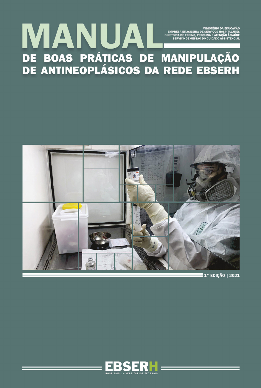 2 EMPRESA BRASILEIRA DE SERVIÇOS HOSPITALARES Tipo de Documento Título do Documento Manual Manual de Boas Práti cas de Manipulação de Anti neoplásicos da Rede EBSERH MA.SGCA.002 - Página X/X Emissão: xx/xx/2021 Versão: 01 Próxima revisão: xx/xx/2021 EMPRESA BRASILEIRA DE SERVIÇOS HOSPITALARES EMPRESA BRASILEIRA DE SERVIÇOS HOSPITALARES Tipo de Documento Título do Documento Manual Boas Práti cas de Manipulação de Anti neoplásicos da Rede EBSERH MA.SGCA.002 - Página 1/372 Emissão: 01/07/2021 Versão: 01 Próxima revisão: 01/07/2023 EMPRESA BRASILEIRA DE SERVIÇOS HOSPITALARES EMPRESA BRASILEIRA DE SERVIÇOS HOSPITALARES Tipo de Documento Título do Documento Manual Boas Práti cas de Manipulação de Anti neoplásicos da Rede EBSERH MA.SGCA.002 - Página 2/372 Emissão: 01/07/2021 Versão: 01 Próxima revisão: 01/07/2023 EMPRESA BRASILEIRA DE SERVIÇOS HOSPITALARES PRESIDENTE Oswaldo de Jesus Ferreira VICE-PRESIDENTE Eduardo Chaves Vieira DIRETOR DE ENSINO, PESQUISA E ATENÇÃO À SAÚDE Giuseppe Cesare Gatt o COORDENADORA DE GESTÃO DA CLÍNICA Rosana Reis Nothen CHEFE DO SERVIÇO DE GESTÃO DO CUIDADO ASSISTENCIAL Ricardo Malaguti FOTO CAPA Farmacêuti cas Vanessa Flores (personagem) e Lenise Silva (fotografi a), Hospital Universitário Federal de Santa Maria da Universidade Federal de Santa Maria (HUSM-UFSM). ISBN 978-65-994535-0-2 ©2021 EBSERH - Empresa Brasileira de Serviços Hospitalares Todos os direitos reservados. É vetada a reprodução total ou parcial deste livro sob quaisquer formas e quaisquer meios eletrônicos ou mecânicos, sem autorização prévia por escrito. EMPRESA BRASILEIRA DE SERVIÇOS HOSPITALARES Tipo de Documento Título do Documento Manual Boas Práti cas de Manipulação de Anti neoplásicos da Rede EBSERH MA.SGCA.002 - Página 3/372 Emissão: 01/07/2021 Versão: 01 Próxima revisão: 01/07/2023 EMPRESA BRASILEIRA DE SERVIÇOS HOSPITALARES 1ª edição São Paulo - SP 2021 EMPRESA BRASILEIRA DE SERVIÇOS HOSPITALARES Tipo de Documento Título do Documento Manual Boas Práti cas de Manipulação de Anti neoplásicos da Rede EBSERH MA.SGCA.002 - Página 4/372 Emissão: 01/07/2021 Versão: 01 Próxima revisão: 01/07/2023 EMPRESA BRASILEIRA DE SERVIÇOS HOSPITALARES EBSERH PRESIDENTE Oswaldo de Jesus Ferreira VICE-PRESIDENTE Eduardo Chaves Vieira DIRETOR DE ENSINO, PESQUISA E ATENÇÃO À SAÚDE Giuseppe Cesare Gatto COORDENADORA DE GESTÃO DA CLÍNICA Rosana Reis Nothen CHEFE DO SERVIÇO DE GESTÃO DO CUIDADO ASSISTENCIAL Ricardo Malaguti ORGANIZADORES Rogéria Aparecida Pereira Valter de Lucena - Diretoria de Ensino, Pesquisa e Atenção à Saúde/EBSERH Sede Samira de Souza Silva - Diretoria de Ensino, Pesquisa e Atenção à Saúde/Ebserh Sede Maria Denise Ricetto Funchal Witzel - Gerente Acadêmica, Instituto Racine EMPRESA BRASILEIRA DE SERVIÇOS HOSPITALARES Tipo de Documento Título do Documento Manual Boas Práti cas de Manipulação de Anti neoplásicos da Rede EBSERH MA.SGCA.002 - Página 5/372 Emissão: 01/07/2021 Versão: 01 Próxima revisão: 01/07/2023 EMPRESA BRASILEIRA DE SERVIÇOS HOSPITALARES ELABORAÇÃO Farmacêuti cos da Rede EBSERH que foram alunos do Insti tuto Racine, egressos do Curso de Pós-graduação Lato sensu em Farmácia Oncológica e Cuidados Far- macêuti cos em Oncologia, sob responsabilidade acadêmica da Faculdade Innovare e colaboradores da EBSERH sede e fi liais. Alba Maria Alves Vasconcelos - Hospital Universitário Prof. Alberto Antunes da Universidade Federal de Alagoas Aline Santos Silva - Hospital Universitário de Santa Maria da Universidade Federal de Santa Maria Anderson da Silva Cavalcanti - Maternidade Escola Januário Cicco da Universidade Federal do Rio Grande do Norte Brenda Grazielli Nogueira Moraes - Hospital das Clínicas da Universidade Federal de Goiás Bruno Araujo Brandão - Hospital Universitário da Universidade Federal de Juiz de Fora Camila Albani Ferri - Hospital Universitário Cassiano Antônio Moraes da Universidade Federal do Espírito Santo Camila Cadore - Hospital Escola da Universidade Federal de Pelotas Camile da Rocha - Complexo Hospital de Clínicas da Universidade Federal do Paraná Camille Salvany Caputi - Hospital Universitário de Santa Maria da Universidade Federal de Santa Maria Carolina Mesquita de Carvalho - Hospital Universitário Antônio Pedro da Universidade Fede- ral Fluminense Caroline Santos Capitelli Fuzaro - Hospital de Clínicas da Universidade Federal do Triângulo Mineiro Celina Santos Almeida - Hospital Universitário da Universidade Federal de Sergipe Cinti a Gratone Carneiro - Hospital das Clínicas da Universidade Federal de Goiás Cristi ano Álvares de Araújo - Hospital Universitário Polydoro Ernani de São Thiago da Univer- sidade Federal de Santa Catarina Cristi ano Vieira Tavares - Hospital Universitário Gaff rée e Guinle da Universidade Federal do Estado do Rio de Janeiro Daniela de Nazaré Magalhães Machado Figueredo - Hospital Universitário Prof. Alberto Antunes da Universidade Federal de Alagoas EMPRESA BRASILEIRA DE SERVIÇOS HOSPITALARES Tipo de Documento Título do Documento Manual Boas Práti cas de Manipulação de Anti neoplásicos da Rede EBSERH MA.SGCA.002 - Página 6/372 Emissão: 01/07/2021 Versão: 01 Próxima revisão: 01/07/2023 EMPRESA BRASILEIRA DE SERVIÇOS HOSPITALARES Danielle Lacerda Pires - Hospital Universitário de Brasília da Universidade de Brasília Deive de Andrade Campos - Hospital Universitário de Brasília da Universidade de Brasília Denis Alvaci Conceição - Hospital Universitário Getúlio Vargas da Universidade Federal do Amazonas Douglas Tavares de Albuquerque - Hospital das Clínicas da Universidade Federal de Pernambuco Edjane Maria de Azevedo Barroso - Hospital Universitário Onofre Lopes da Universidade Federal do Rio Grande do Norte Emanoel Rodrigo Melo dos Santos - Hospital Universitário João de Barros Barreto da Univer- sidade Federal do Pará Fernanda Oliveira Freitas - Hospital das
