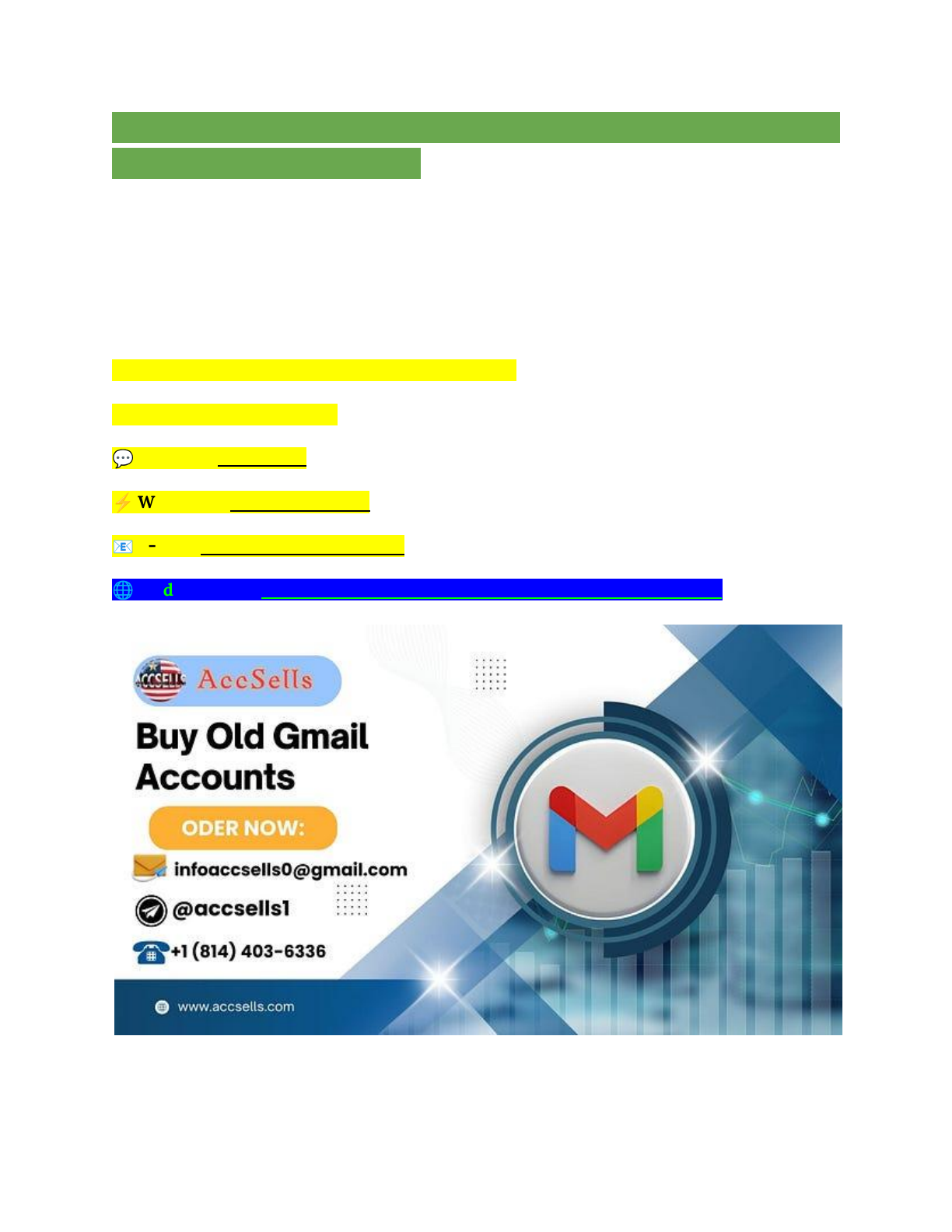 Best Quality Old Gmail Accounts — High Trust Score [Safe Purchase] What Are Old Gmail Accounts? Old Gmail accounts refer to Gmail email addresses that have been actively used for a significant period, generally months or years, rather than newly created ones. These accounts have an established history and reputation in Google’s ecosystem, making them highly valuable to users who seek credibility and trustworthiness. If You want to more information just contact now 24 Hours Reply/ Contact : – 💬 Telegram: @accsells1 ⚡ WhatsApp: +1 (814) 403–6336 📧 E-mail: infoaccsells0@gmail.com 🌐 WedSite Visit : https://accsells.com/product/buy-old-gmail-accounts/ Age matters because Google recognizes longevity as a sign of authenticity and account stability. Older accounts are less likely to be flagged for suspicious behavior and usually have higher https://t.me/accsells1 https://api.whatsapp.com/send?phone=18144036336 mailto:infoaccsells0@gmail.com https://accsells.com/product/buy-old-gmail-accounts/ trust scores. This is particularly important for activities that require consistent communication or interaction with Google services. Why Should You Buy Old Gmail Accounts? Buying old Gmail accounts offers several key benefits: ● Established Credibility: Google and other platforms consider aged accounts more trustworthy, reducing the risk of sudden suspension or blocking. ● ● Better Email Deliverability: Emails sent from older Gmail accounts are less likely to end up in spam folders, increasing engagement rates in email marketing campaigns. ● ● Higher Sending Limits: Older accounts typically enjoy higher daily sending limits, useful for businesses and marketers handling bulk emailing. ● ● Access to More Google Services: These accounts often have unlocked features in Google Drive, YouTube, and Ads, facilitating smoother multi-platform management. ● ● Reduced Risk of Suspensions: Since they have passed Google’s verification and usage checks over time, aged accounts face fewer restrictions. ● Common Uses for Old Gmail Accounts Old Gmail accounts are heavily utilized by: ● Digital marketers for managing multiple campaigns and Google Ads accounts. ● ● Social media managers to create and handle various profiles. ● ● Small business owners to maintain Google My Business profiles. ● ● App developers and testers requiring multiple verified accounts. ● ● Freelancers juggling several client projects or outreach efforts. ● Where to Buy Old Gmail Accounts Safely Buying these accounts requires caution to avoid scams or fake accounts. Trusted platforms typically provide: ● Verified aged Gmail accounts with clear histories. ● ● Phone and email verifications for greater security. ● ● Reliable customer support and secure payment options. ● ● Instant or prompt account delivery. ● Some well-known places include UseViral, SidesMedia, and specialized aged account sellers with strong reputations. How to Verify the Authenticity of Old Gmail Accounts To ensure you purchase genuine aged Gmail accounts: 1. Check the account creation date, ideally more than a year old. 2. 3. Review any available activity or usage history. 4. 5. Confirm phone and email verification status. 6. 7. Ask for seller proofs like screenshots or verification reports. 8. 9. Avoid accounts that seem inactive, newly modified, or flagged. 10. SEO Benefits of Using Old Gmail Accounts From an SEO perspective, old Gmail accounts contribute significantly toward improving online presence: ● Trusted accounts can create and manage Google My Business profiles with less risk. ● ● They offer credibility when building backlinks or managing outreach campaigns. ● ● Older accounts have a higher likelihood of passing spam filters for mass emailing, increasing campaign effectiveness. ● ● They make it easier to maintain multiple accounts without raising red flags in Google’s algorithms. ● Step-by-Step Guide to Buying Old Gmail Accounts 1. Research Reliable Sellers: Identify marketplaces or providers with positive reviews. 2. 3. Verify Account Details: Confirm account age, verification methods, and history. 4. 5. Secure Payment: Use safe payment modes that offer buyer protection. 6. 7. Post-Purchase Setup: Immediately update recovery info and enable two-factor authentication. 8. 9. Use Responsibly: Avoid spamming or suspicious activity to maintain account health. 10. Risks and How to Avoid Scams ● Beware of extremely cheap accounts — they are often fake or compromised. ● ● Do not buy from sellers without reviews or vague descriptions. ● ● Always verify seller credentials and request authenticity proof. ● ● Secure purchased accounts promptly against unauthorized access. ● Frequently Asked Questions Q: Is buying old Gmail accounts legal? A: Generally yes, but ensure compliance with Google’s policies and local laws. Q: How do I keep my old Gmail account secure? A: Update passwords, use two-factor authentication, and monitor account activity regularly. Q: Can old Gmail accounts improve email marketing? A: Absolutely, they experience better deliverability and higher engagement rates. Q: What should I look for in a reliable seller? A: Verified accounts, good reviews, secure payment options, and responsive support. Q: What happens if my purchased account is suspended? A: Contact the seller for support and Google’s help center to appeal the suspension. Buying old Gmail accounts can be a strategic choice for businesses and marketers seeking trustworthy, reliable, and efficient tools to manage their online footprint with less risk and more credibility. Always prioritize authenticity, security, and reputable sellers to make this investment worthwhile. What Are Old Gmail Accounts? Why Should You Buy Old Gmail Accounts? Common Uses for Old Gmail Accounts Where to Buy Old Gmail Accounts Safely How to Verify the Authenticity of Old Gmail Accounts SEO Benefits of Using Old Gmail Acco