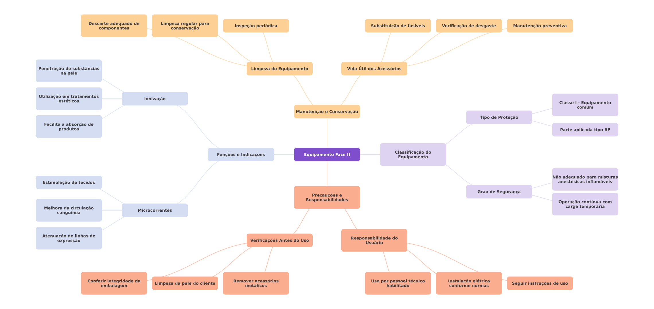 Descarte adequado de Limpeza regular para Inspeção periódica Substituição de fusíveis conservação Verificação de desgaste componentes Manutenção preventiva Penetração de substâncias Limpeza do Equipamento Vida Útil dos Acessórios na pele Utilização em tratamentos estéticos Classe Equipamento comum Manutenção e Conservação Tipo de Proteção Facilita a absorção de produtos Parte aplicada tipo BF Classificação do Funções e Indicações Equipamento Face Equipamento Não adequado para misturas Estimulação de tecidos anestésicas inflamáveis Grau de Segurança Precauções e Responsabilidades Operação contínua com Melhora da circulação carga temporária Microcorrentes sanguínea Atenuação de linhas de expressão Verificações Antes do Uso Responsabilidade do Usuário Conferir integridade da Remover acessórios Limpeza da pele do cliente Uso por pessoal técnico Instalação elétrica embalagem metálicos habilitado conforme normas Seguir instruções de uso